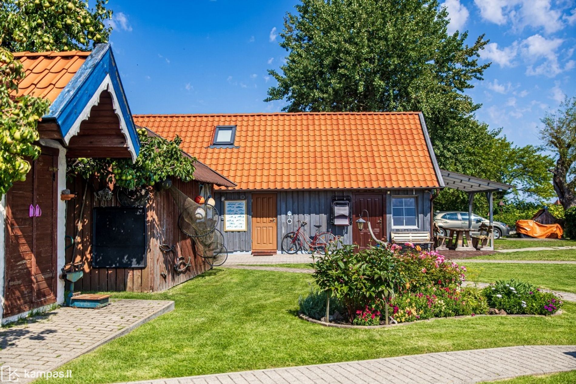 Pastatai stovi erdviame 17,07 arų su bendraturčiais priklausančiame žemės sklype. Nepriekaištingai sutvarkyta teritorija, prie namų jaukios terasėlės, išpuoselėtos vejos bei gėlynai. Neringos autentiką atspindintys pastatai mena krašto istoriją. Originalūs puošybos elementai, Kuršių nerijai būdingos spalvos namams suteikia išskirtinio žavesio. Puikus priėjimas prie Kuršių marių. Tai išskirtinė vieta, kur įspūdingi gamtos vaizdai taps Jūsų kasdienybės dalimi – tiesiai iš savo kiemo galėsite stebėti besileidžiančią saulę bei grožėtis Kuršių marių ramybe. Gyvendami čia, turėsite galimybę užsiimti įvairiomis lauko veiklomis – nuo meditacijos ar ramių pasivaikščiojimų marių pakrante iki aktyvių vandens pramogų ar dviračių žygių po Kuršių Neriją.
