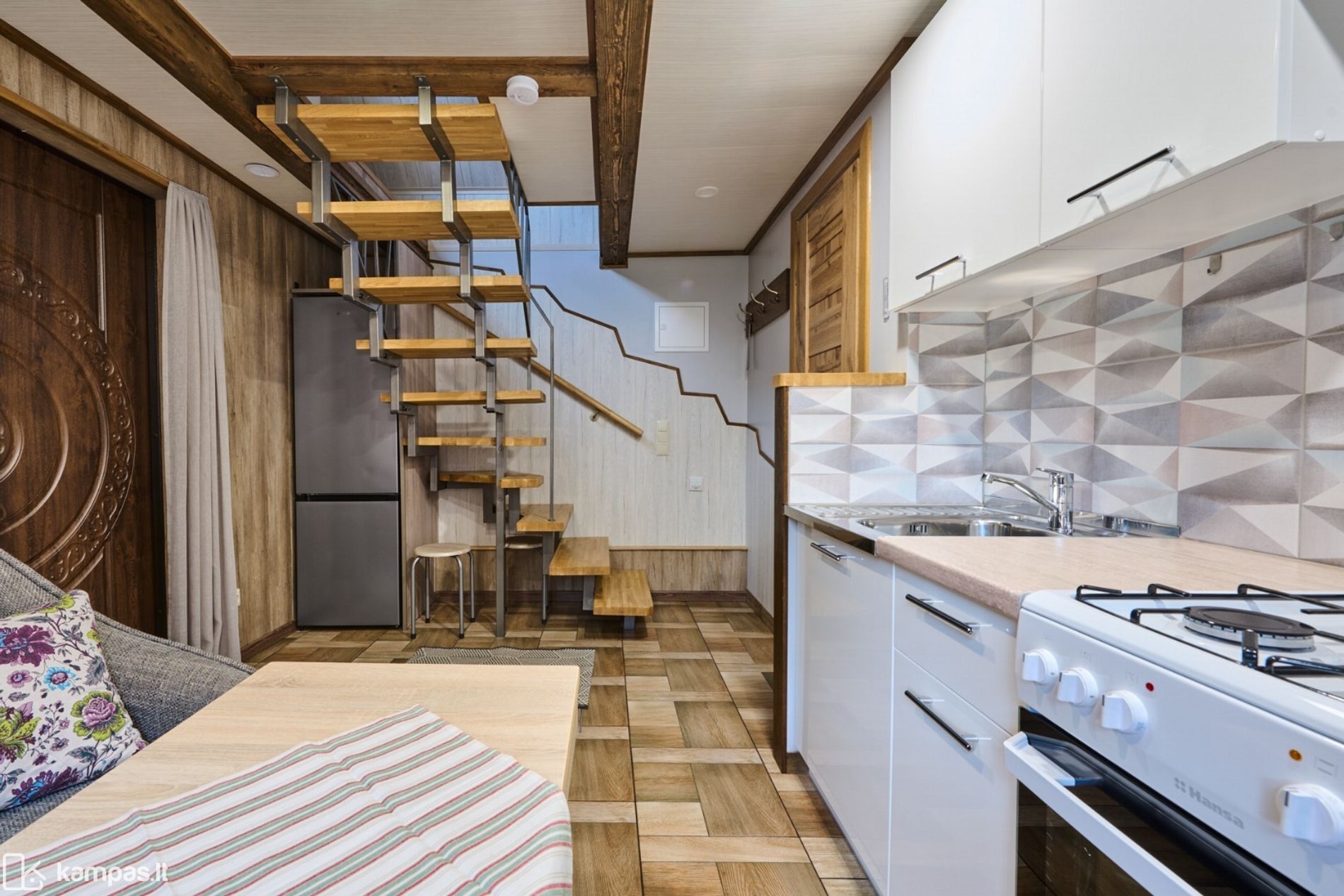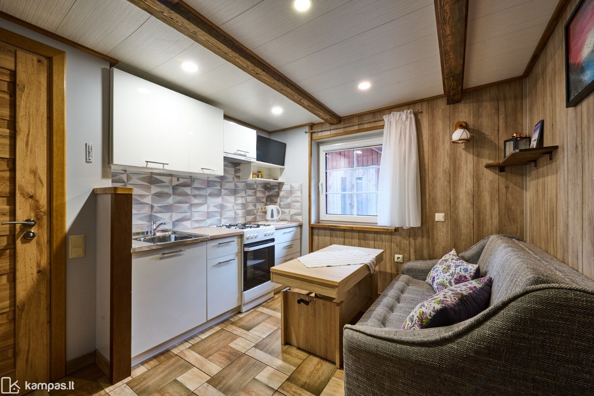 Parduodami ketveri pilnai gyvenimui pritaikyti apartamentai: vieni pirmame, kiti antrame aukšte bei turintys atskirus įėjimus pagrindiniame gyvenamajame pastate (pirmame aukšte esančių apartamentų plotas: 25,61 kv./m., antrame aukšte – 60,23 kv./m.) ir dveji apartamentai pirmame ir antrame aukštuose ūkiniame pastate (bendras plotas 37 kv./m.). Visi būstai šviesūs ir jaukūs, gyvenamajame name langai orientuoti į pietus ir rytus, ūkiniame pastate - į šiaurę ir vakarus. Šiuolaikiškai įrengti apartamentai parduodami su buitine technika ir baldais, tad iškart galima įsikelti gyventi ar pradėti nuomą.