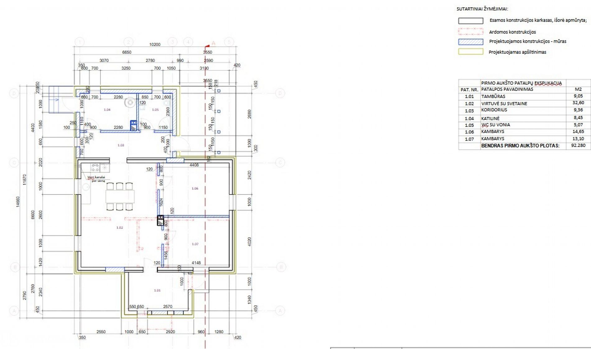 Bendras planuojamas plotas po rekonstrukcijos – 92,28 m²