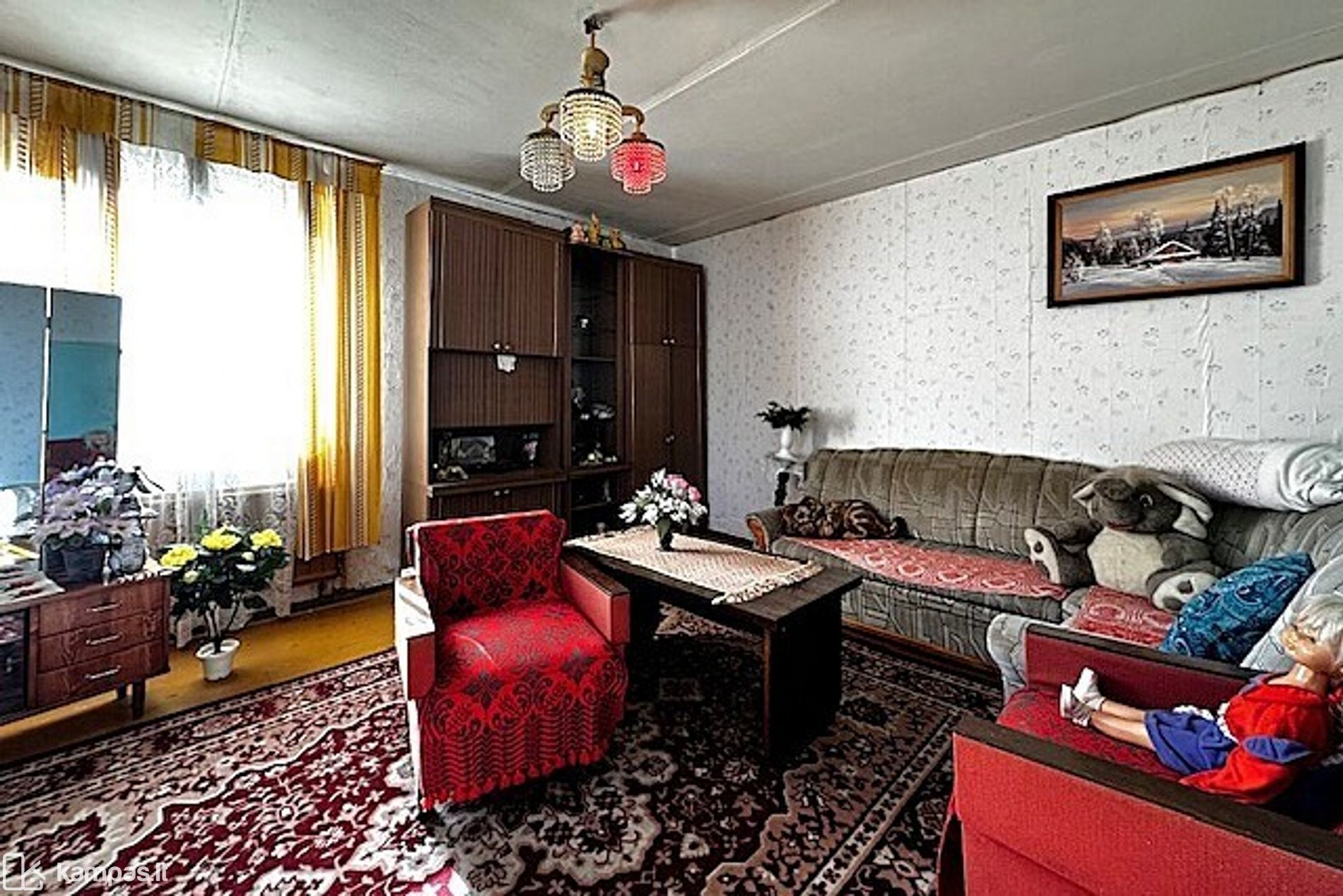 – Sienos: kambariuose - dažytos, tapetai, vonioje - plytelės;