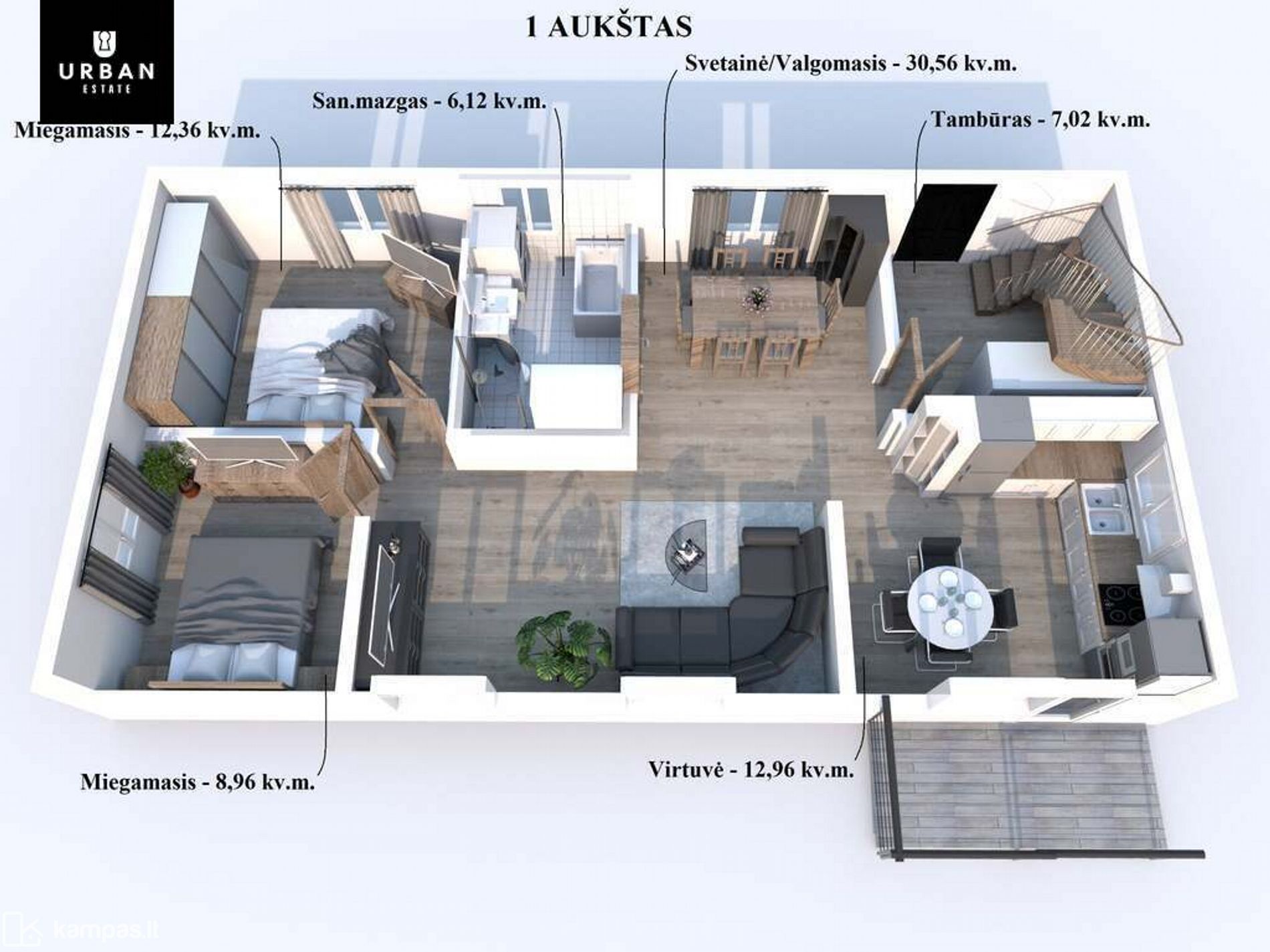 - Itin ekonomiškas miesto centrinis šildymas (žiemą ±90 Eur/mėn).