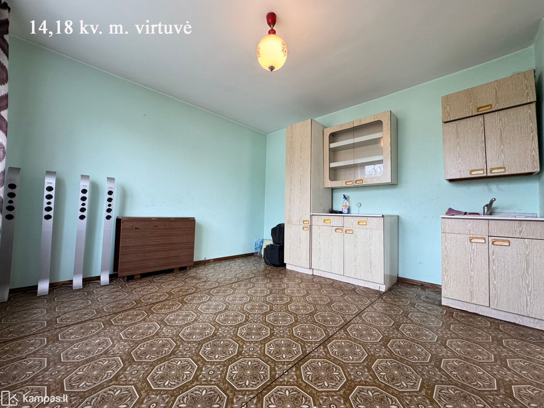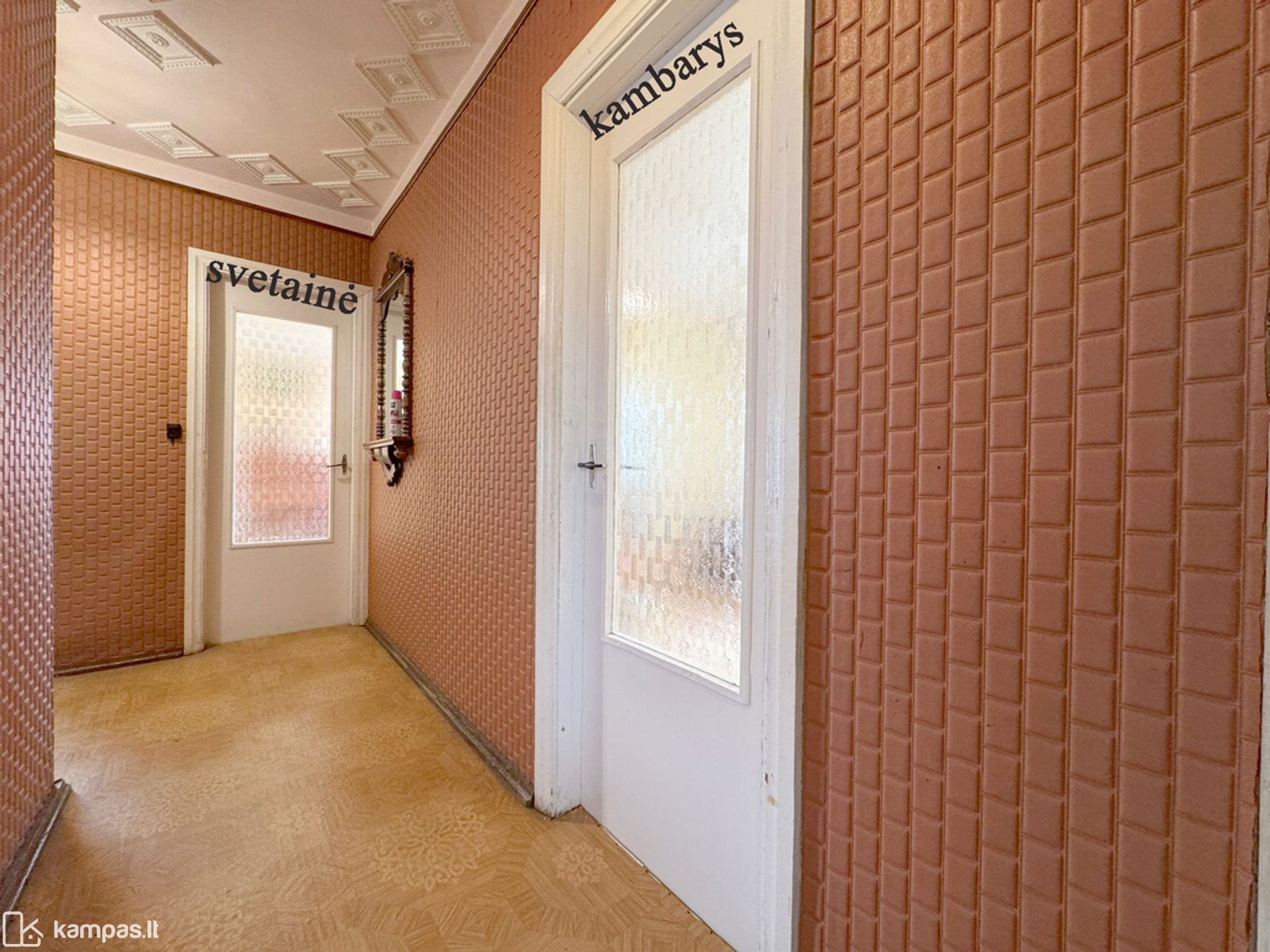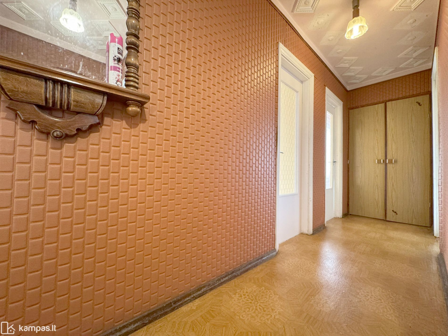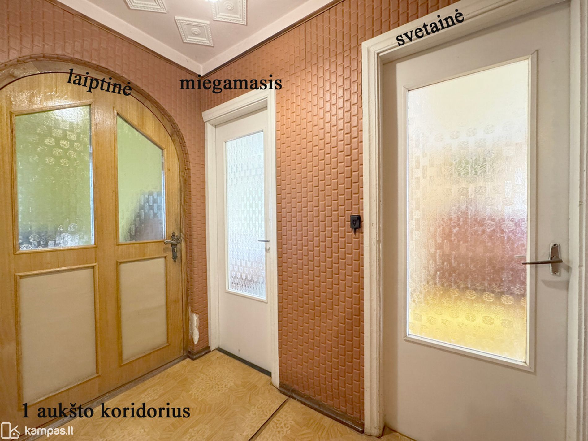 - Grindys – virtuvėje išklotas linoleumas, kambariuose natūralaus medžio parketas;
