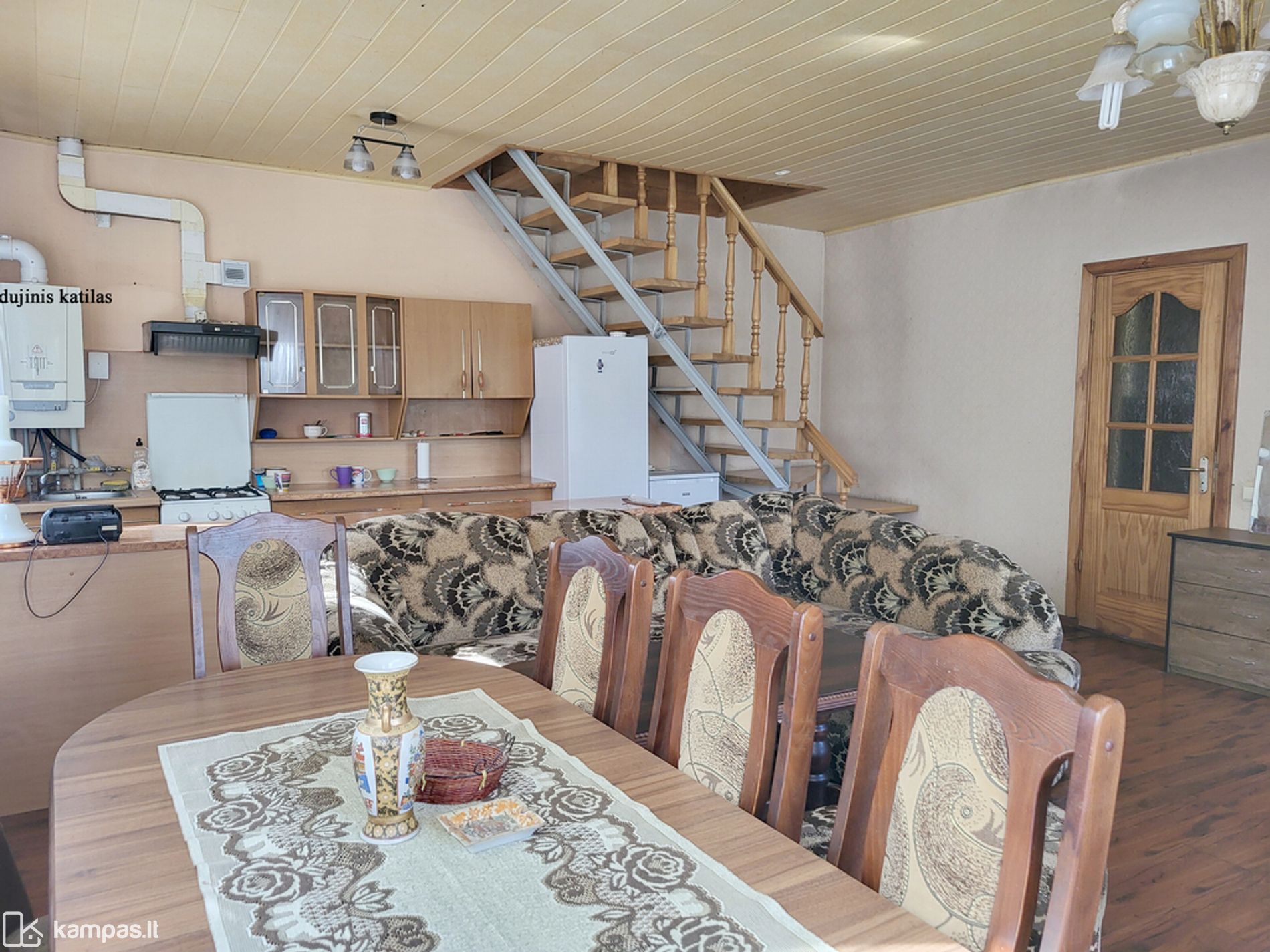 - Namas šildomas dujomis ir kieto kuro katilu;