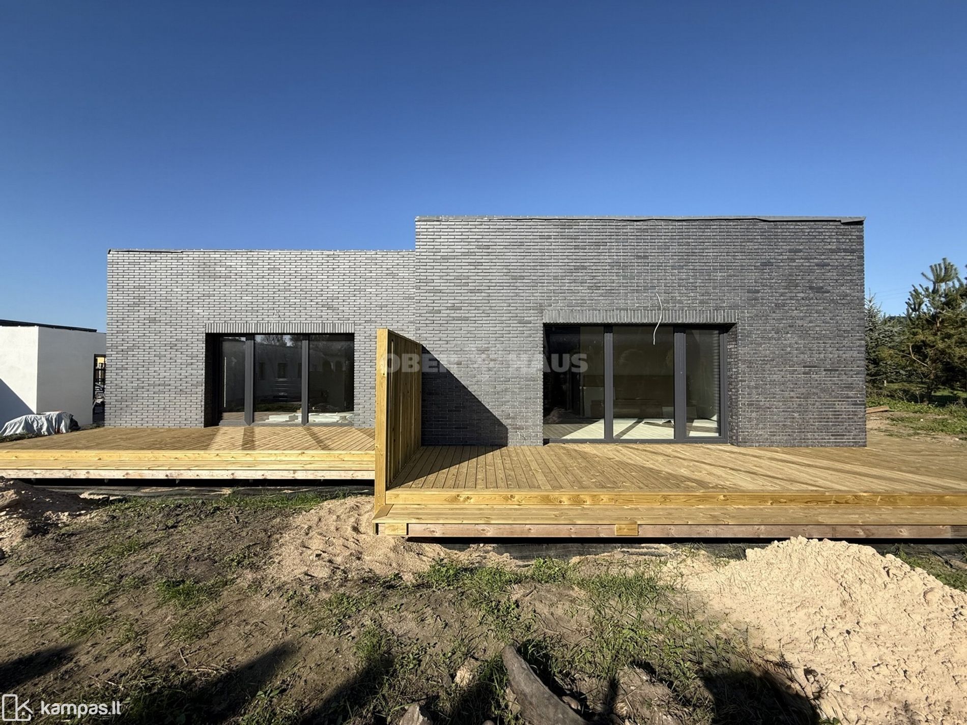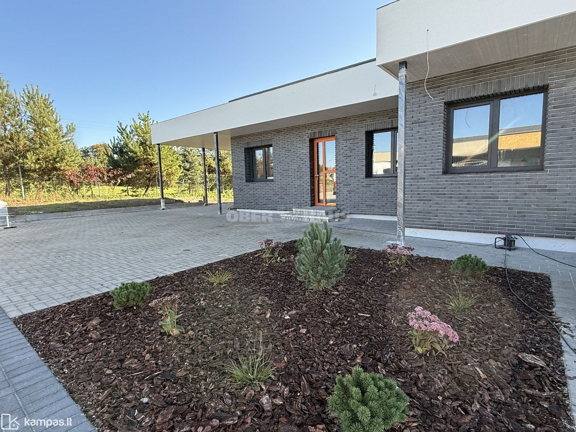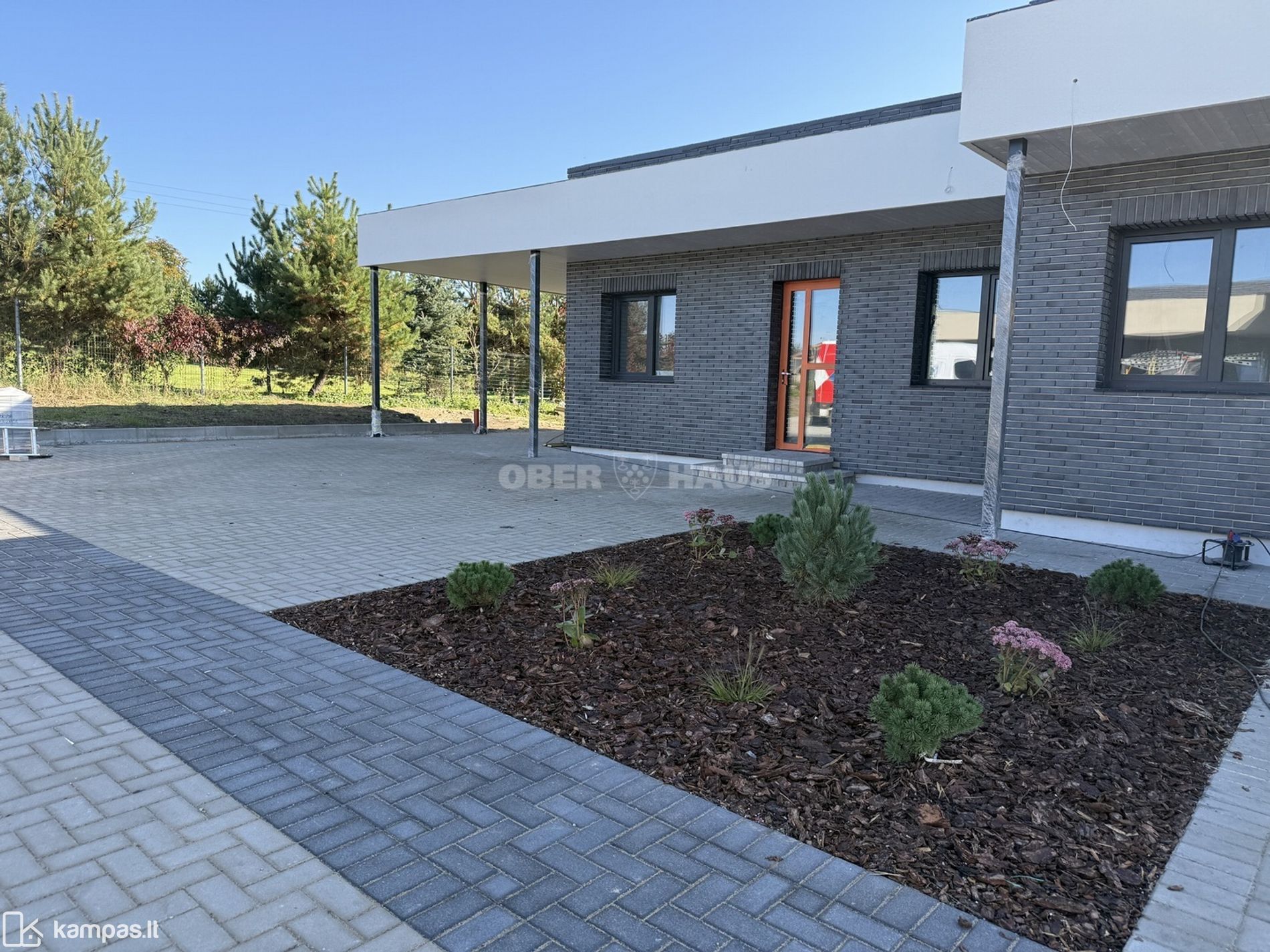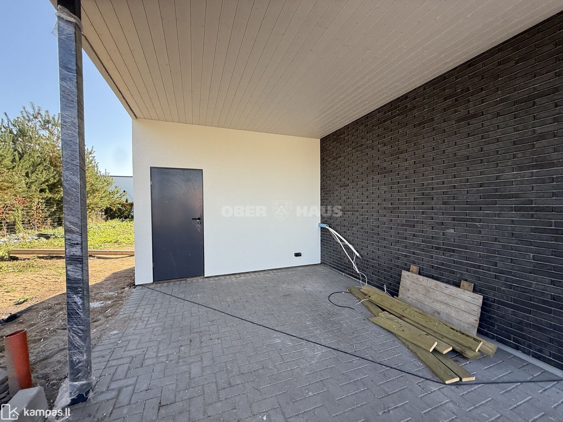 • Lauko apdaila - išklotos betoninės trinkelės, 24 m² impregnuotų medžio lentų lauko terasa, sandėliukas, sklypas išlygintas ir pasėta veja;