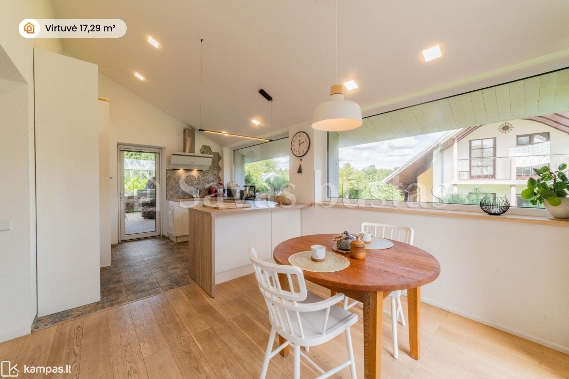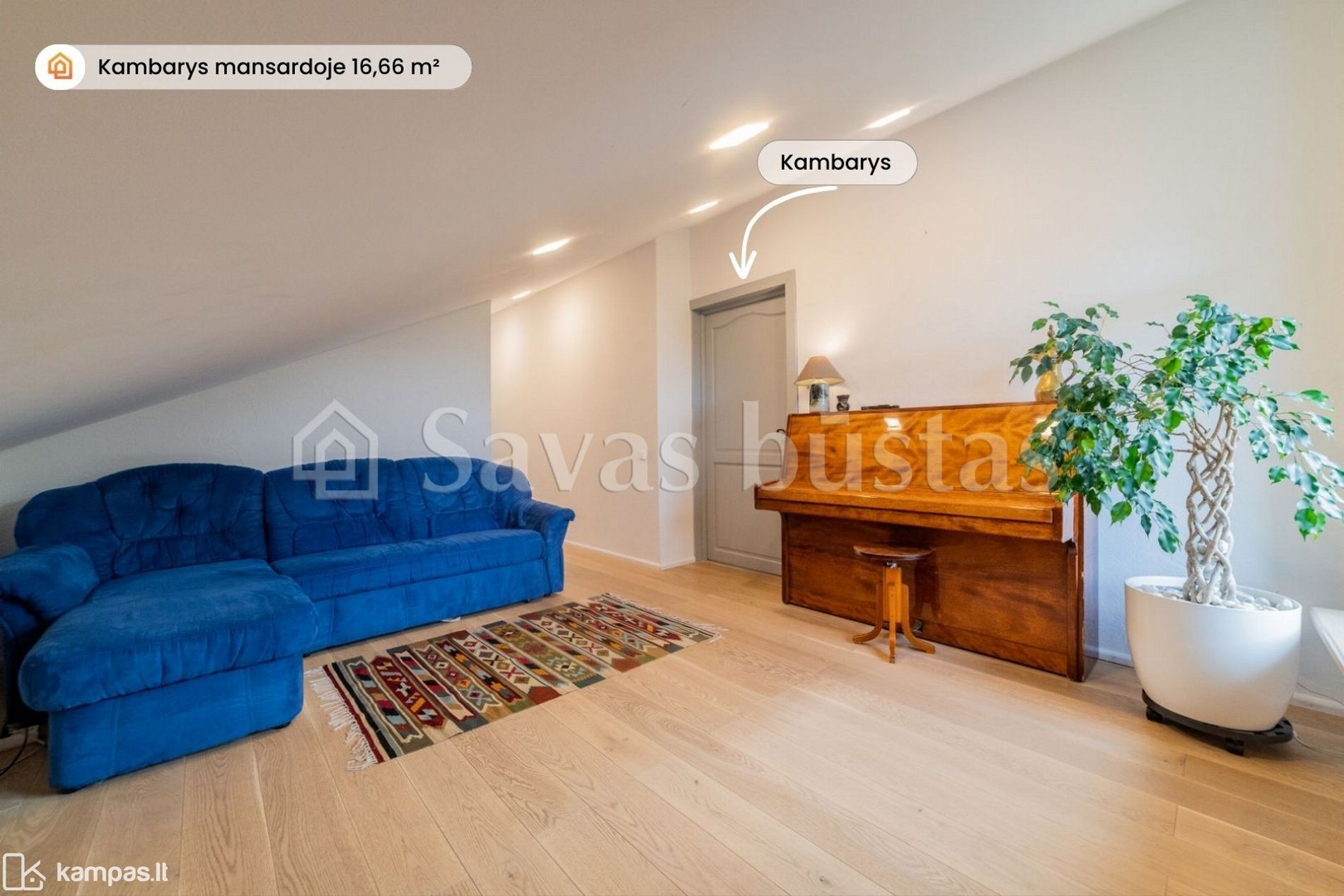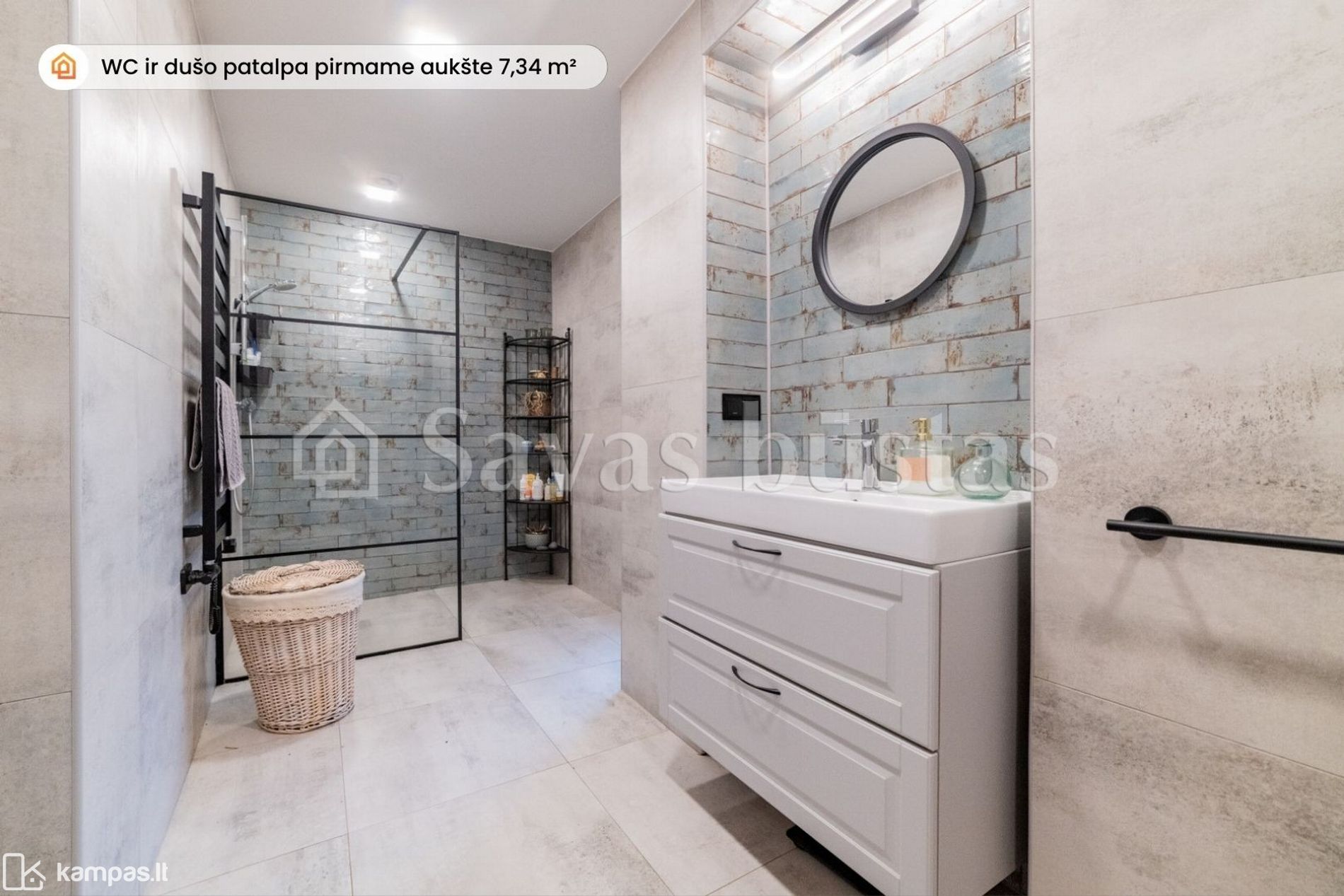 Namo bendras plotas – 183,21 m². Žemės sklypas – 7,08 aro. Namas šildomas oras–vanduo sistema, yra židinys, įrengta pirtis, o kiekviename aukšte – vonios kambariai.