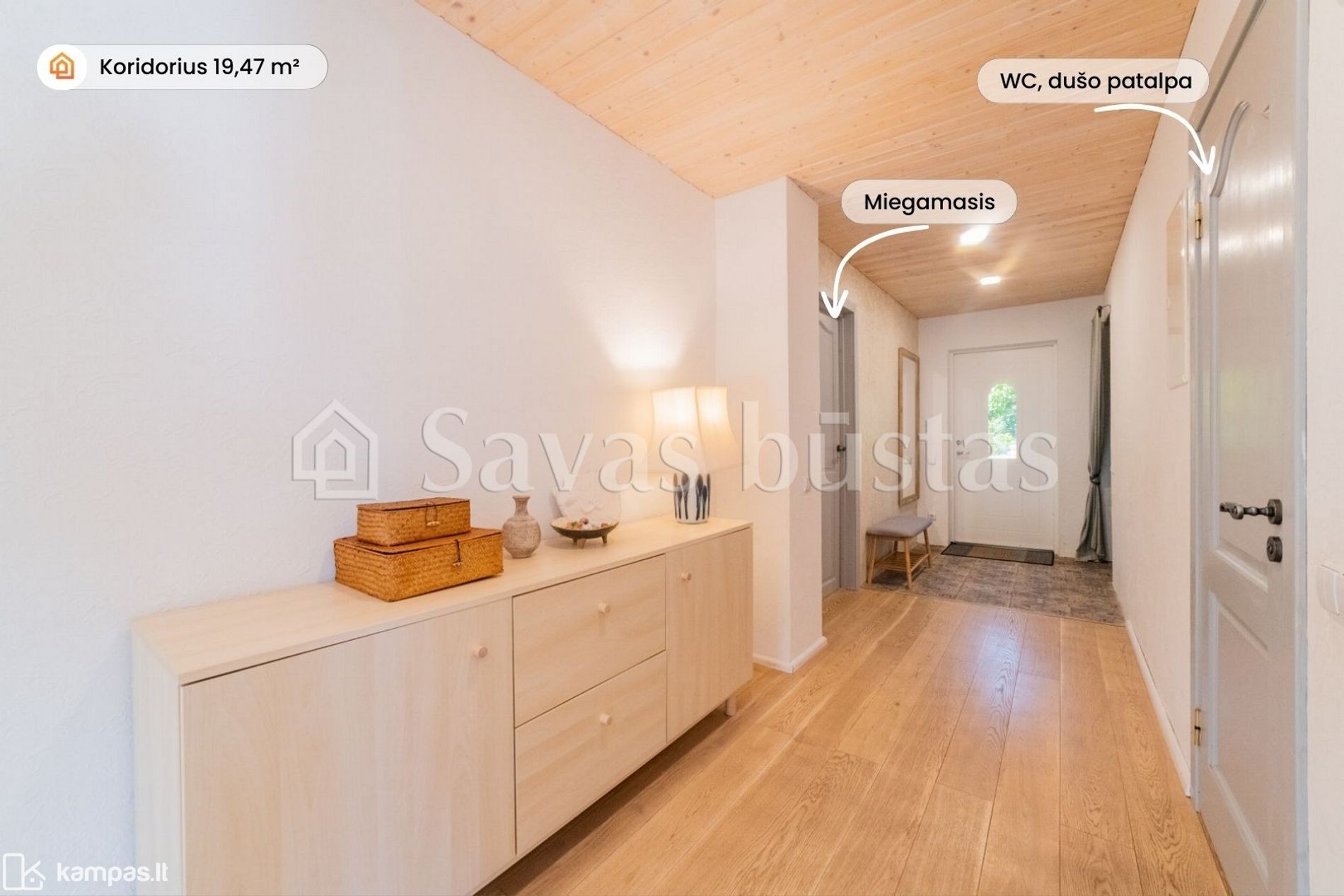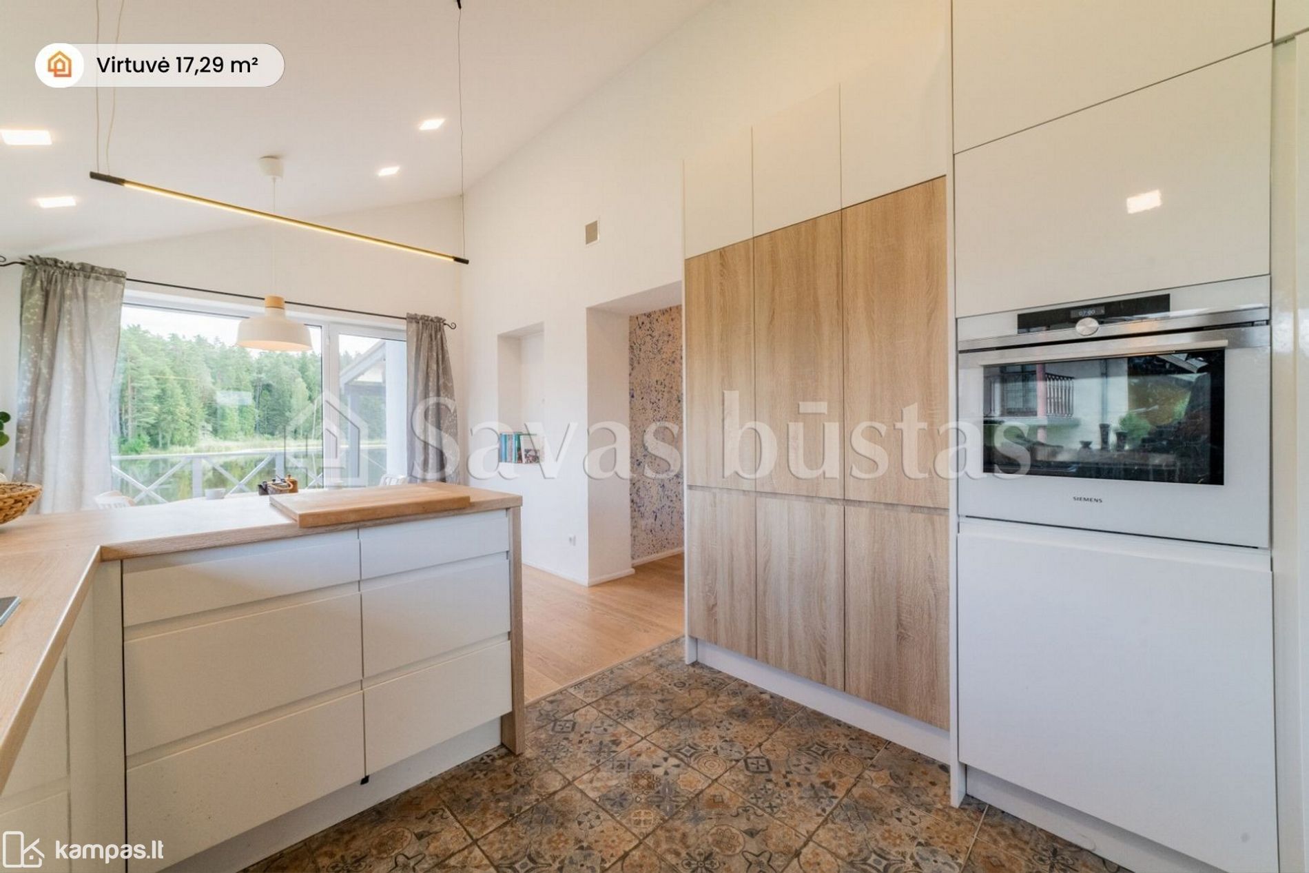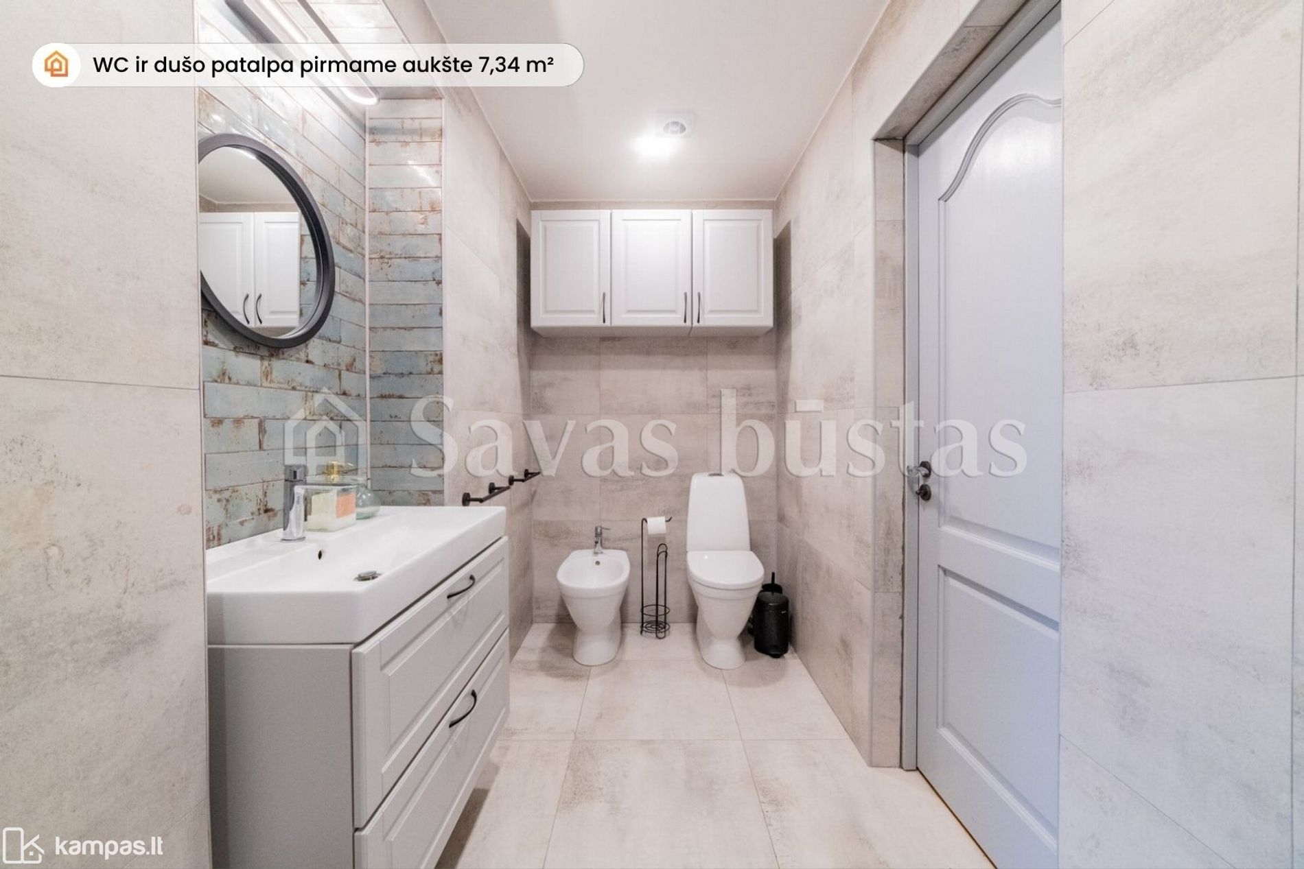 Namo bendras plotas – 183,21 m². Žemės sklypas – 7,08 aro. Namas šildomas oras–vanduo sistema, yra židinys, įrengta pirtis, o kiekviename aukšte – vonios kambariai.