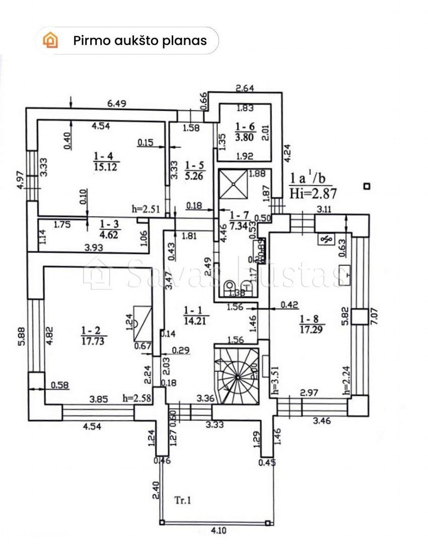* Aukštai – pusrūsis, pirmas aukštas ir mansarda