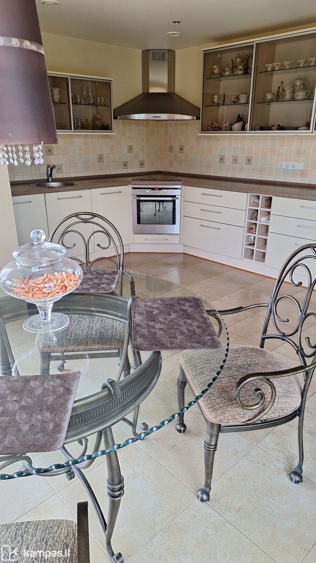 Lubos gipso kartono su lubose įmontuotais halogenais, vietomis yra liustros, viršuje tik miegamajame nėra liustros, tik halogenai ir papildomai plius stalinės lempos ant spintelių.