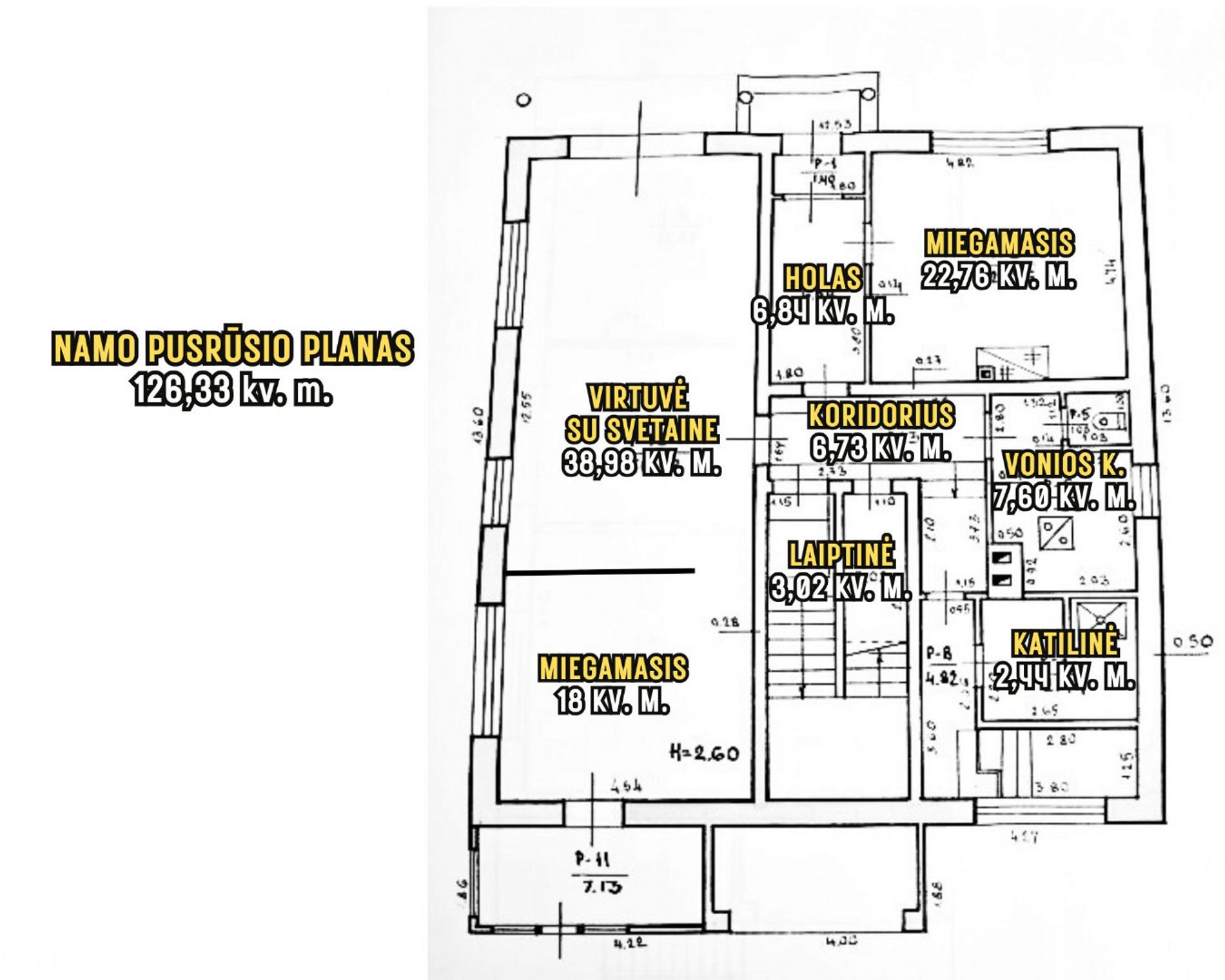 • Pusrūsio plotas – 126.33 kv.m;.