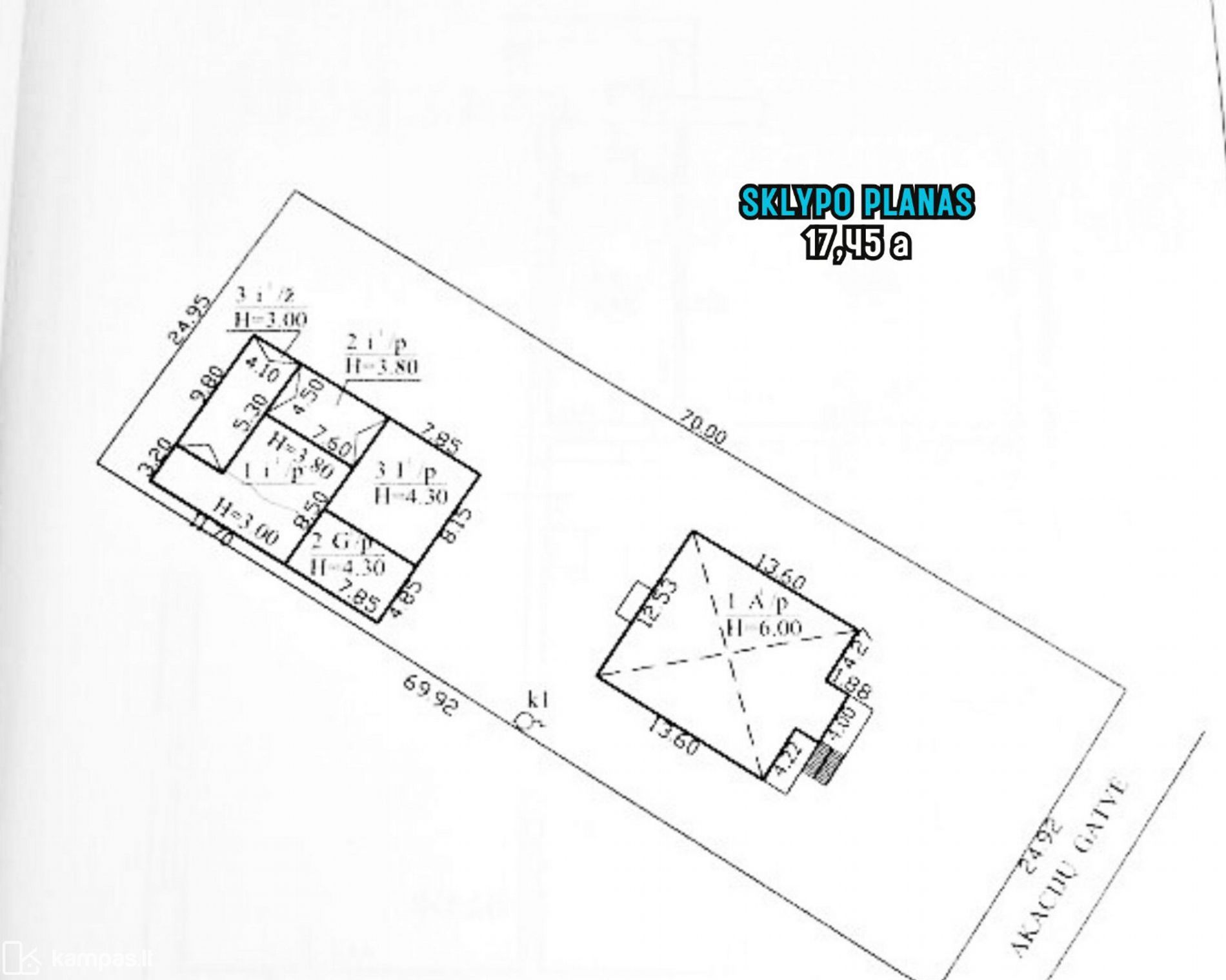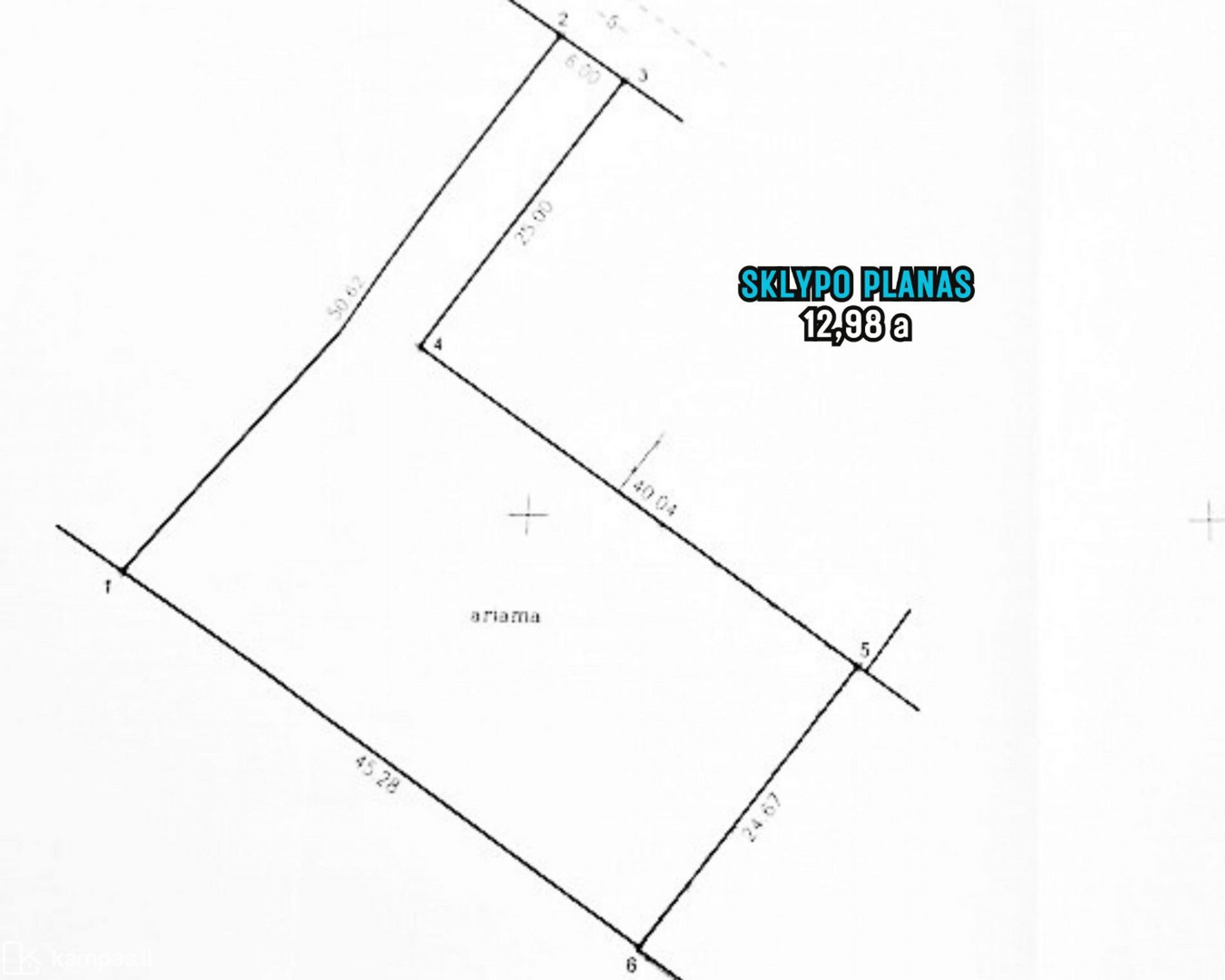 • Teritoriją sudaro 4 sklypai: 3 namų valdos sklypai – 17,45, 12,98 ir 10,20 a, bei 22,82 a žemės ūkio paskirties.