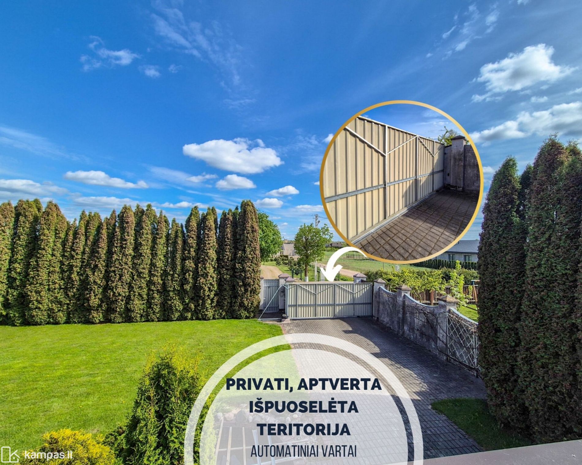 ➜ Erdvus sklypas apsuptas brandžių tujų, kas sukuria PRIVATUMO JAUSMĄ.