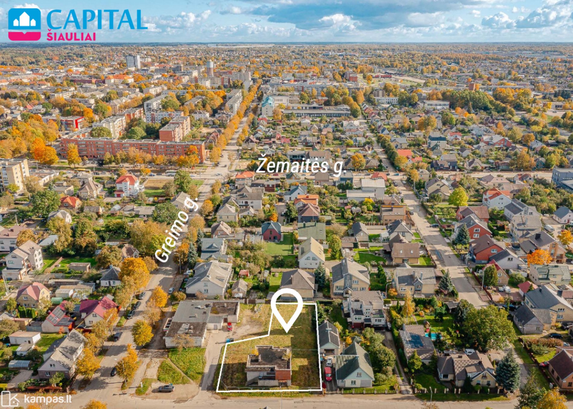 Parduodamas mūrinis namas su 13 arų sklypu Šiaulių centre, Greimo gatvėje. Sklype leidžiamas užstatymo plotas iki 80 %, aukštingumas iki 4 aukštų.
