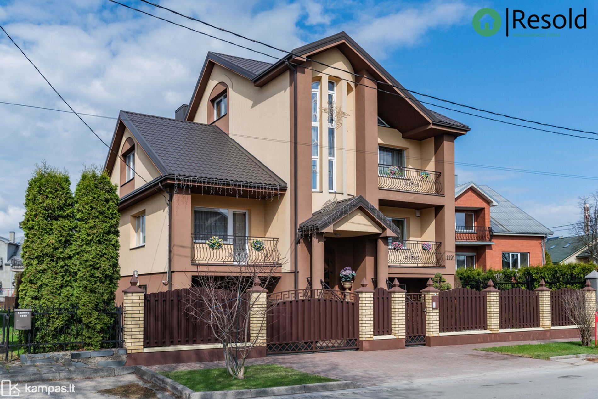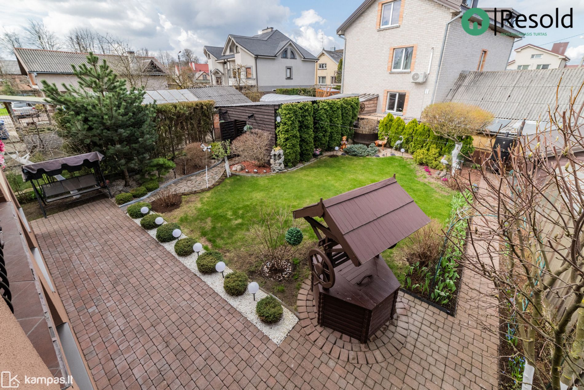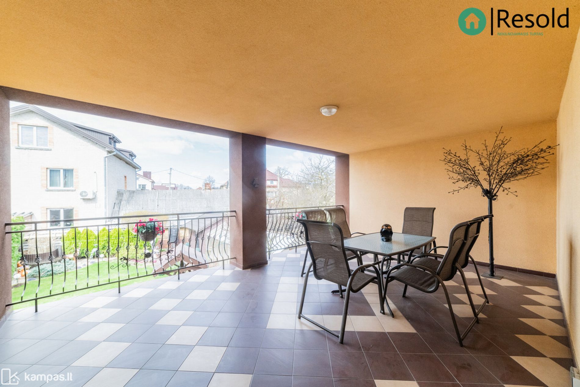 • Pirmame aukšte – laiptinė, holas su židiniu, vonios kambariu, san. mazgu, miegamasis kambarys, svečių kambarys, darbo kambarys, iš holo įėjimas į erdvų balkoną su vaizdu į vidinį kiemą, kokybiškai įrengta virtuvė.