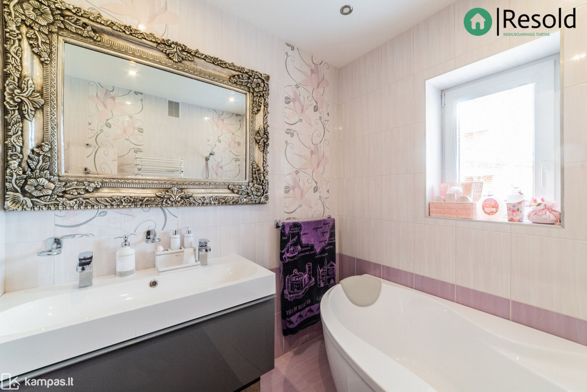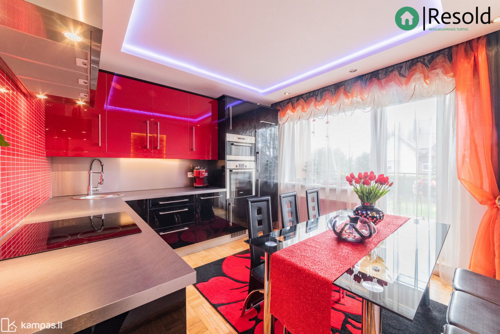Vonios ir san., mazgo patalpoje grindys ir sienos klijuotos akmens masės plytelėmis. Virtuvėje grindys natūralaus medžio parketas, sienos – dažytos ir akmens masės plytelės, lubos pažemintos gipsu – dažytos, sumontuotas LED apšvietimas keičiantis spalvas, garso kolonėlės. Kokybiška buitinė technika integruotame virtuvės komplekte. Visame aukšte radiatorinis šildymas.