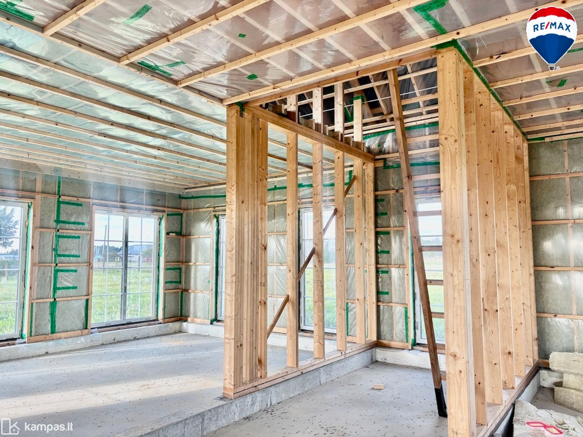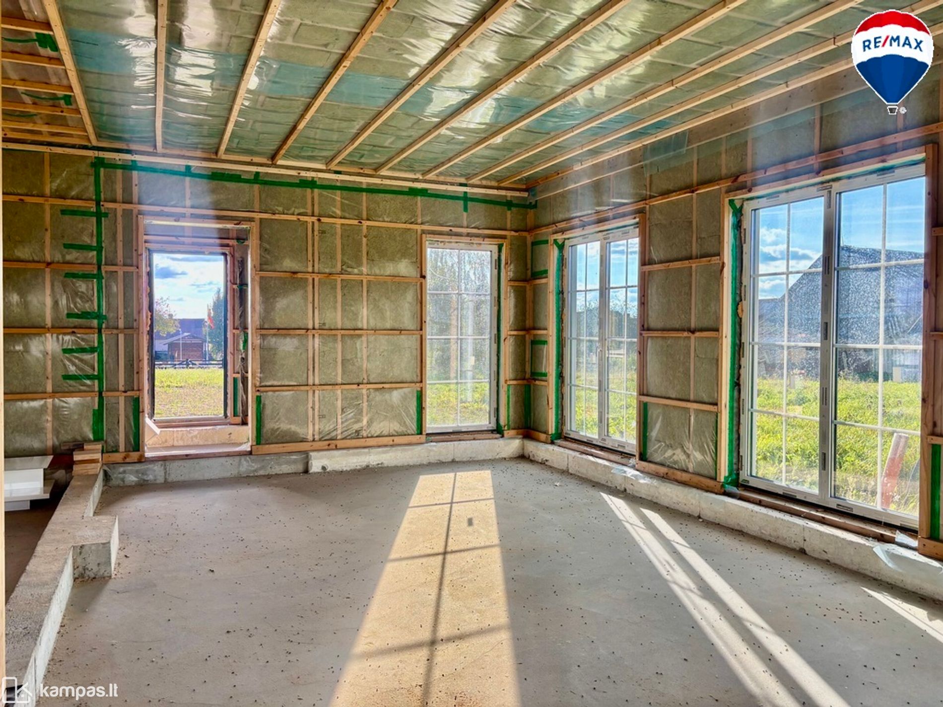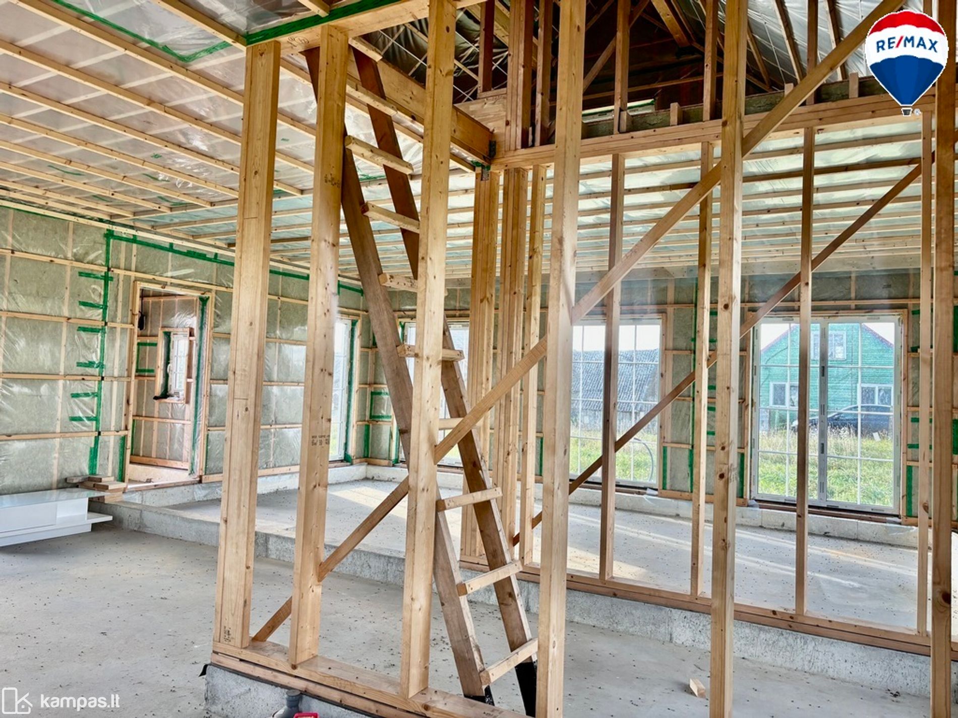 Parduodamas neįrengtas karkasinis namas, pastatytas 2022 m., ramioje vietoje, su erdviu sklypu. Statinys turi plastikinio profilio langus, betoninių čerpių stogą, įvesta elektra (4 kW) ir atvestas vandentiekis. Vidaus įrengimas nebaigtas – galima savarankiškai suplanuoti erdves ir inžinerinius sprendimus pagal savo poreikius.
