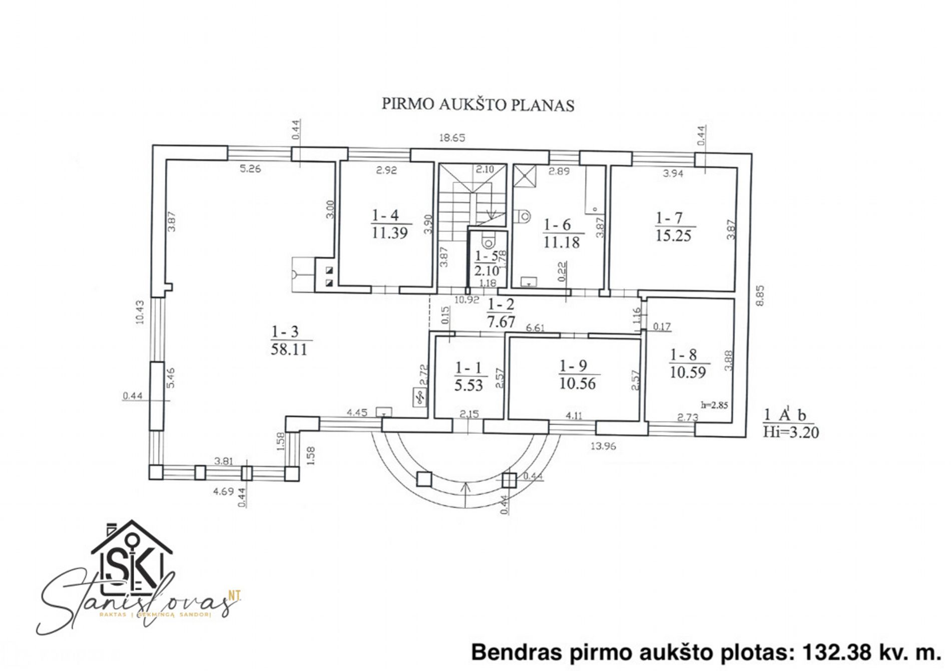 Bendras pirmo aukšto plotas: 132.38 kv. m.