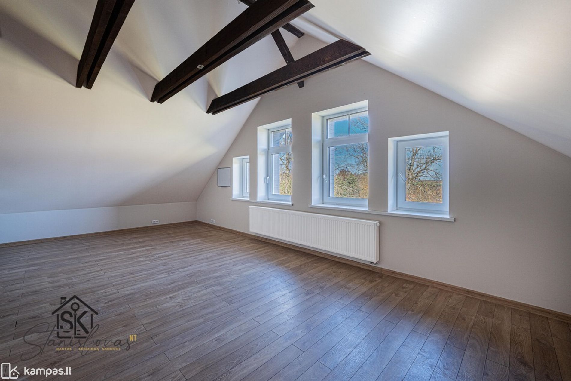 Ieškote erdvės, jaukumo ir privatumo? Šis 213.61 kv. m namas su 38.07 arų žemės sklypu Šilutės r. sav., Juknaičių sen., Rumšų k., Tilto g. 1 – puikus pasirinkimas tiems, kurie vertina patogumą ir gyvenimą gamtos apsuptyje. Namas buvo rekonstruotas 2015–2017 m., apšiltintas ir priskirtas B energinio naudingumo klasei – todėl čia šilta ir jauku gyventi. Pirmame aukšte įrengtas grindinis šildymas, o svetainėje esantis židinys sukuria ypatingą atmosferą – vietą, kur šeima susirenka praleisti vakarus kartu. Erdvi terasa tampa tikra poilsio zona po atviru dangumi – čia galima mėgautis rytine kava, saulėlydžiais ar šeimos vakarienėmis. Kiemas aptvertas ir prižiūrėtas, įrengti automatiniai vartai, o teritorijoje stovi mūrinis ūkinis pastatas, kuriame buvo planuota įrengti pirtį su poilsio zona – puiki idėja tiems, kas mėgsta komfortą ir ramybę. Vos už kelių šimtų metrų teka Šyšos upė, kviečianti pasivaikščioti ar tiesiog pabūti gamtoje. Aplinka rami, kaimynai draugiški, o iki Šilutės miesto – tik apie 14 minučių kelio automobiliu. Tai namai tiems, kurie nori pabėgti nuo miesto šurmulio, bet išlikti arti visų patogumų.