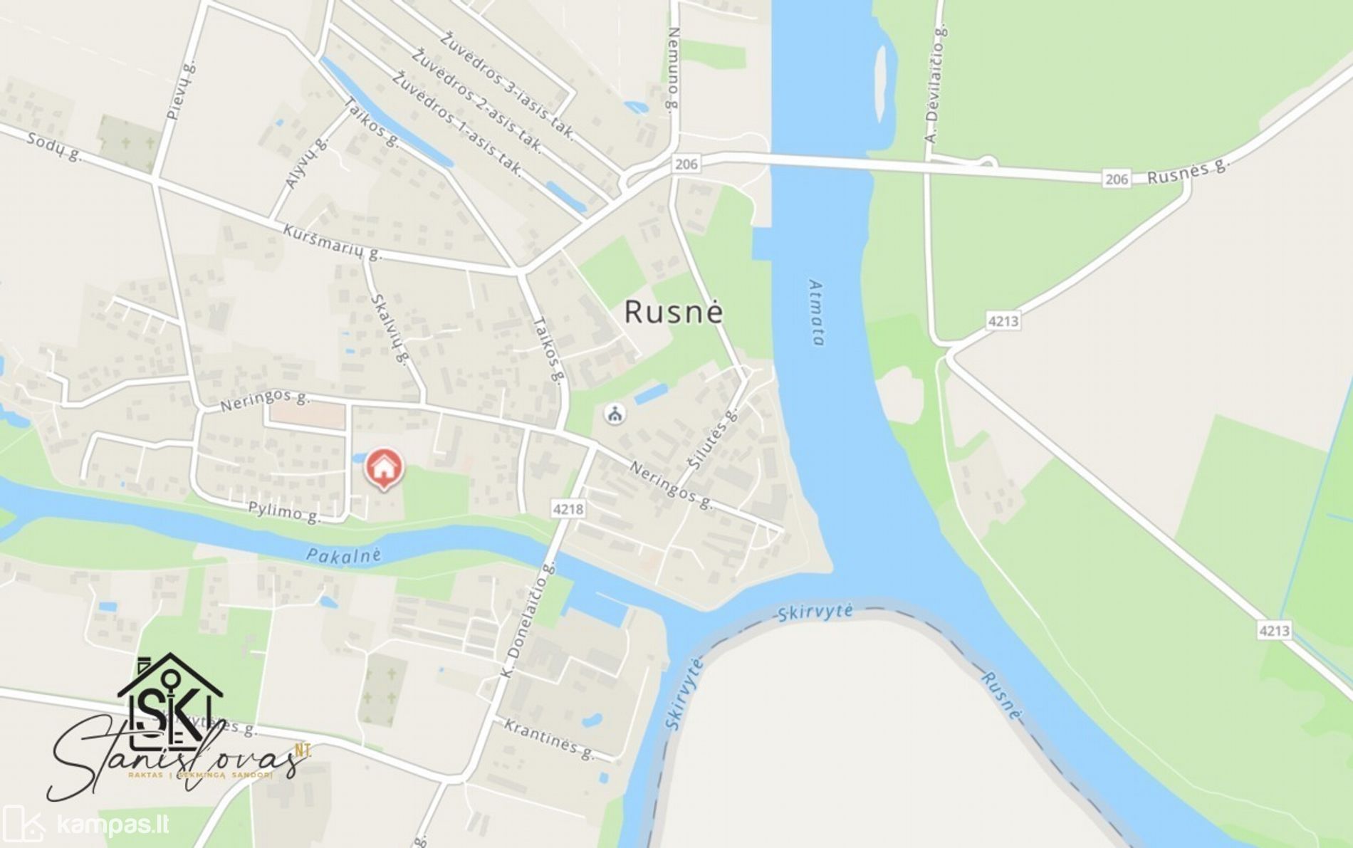 Rusnės miestelyje, gražioje vietoje, šalia upės Pakalnė parduodama namo dalis su 28.18 arų žemės sklypo dalimi. Rusnės sala, kurią iš visų pusių supa vanduo, yra turistų pamėgtas ir lankytinas objektas. Netoliese teka Nemunas (Atmata), Pakalnės ir Skirvytės upės, patogus susisiekimas su Uostadvariu, Kintais, Ventės ragu, todėl ši išskirtinė namo dalis būtų puikus pasirinkimas mėgstantiems ramybę, gamtą ar žvejybą. Rusnės miestelyje yra kelios maisto prekių parduotuvės, mokykla, darželis. Vos už kelių šimtų metrų yra pėsčiųjų takas vedantis Pakalnės upės pakrančių pylimais palei Skirvytėlės kaimą ir Rusnės miestelio pakraščiu.