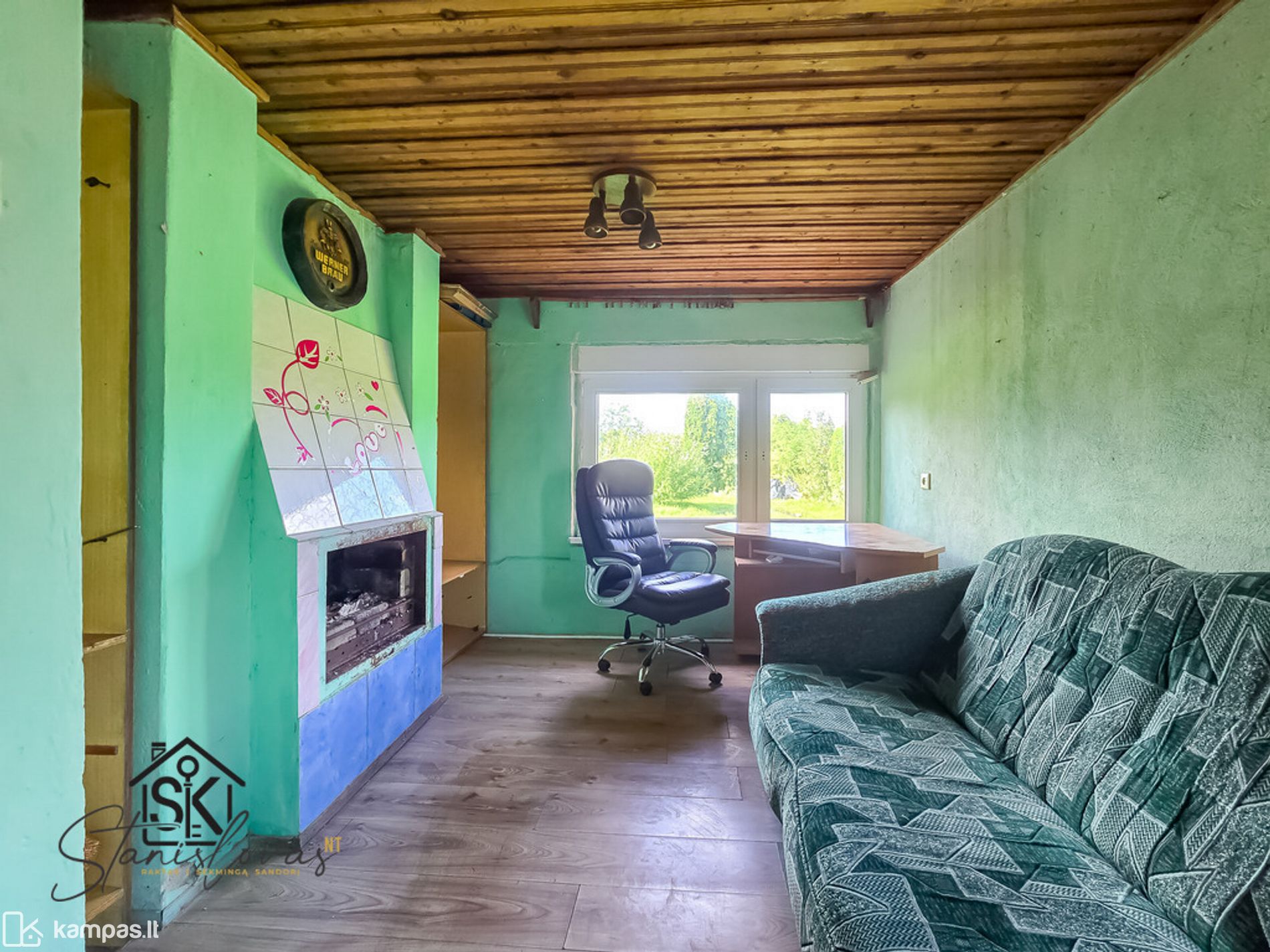 • Lubos: gipskartonio lubos, dalis likusios medinės.