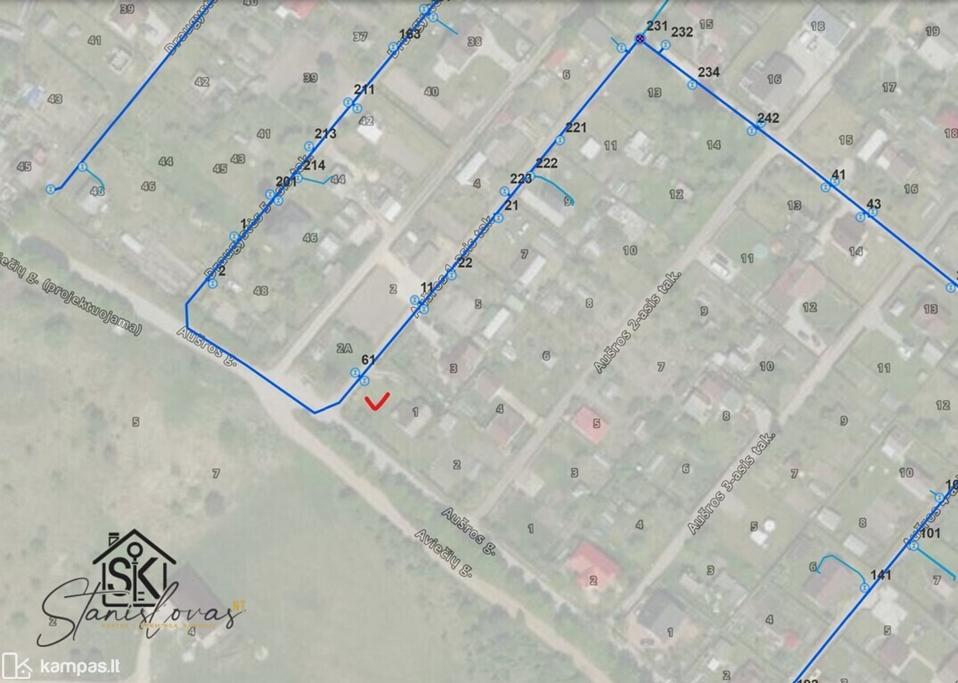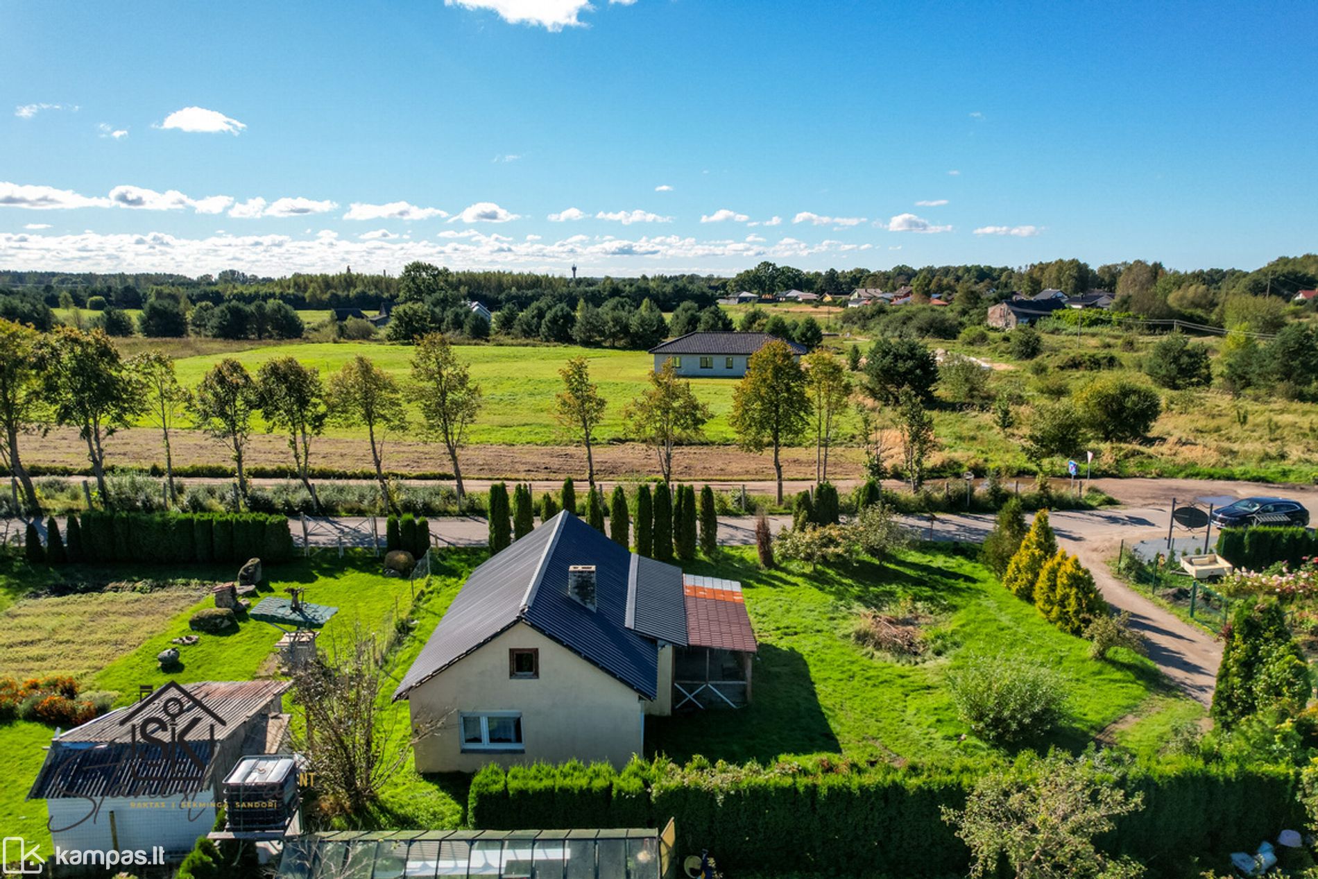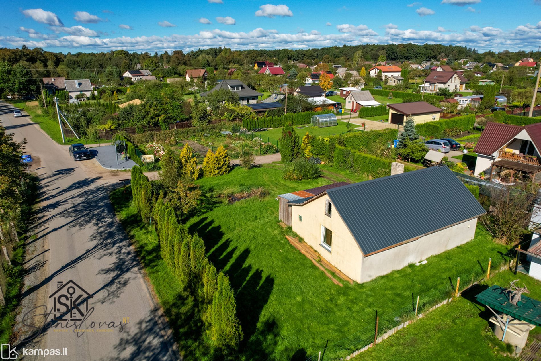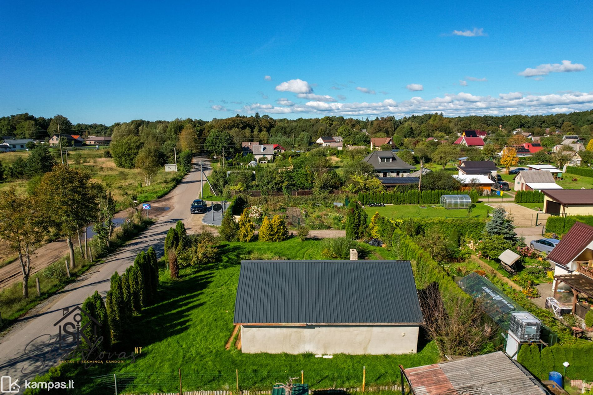 • Naujai asfaltuotas kelias iki sodų bendrijos ir sklypo;