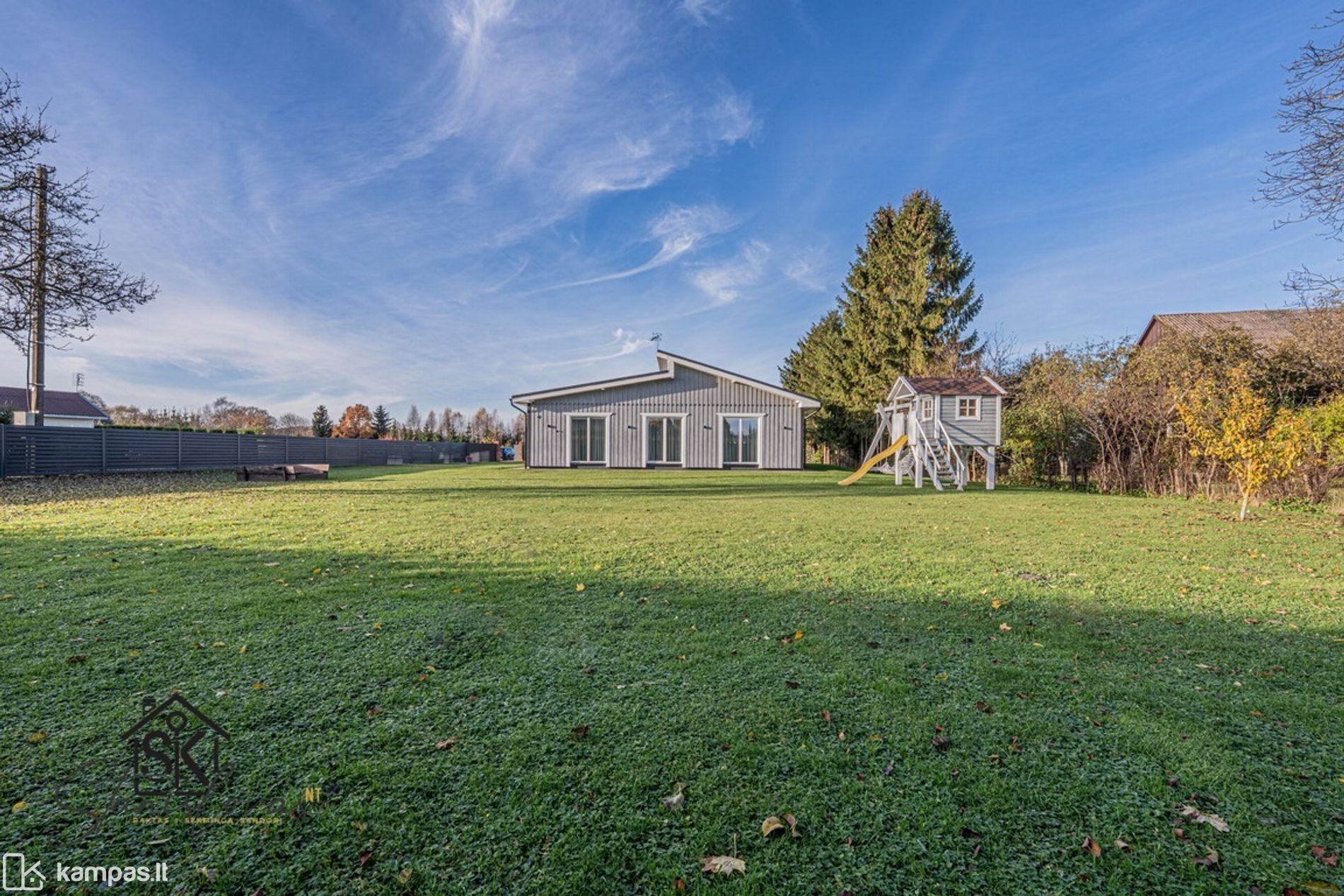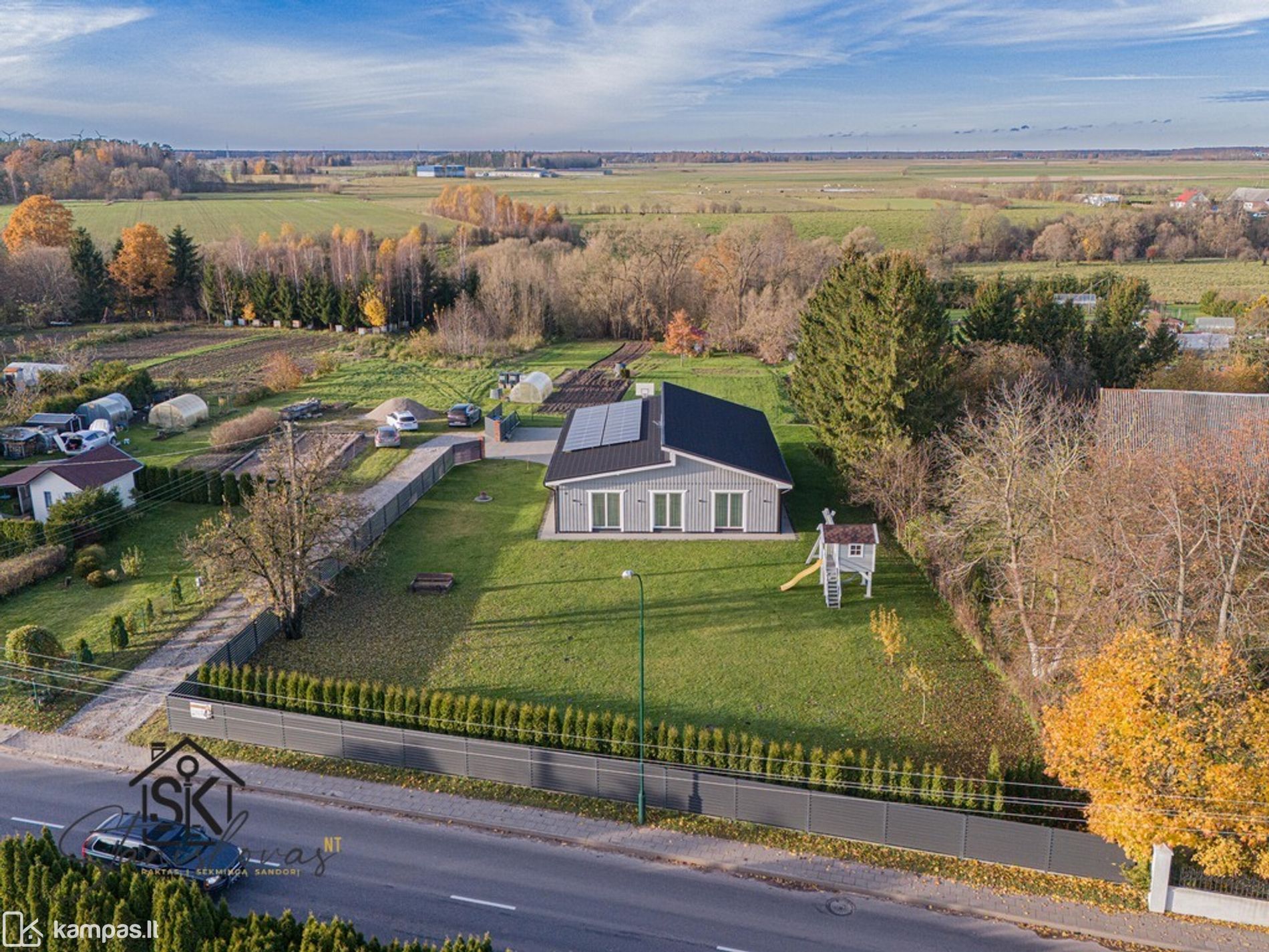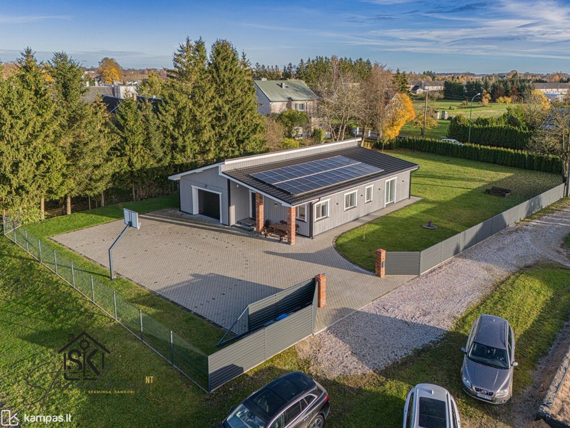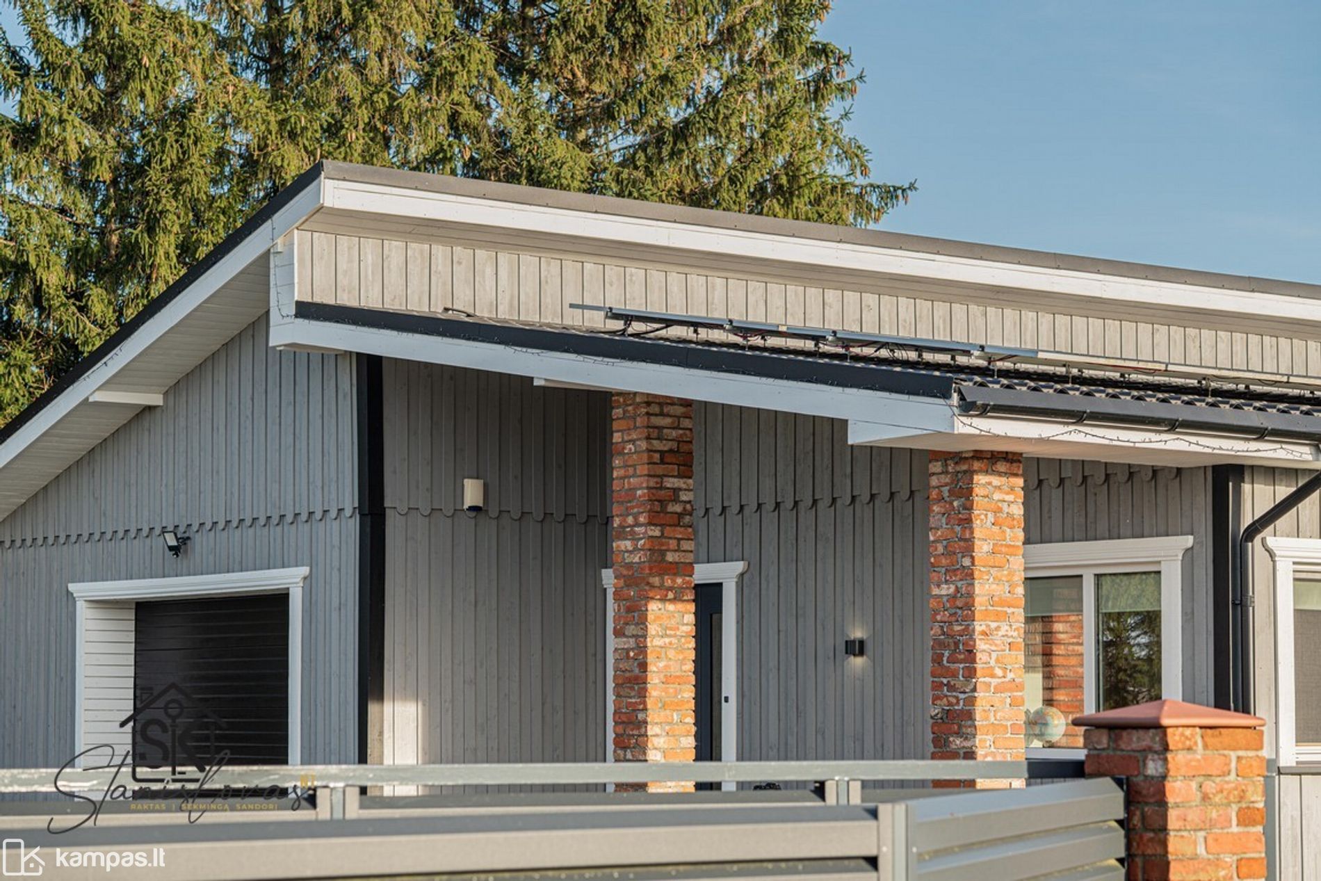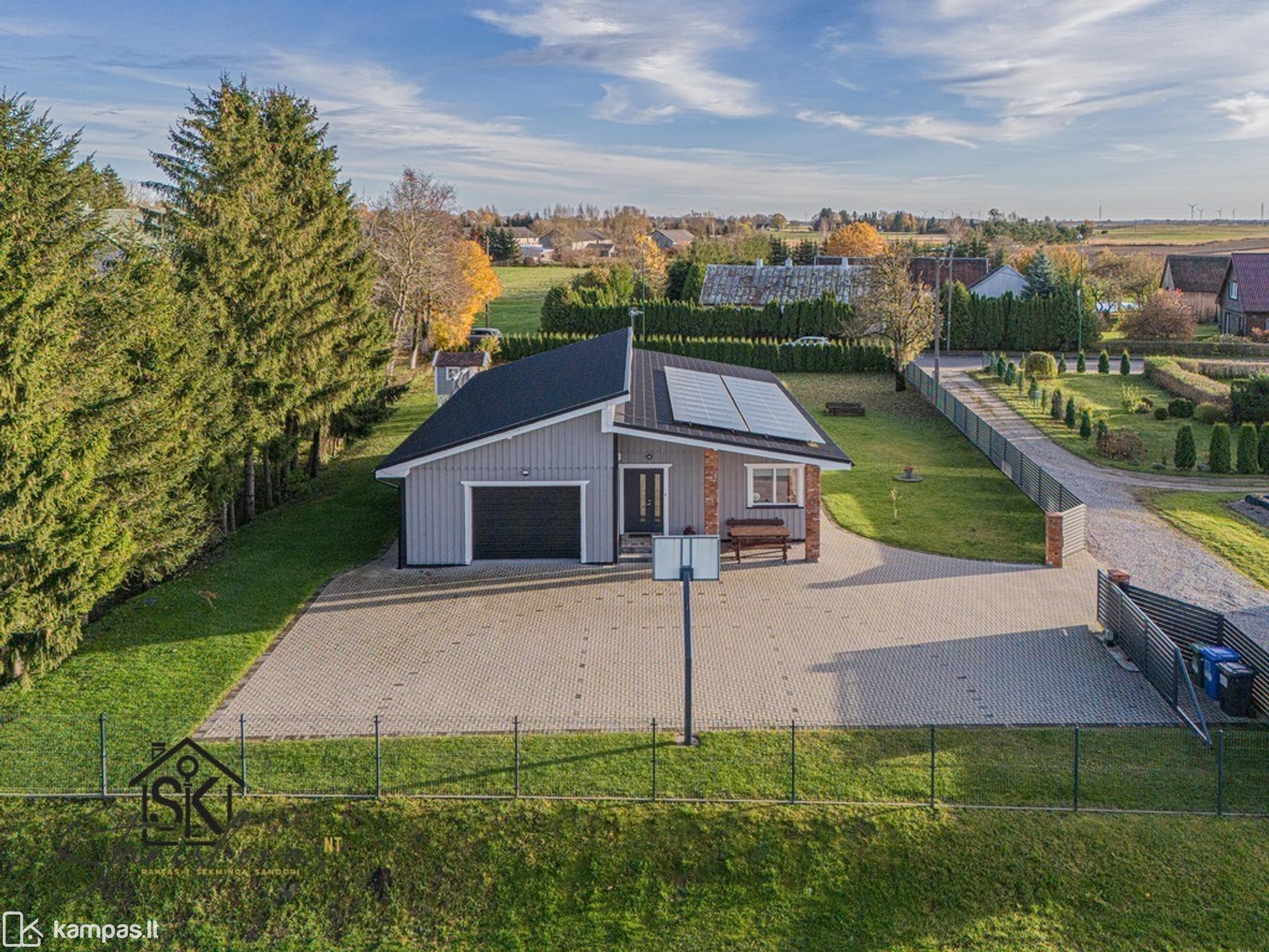 Parduodamas šiuolaikiškas ir ekonomiškas 182,88 kv. m namas su 17,54 a sklypu Žemaičių Naumiestyje, Klaipėdos gatvėje – puikus pasirinkimas ieškantiems komfortiškos ir saugios gyvenamosios vietos šeimai. Tai ne tik namas, bet ir gyvenimo kokybės sprendimas, kur kiekviena detalė apgalvota – nuo energiją taupančių sprendimų iki funkcionalaus išplanavimo. Namas pastatytas 2020 metais, pasižymi B energinio naudingumo klase ir yra pilnai įrengtas – su grindiniu šildymu visose patalpose bei garaže, rekuperacine sistema, oro–vandens šilumos siurbliu bei saulės elektrine ant stogo, kuri užtikrina, kad elektros sąnaudos ištisus metus beveik neegzistuotu. Kiekviename kambaryje galima individualiai reguliuoti temperatūrą, todėl visada jausitės patogiai – tiek žiemą, tiek vasarą. Namo širdis – erdvi ir šviesi svetainė su dideliais langais, pro kuriuos atsiveria tvarkingas, išpuoselėtas kiemas. Kieme rasite viską, ko reikia kokybiškam šeimos laisvalaikiui – saugią, aptvertą teritoriją, vaikų žaidimų zoną su smėlio dėže, sūpynėmis ir čiuožykla, krepšinio stovą, šiltnamį, automatinį vejos pjovimo robotą bei patogią aikštelę automobiliams. Vos kelios minutės iki artimiausio tvenkinio pasivaikščiojimams ar vasaros pramogoms. Miestelyje veikia gimnazija, darželis, parduotuvės bei sveikatos priežiūros įstaiga. Namas stovi prie pagrindinio kelio, todėl patogu tiek pasiekti vietos paslaugas, tiek greitai nuvykti į Šilutės miestą – vos 15 minučių automobiliu. Tai namas, sukurtas žmonėms, kurie vertina kokybę, jaukumą ir ekonomišką gyvenimą.