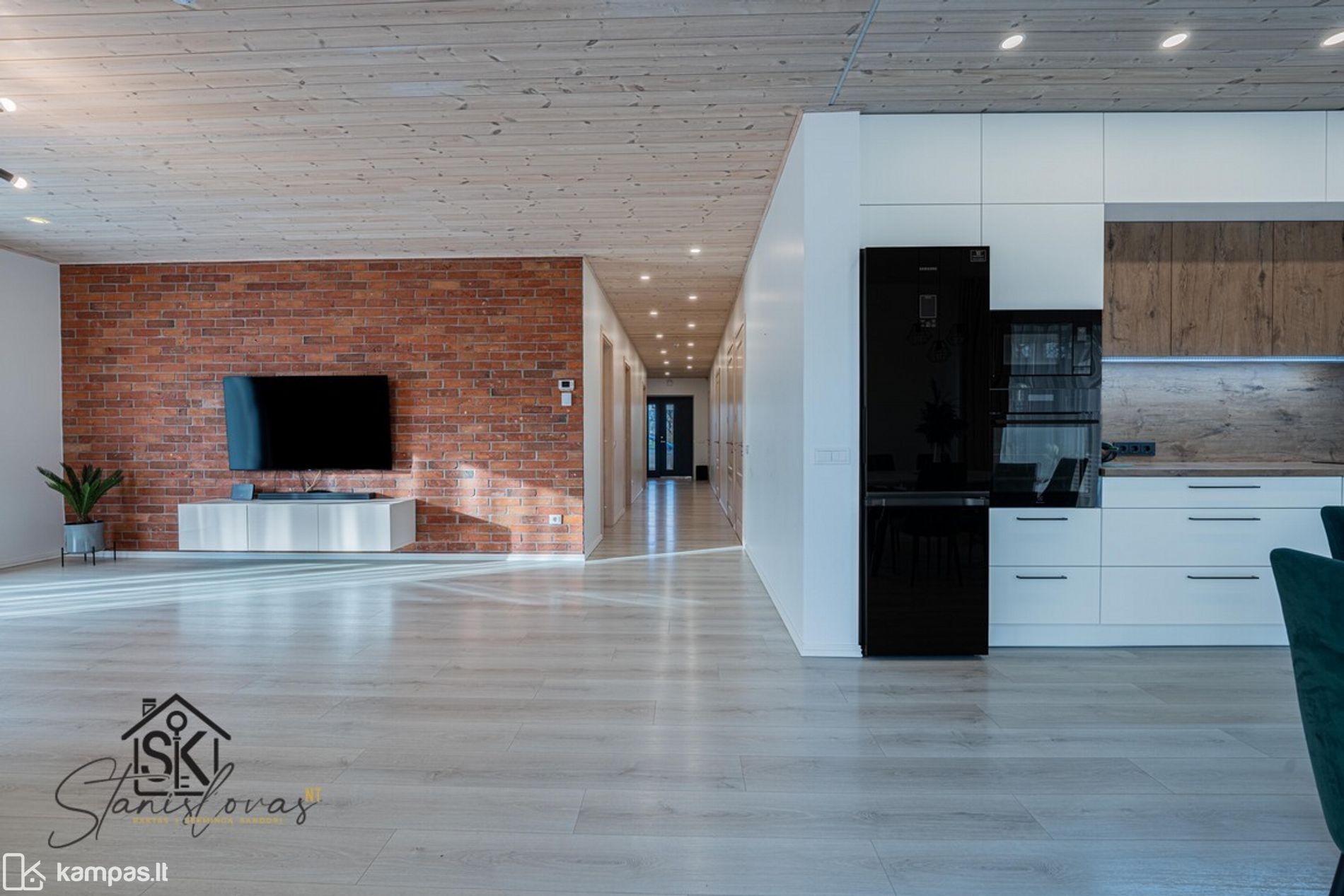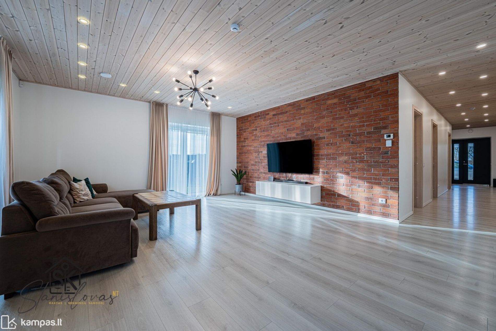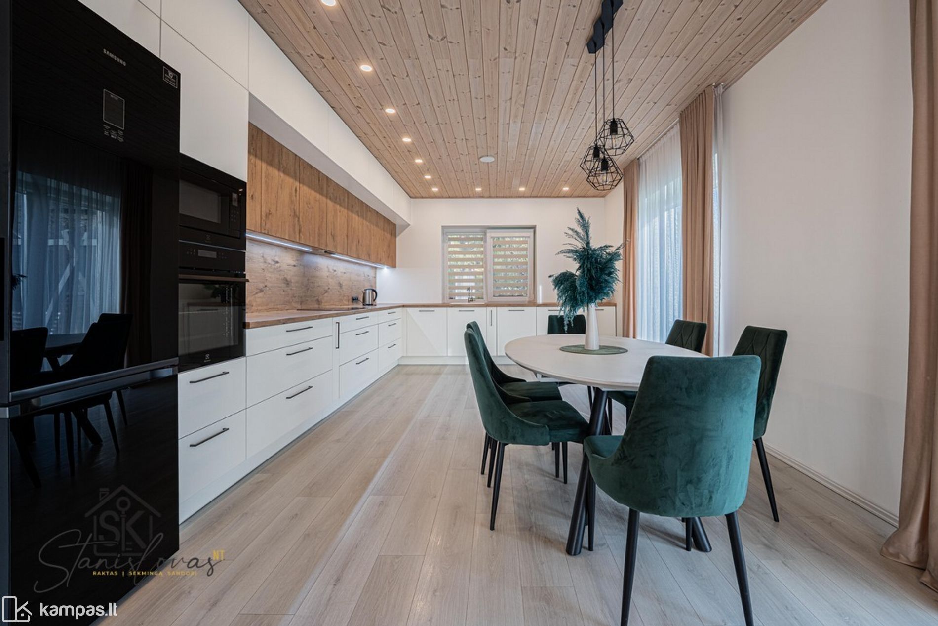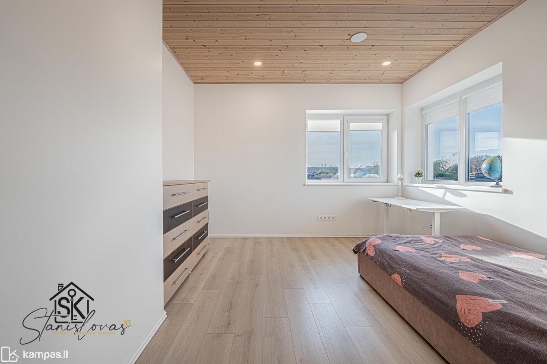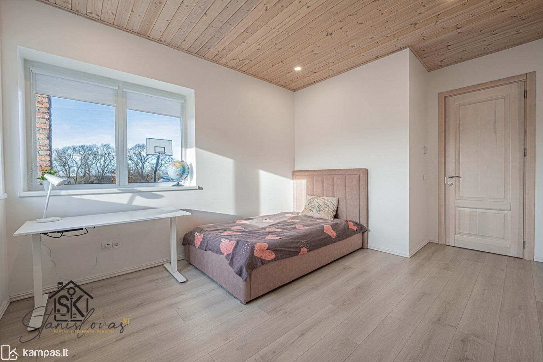 Parduodamas šiuolaikiškas ir ekonomiškas 182,88 kv. m namas su 17,54 a sklypu Žemaičių Naumiestyje, Klaipėdos gatvėje – puikus pasirinkimas ieškantiems komfortiškos ir saugios gyvenamosios vietos šeimai. Tai ne tik namas, bet ir gyvenimo kokybės sprendimas, kur kiekviena detalė apgalvota – nuo energiją taupančių sprendimų iki funkcionalaus išplanavimo. Namas pastatytas 2020 metais, pasižymi B energinio naudingumo klase ir yra pilnai įrengtas – su grindiniu šildymu visose patalpose bei garaže, rekuperacine sistema, oro–vandens šilumos siurbliu bei saulės elektrine ant stogo, kuri užtikrina, kad elektros sąnaudos ištisus metus beveik neegzistuotu. Kiekviename kambaryje galima individualiai reguliuoti temperatūrą, todėl visada jausitės patogiai – tiek žiemą, tiek vasarą. Namo širdis – erdvi ir šviesi svetainė su dideliais langais, pro kuriuos atsiveria tvarkingas, išpuoselėtas kiemas. Kieme rasite viską, ko reikia kokybiškam šeimos laisvalaikiui – saugią, aptvertą teritoriją, vaikų žaidimų zoną su smėlio dėže, sūpynėmis ir čiuožykla, krepšinio stovą, šiltnamį, automatinį vejos pjovimo robotą bei patogią aikštelę automobiliams. Vos kelios minutės iki artimiausio tvenkinio pasivaikščiojimams ar vasaros pramogoms. Miestelyje veikia gimnazija, darželis, parduotuvės bei sveikatos priežiūros įstaiga. Namas stovi prie pagrindinio kelio, todėl patogu tiek pasiekti vietos paslaugas, tiek greitai nuvykti į Šilutės miestą – vos 15 minučių automobiliu. Tai namas, sukurtas žmonėms, kurie vertina kokybę, jaukumą ir ekonomišką gyvenimą.