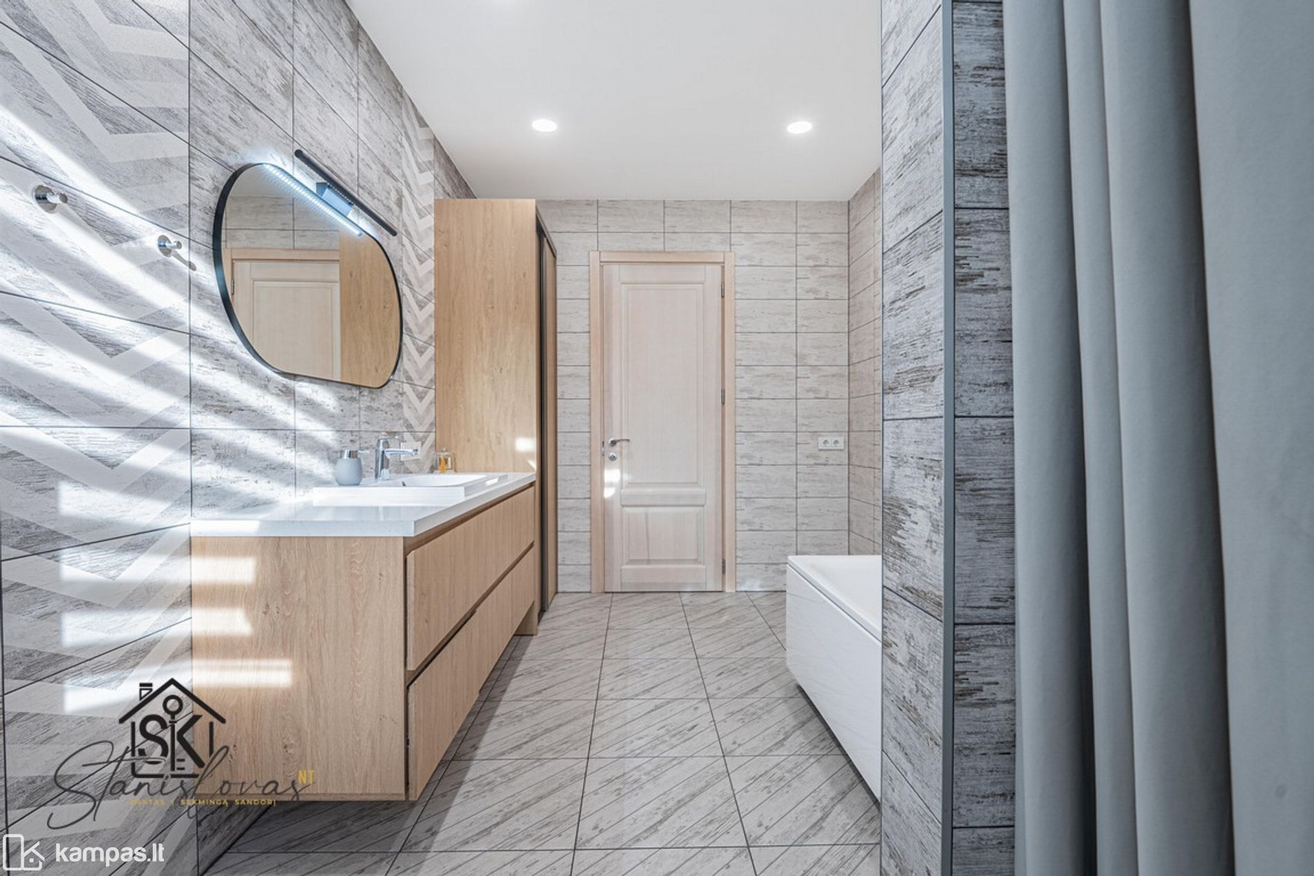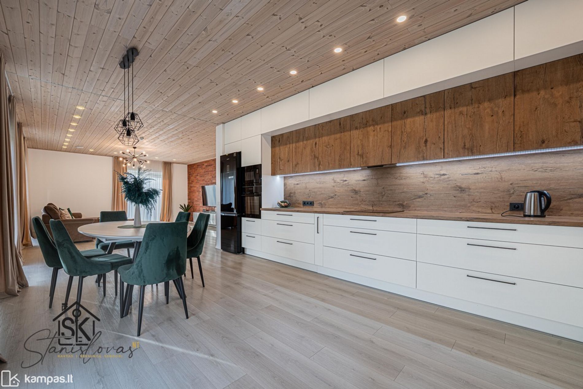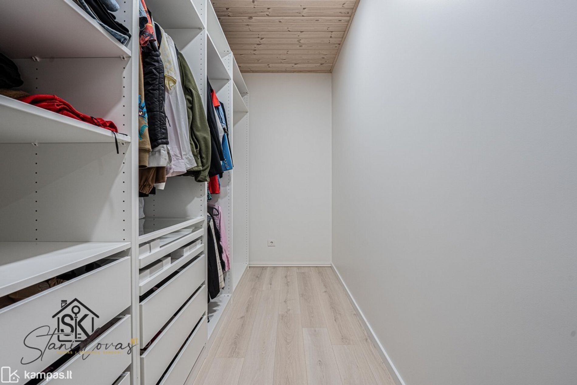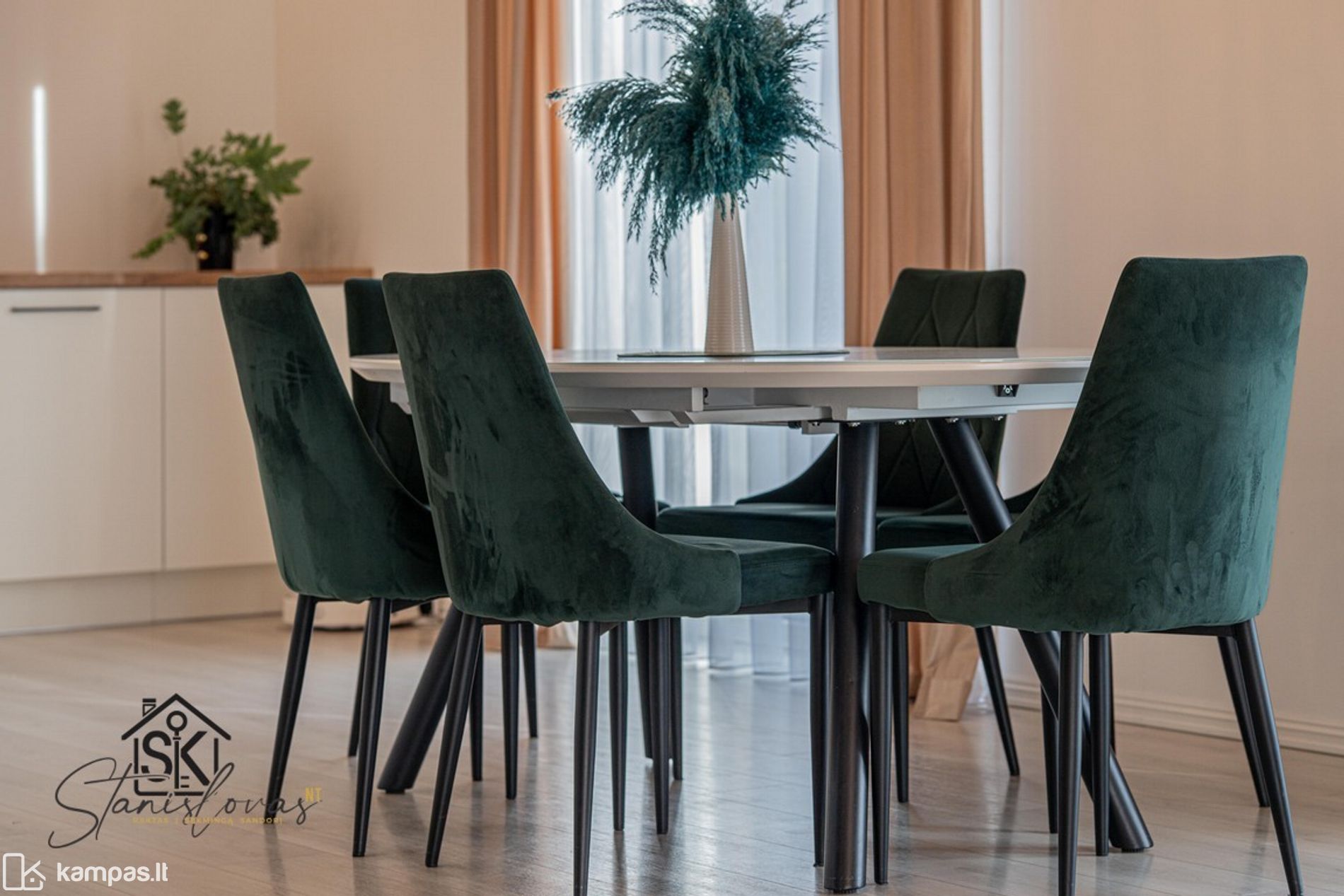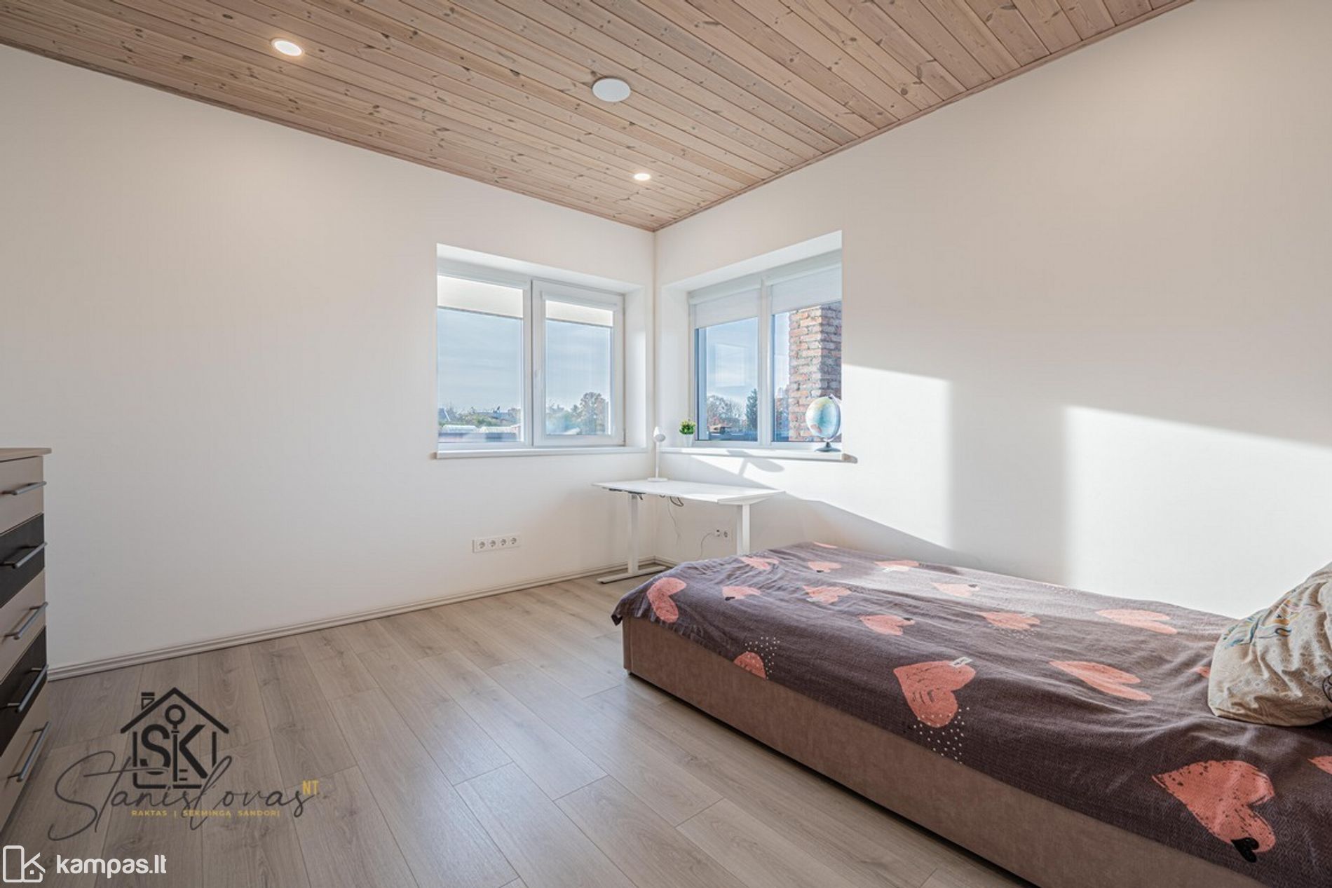 Parduodamas šiuolaikiškas ir ekonomiškas 182,88 kv. m namas su 17,54 a sklypu Žemaičių Naumiestyje, Klaipėdos gatvėje – puikus pasirinkimas ieškantiems komfortiškos ir saugios gyvenamosios vietos šeimai. Tai ne tik namas, bet ir gyvenimo kokybės sprendimas, kur kiekviena detalė apgalvota – nuo energiją taupančių sprendimų iki funkcionalaus išplanavimo. Namas pastatytas 2020 metais, pasižymi B energinio naudingumo klase ir yra pilnai įrengtas – su grindiniu šildymu visose patalpose bei garaže, rekuperacine sistema, oro–vandens šilumos siurbliu bei saulės elektrine ant stogo, kuri užtikrina, kad elektros sąnaudos ištisus metus beveik neegzistuotu. Kiekviename kambaryje galima individualiai reguliuoti temperatūrą, todėl visada jausitės patogiai – tiek žiemą, tiek vasarą. Namo širdis – erdvi ir šviesi svetainė su dideliais langais, pro kuriuos atsiveria tvarkingas, išpuoselėtas kiemas. Kieme rasite viską, ko reikia kokybiškam šeimos laisvalaikiui – saugią, aptvertą teritoriją, vaikų žaidimų zoną su smėlio dėže, sūpynėmis ir čiuožykla, krepšinio stovą, šiltnamį, automatinį vejos pjovimo robotą bei patogią aikštelę automobiliams. Vos kelios minutės iki artimiausio tvenkinio pasivaikščiojimams ar vasaros pramogoms. Miestelyje veikia gimnazija, darželis, parduotuvės bei sveikatos priežiūros įstaiga. Namas stovi prie pagrindinio kelio, todėl patogu tiek pasiekti vietos paslaugas, tiek greitai nuvykti į Šilutės miestą – vos 15 minučių automobiliu. Tai namas, sukurtas žmonėms, kurie vertina kokybę, jaukumą ir ekonomišką gyvenimą.