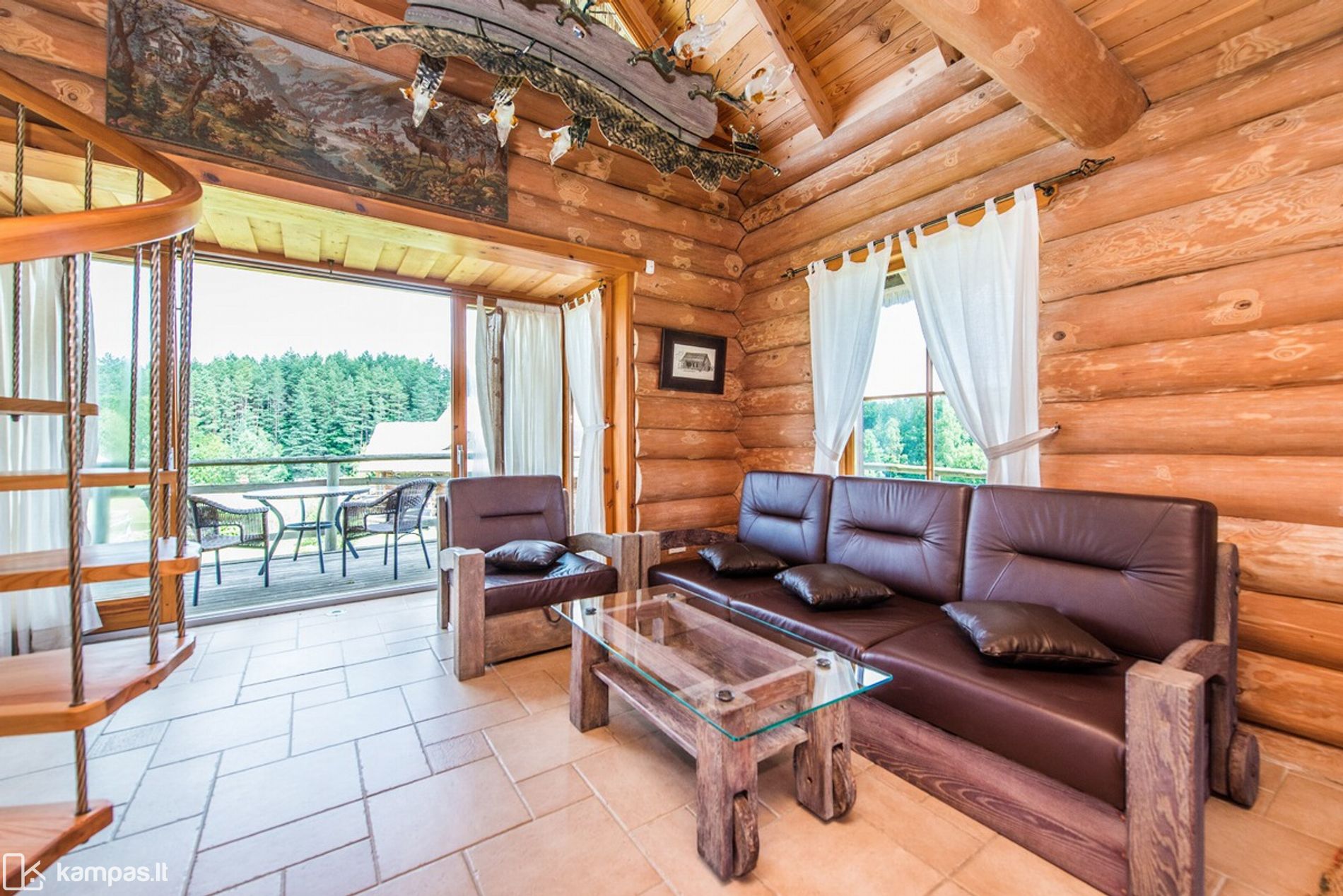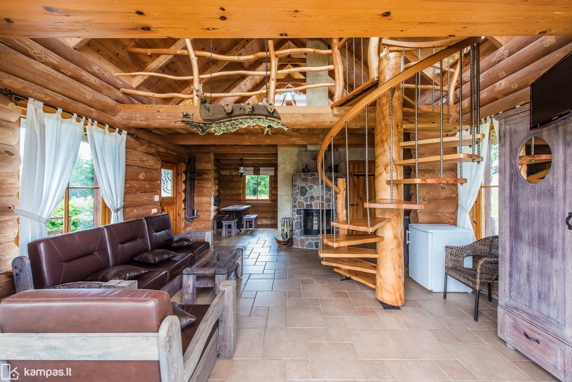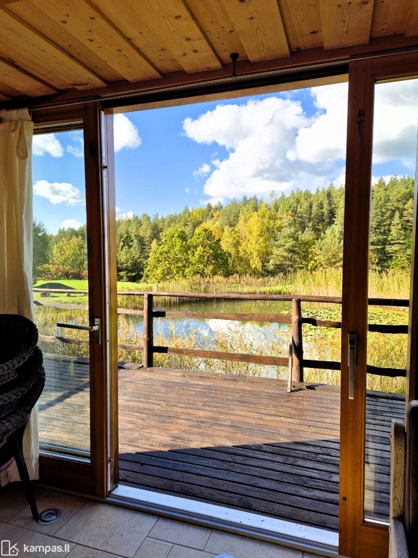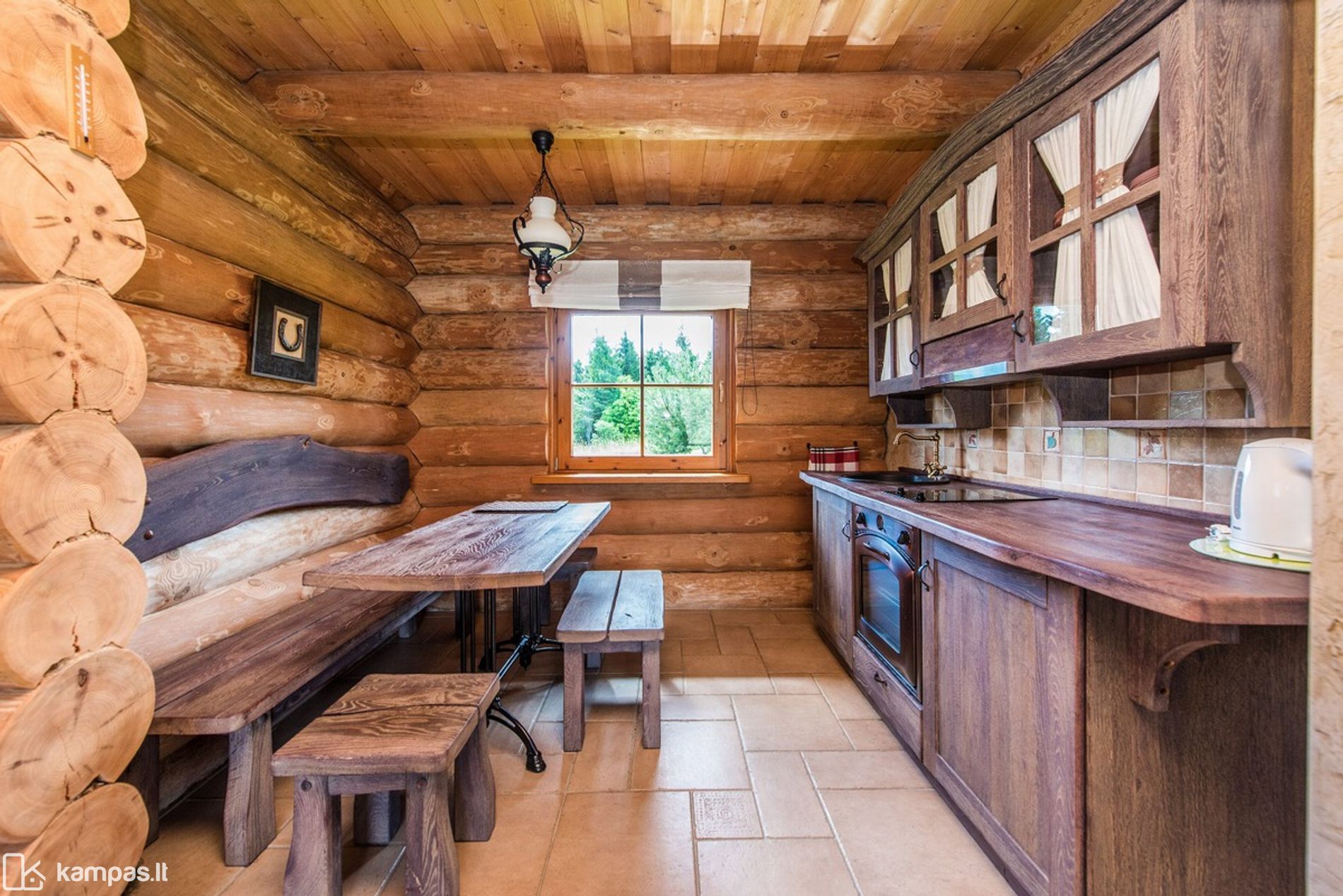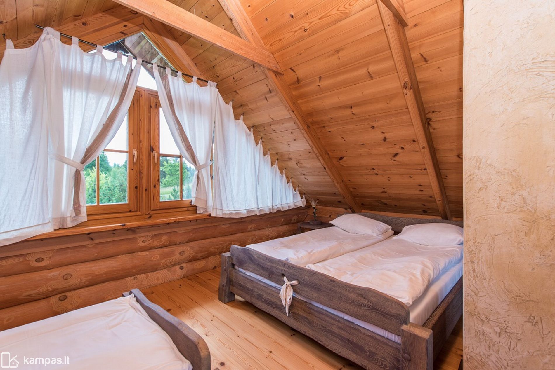 Pirmajame aukšte – jauki svetainė su židiniu ir virtuvė, o antrajame – erdvus miegamasis su vaizdu į ežerą, mišką ir kalvotą reljefą. Čia galėsite mėgautis pirties malonumais, žavėtis užburiančiu ežero grožiu, išbandyti vandens pramogas, žvejoti, vežioti, rinkti miško gėrybes. Kalvotos trasos puikiai tinka aktyviam sportui – kalnų dviračiams, keturračiams motociklams, o žiemą – slidinėjimui ir čiuožimui ant užšalusio ežero.