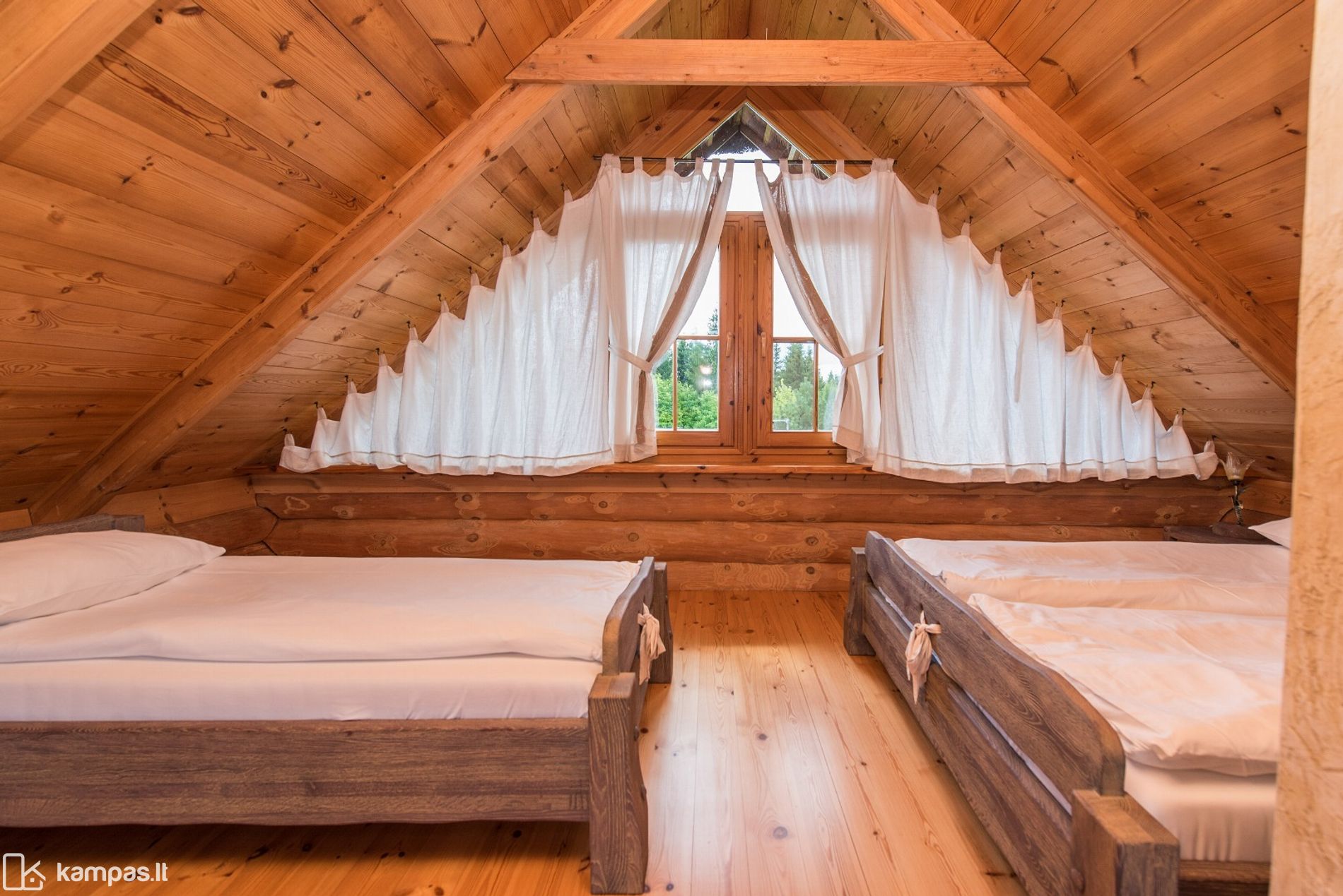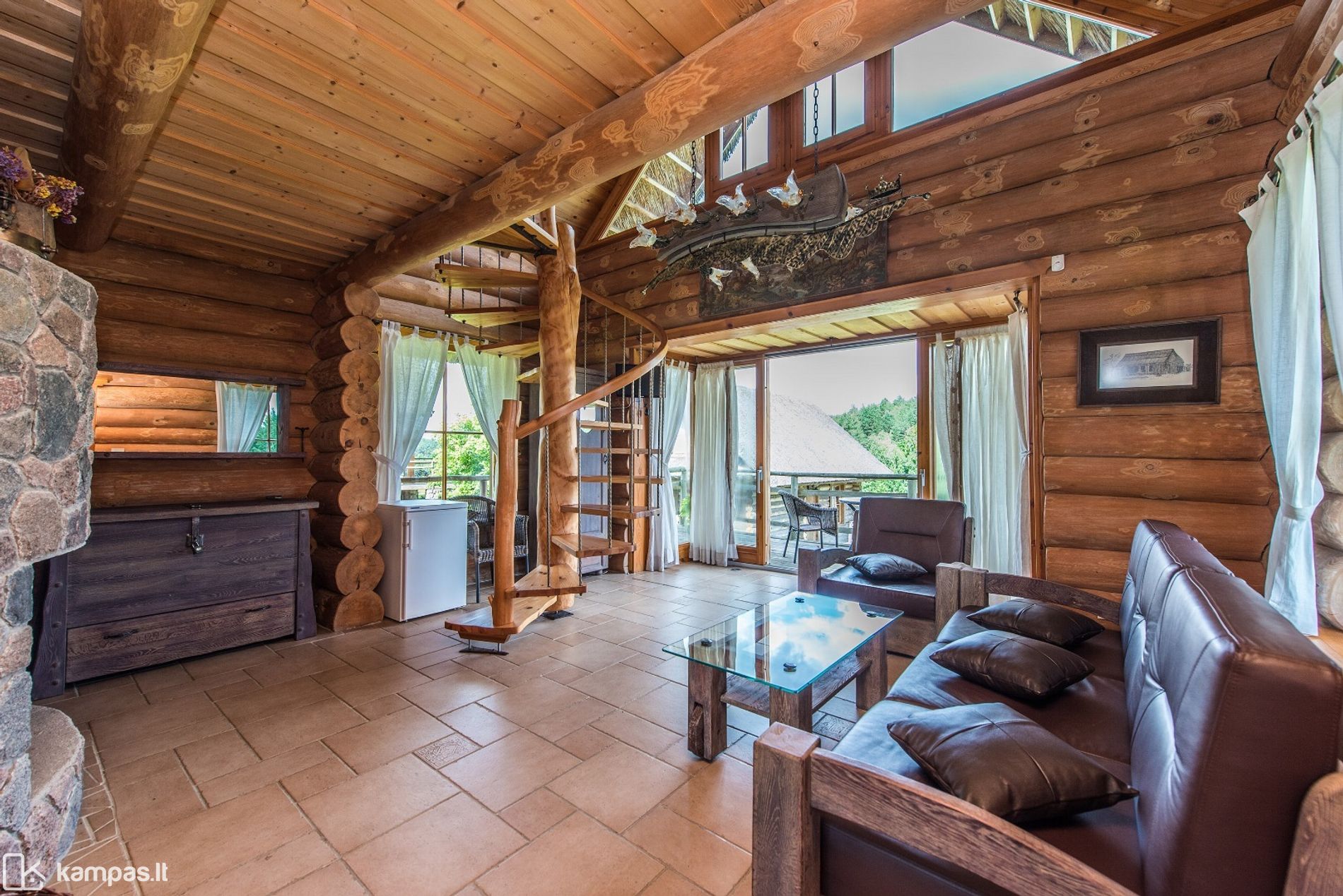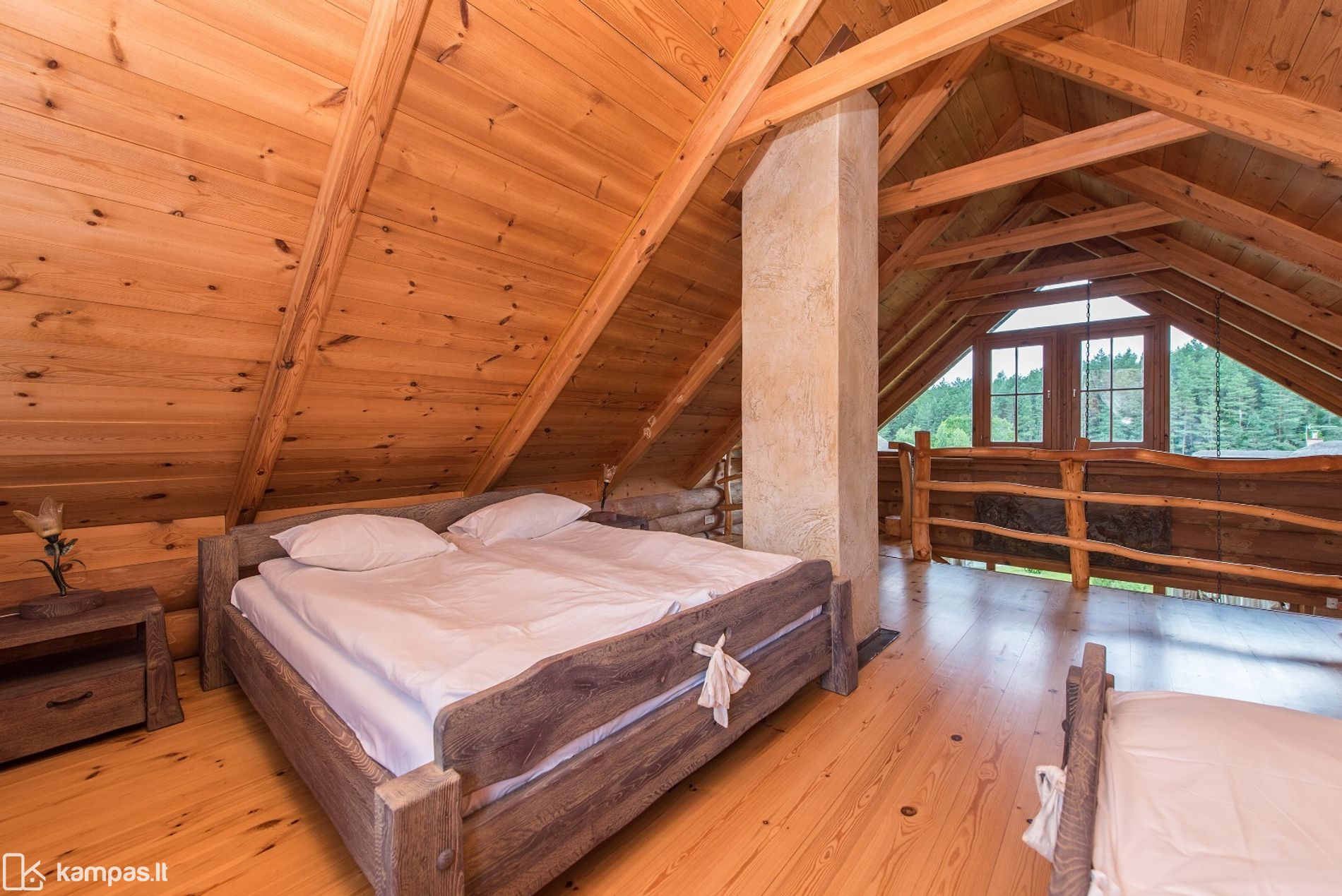 Pirmajame aukšte – jauki svetainė su židiniu ir virtuvė, o antrajame – erdvus miegamasis su vaizdu į ežerą, mišką ir kalvotą reljefą. Čia galėsite mėgautis pirties malonumais, žavėtis užburiančiu ežero grožiu, išbandyti vandens pramogas, žvejoti, vežioti, rinkti miško gėrybes. Kalvotos trasos puikiai tinka aktyviam sportui – kalnų dviračiams, keturračiams motociklams, o žiemą – slidinėjimui ir čiuožimui ant užšalusio ežero.