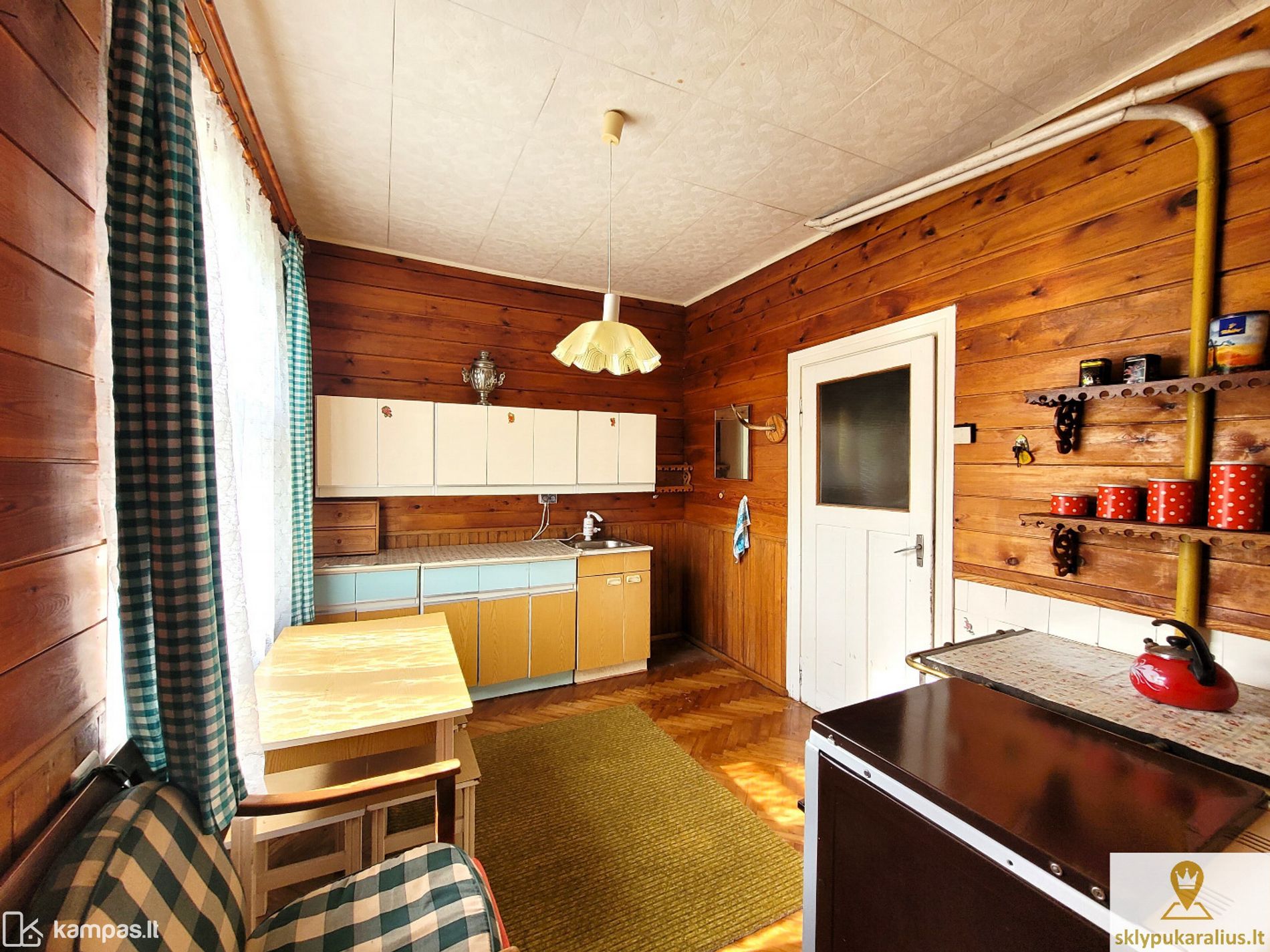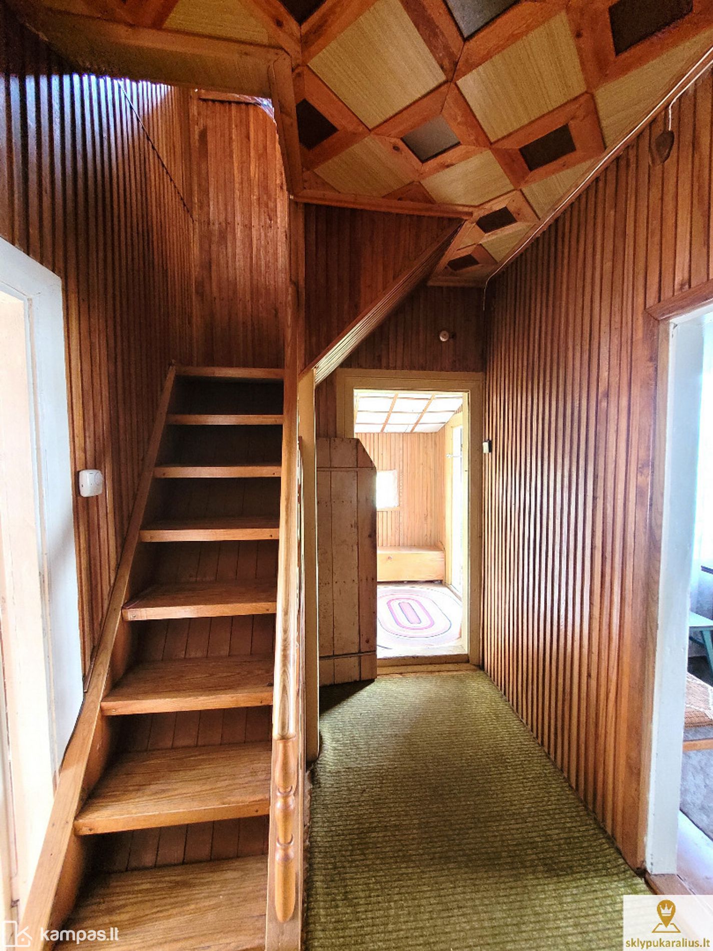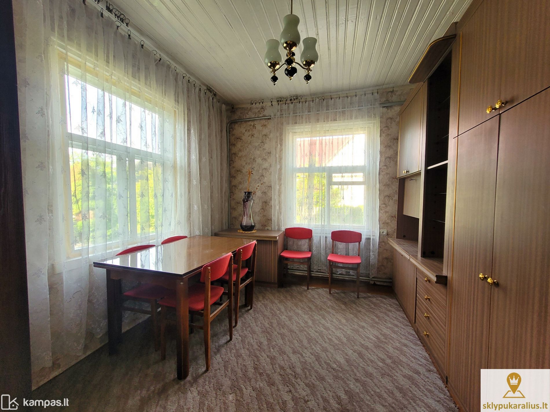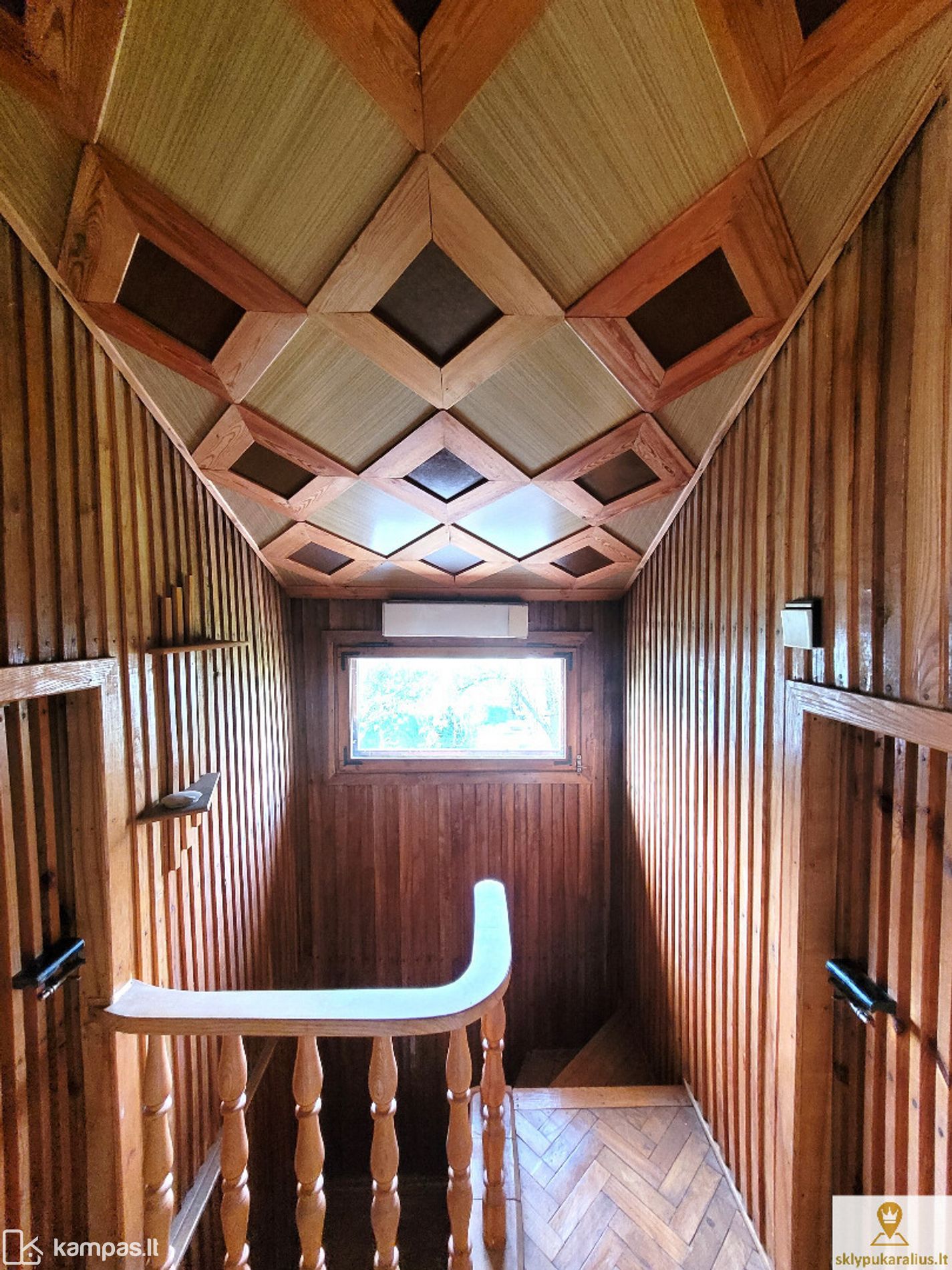 Tvarkingas, senoviškai, bet nagingai ir kokybiškai įrengtas 6 k. namas su miesto vandentiekiu ir miesto nuotekomis. Centrinis vietinis šildymas (malkinis pečius į radiatorius). Įrengtas savininko rankomis: koridoriuose meninškos unikalios lubos, įėjimo ir gonkelių durys - atskiri meno kūriniai. Antrame aukšte daug mažų pastoginių kambarėlių susidėti daiktams arba panaudoti kitaip. Senieji savininkai viename iš jų buvo įsirengę fotojuostelių ryškinimo ir nuotraukų darymo laboratoriją (nuotrauka skelbime).