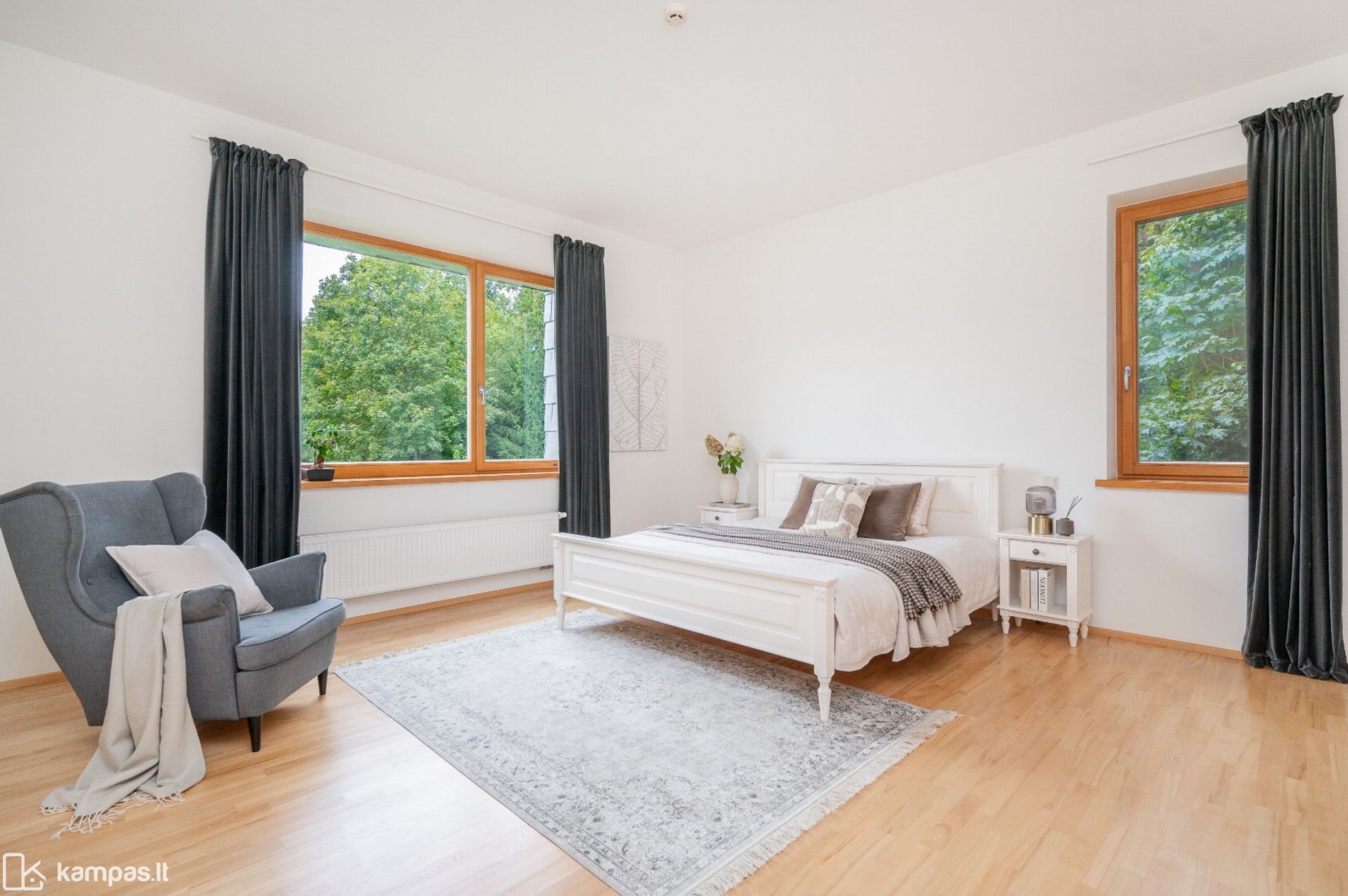 - Grindys: parketas (uosis), san. mazguose - šildomos;