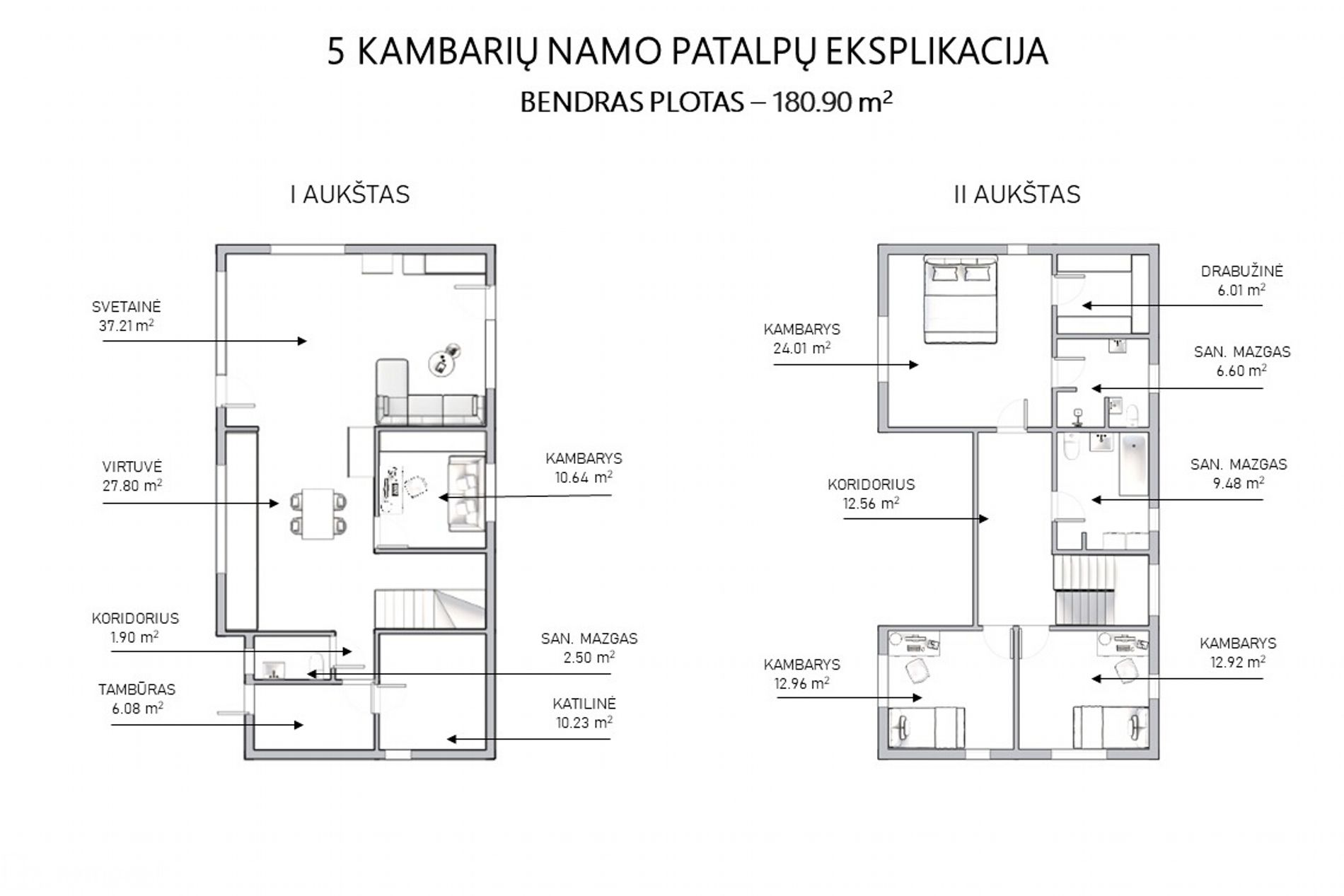 - Bendras plotas: 180.90 kv.m.;