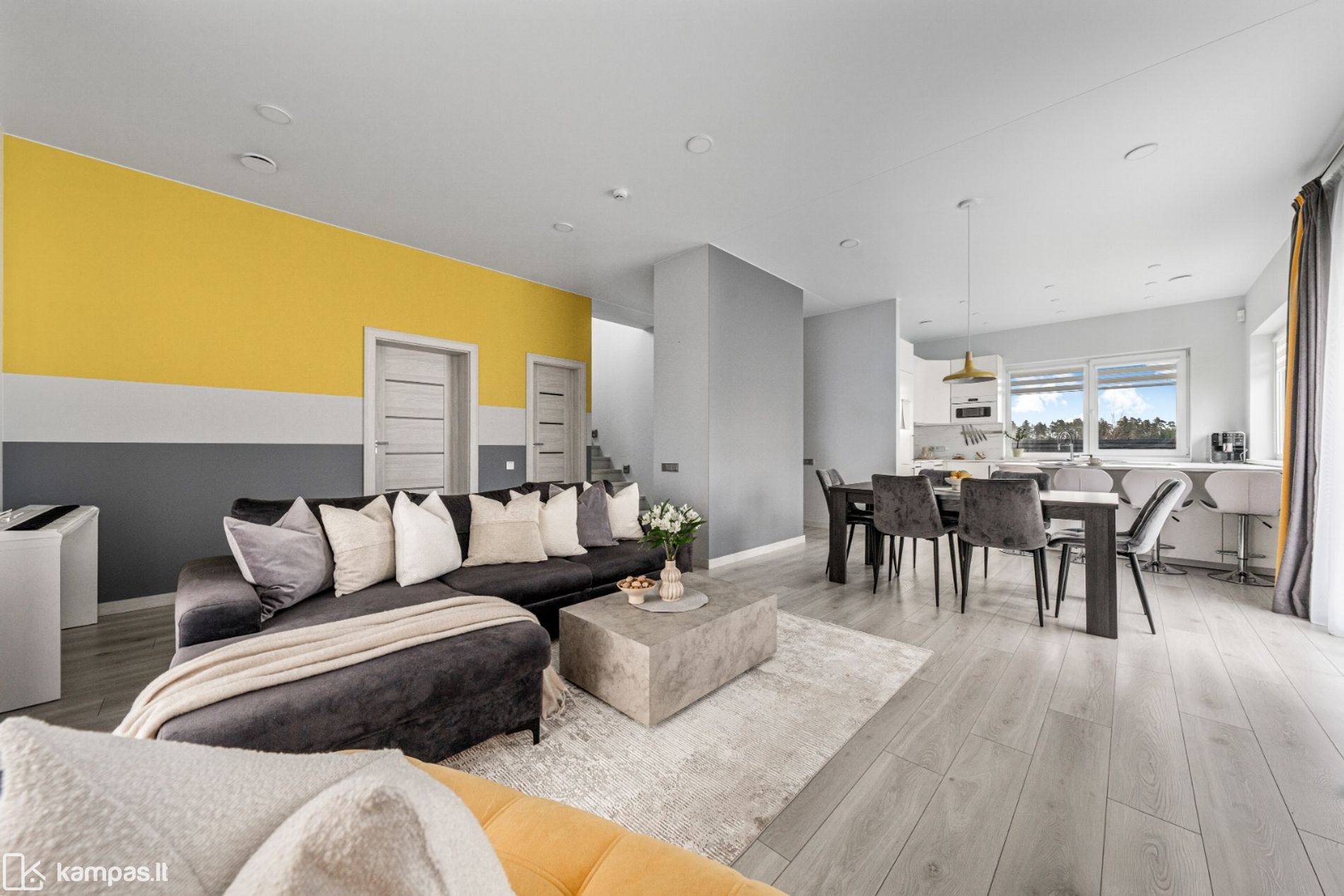 - Svetainės zonoje vitrininiai langai suteiks daug jaukumo ir šviesos;