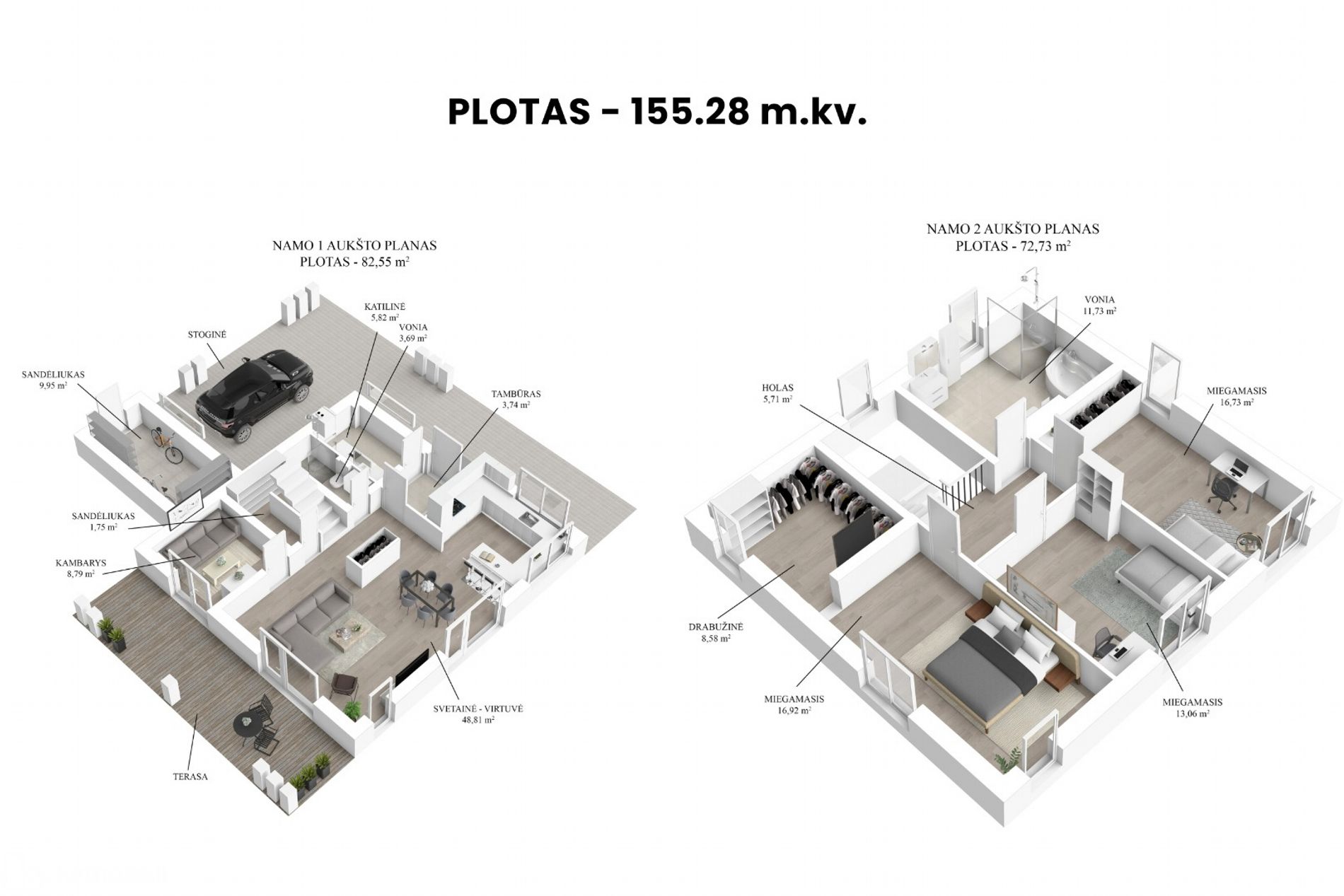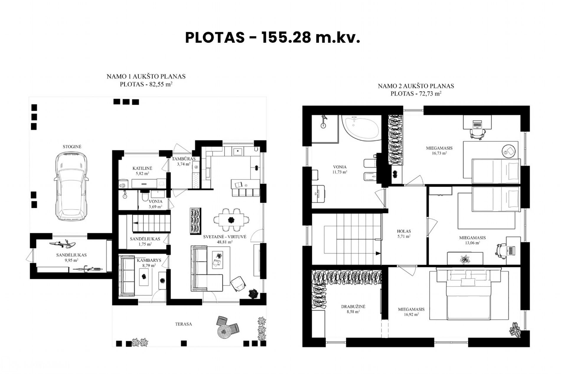 - Bendras plotas: 155.28 kv.m.;