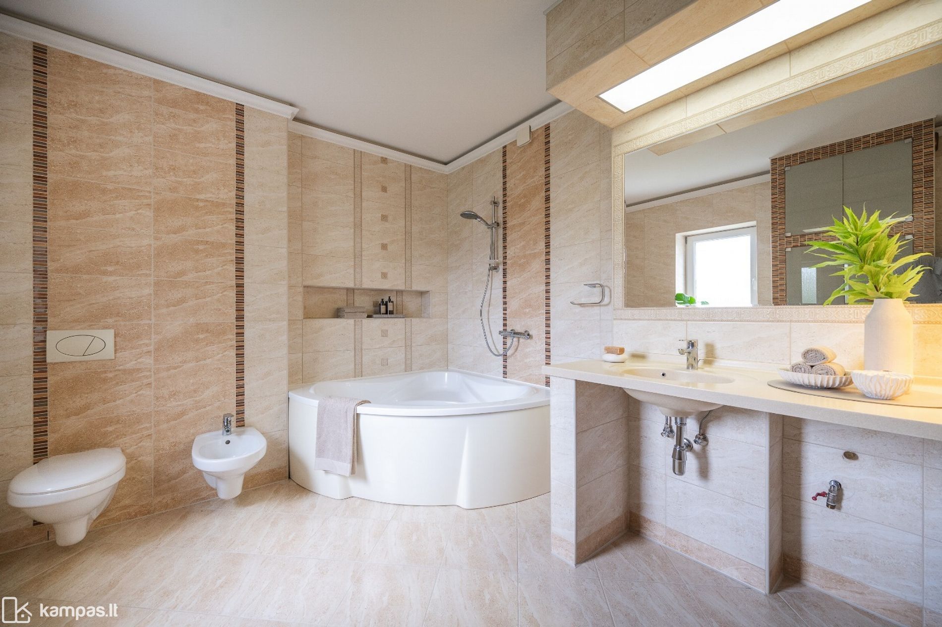 - Grindys - uosio parketas bei afrikos juodmedžio grindys; pereinami koridoriai iškloti kokybišku laminatu, plytelėmis