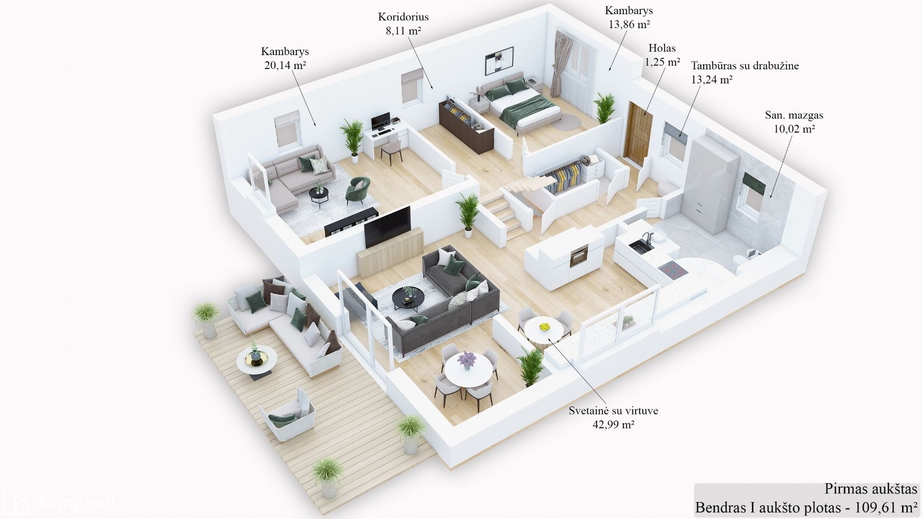- Kambarių skaičius – 5
