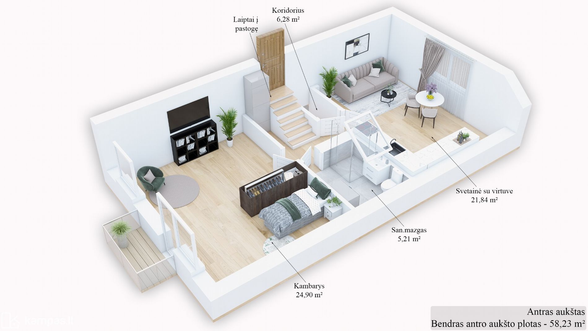 - Svetainė sujungta su virtuve apie 42,99 kv. m