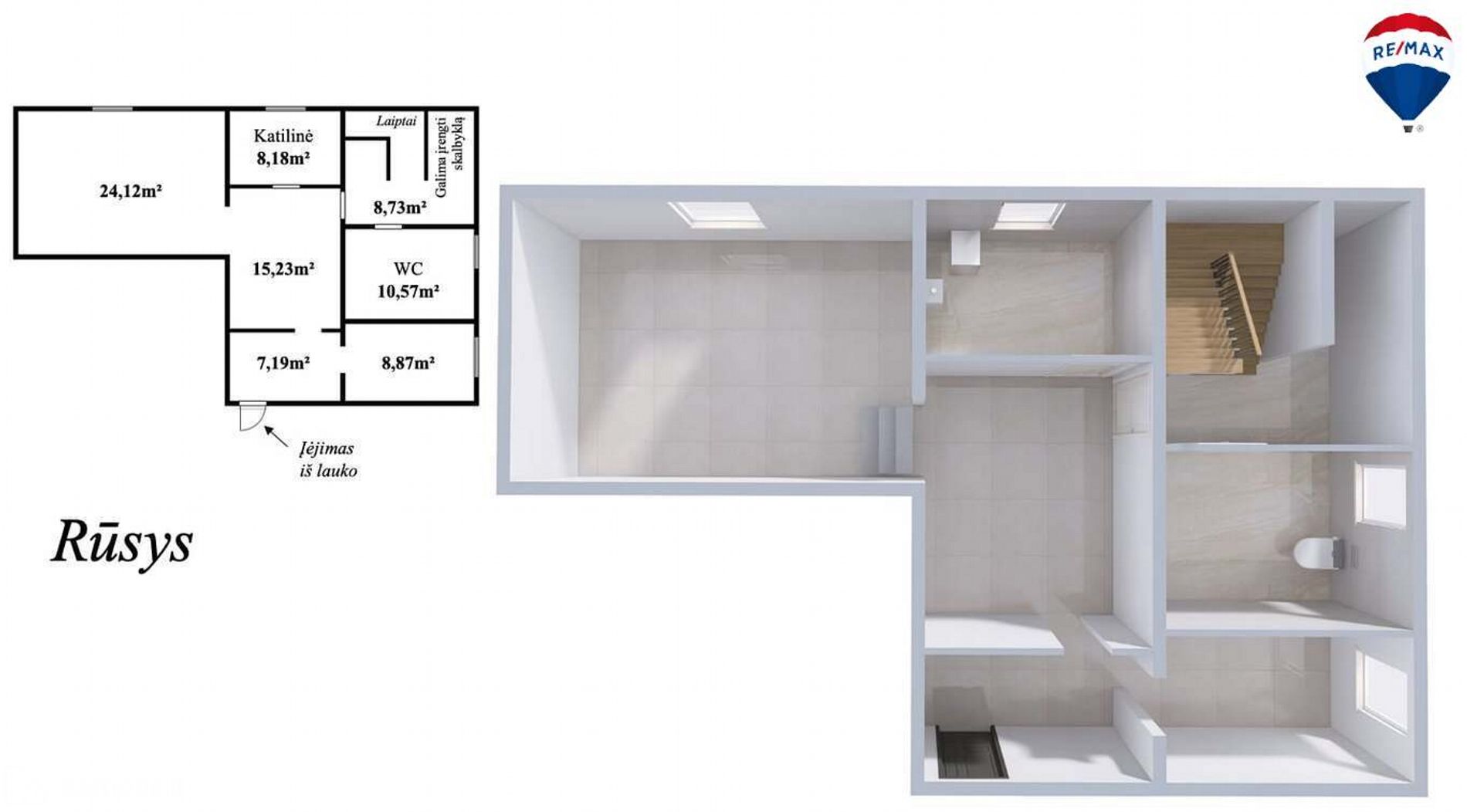 - Yra didelis rūsys – 82,89 kv. m su atskirtu įėjimu iš lauko. Patogu sandėliavimui, dirbtuvėms ar šaldymo patalpoms, yra įrengtas tualetas, galima įrengti pirtį, dušą ir/ar skalbyklą – atvesti vamzdynai;
