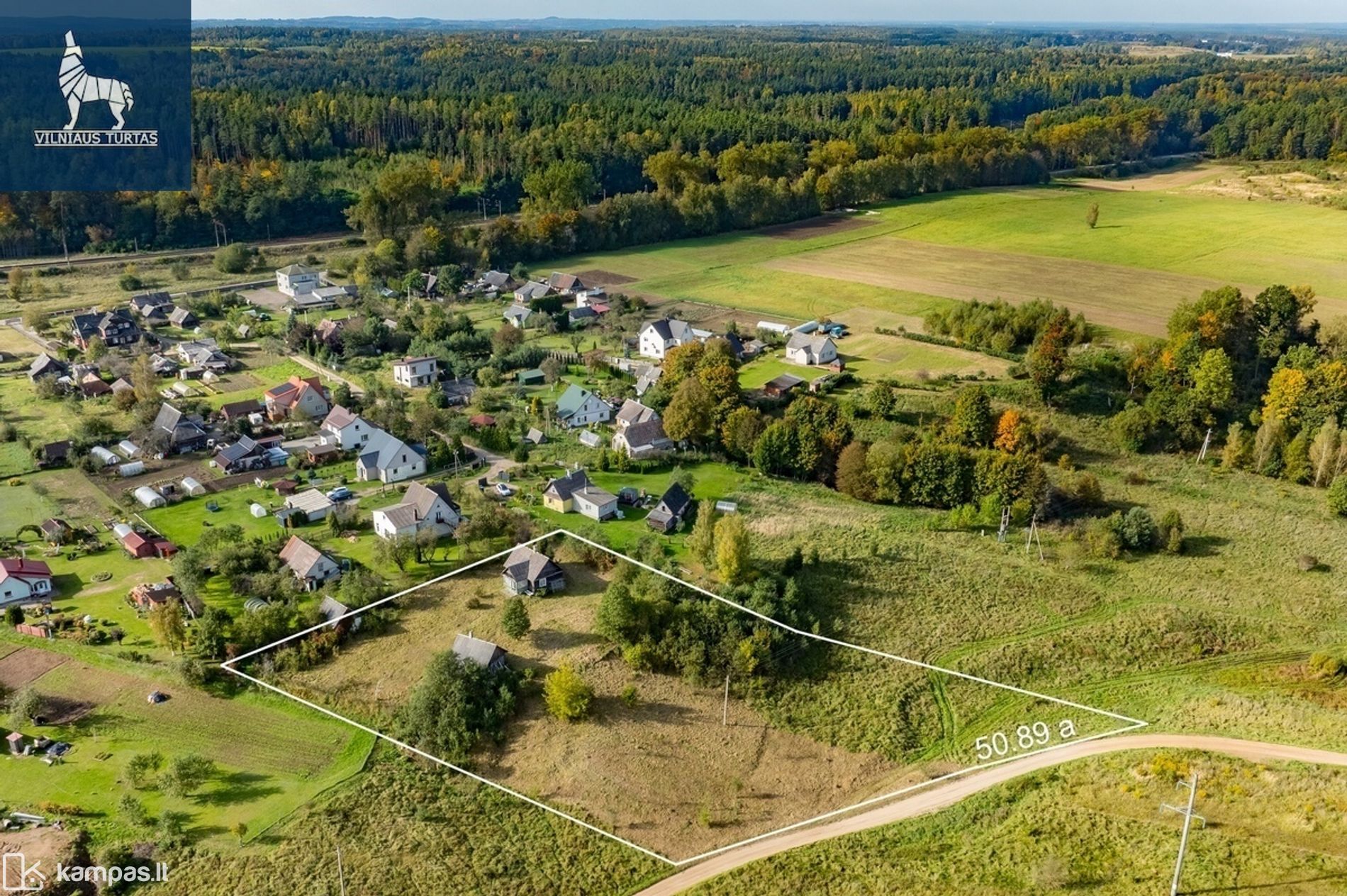 ✓ Erdvus 50 arų sklypas ant kalvos su nuostabiu atviru vaizdu į laukus ir miškus.