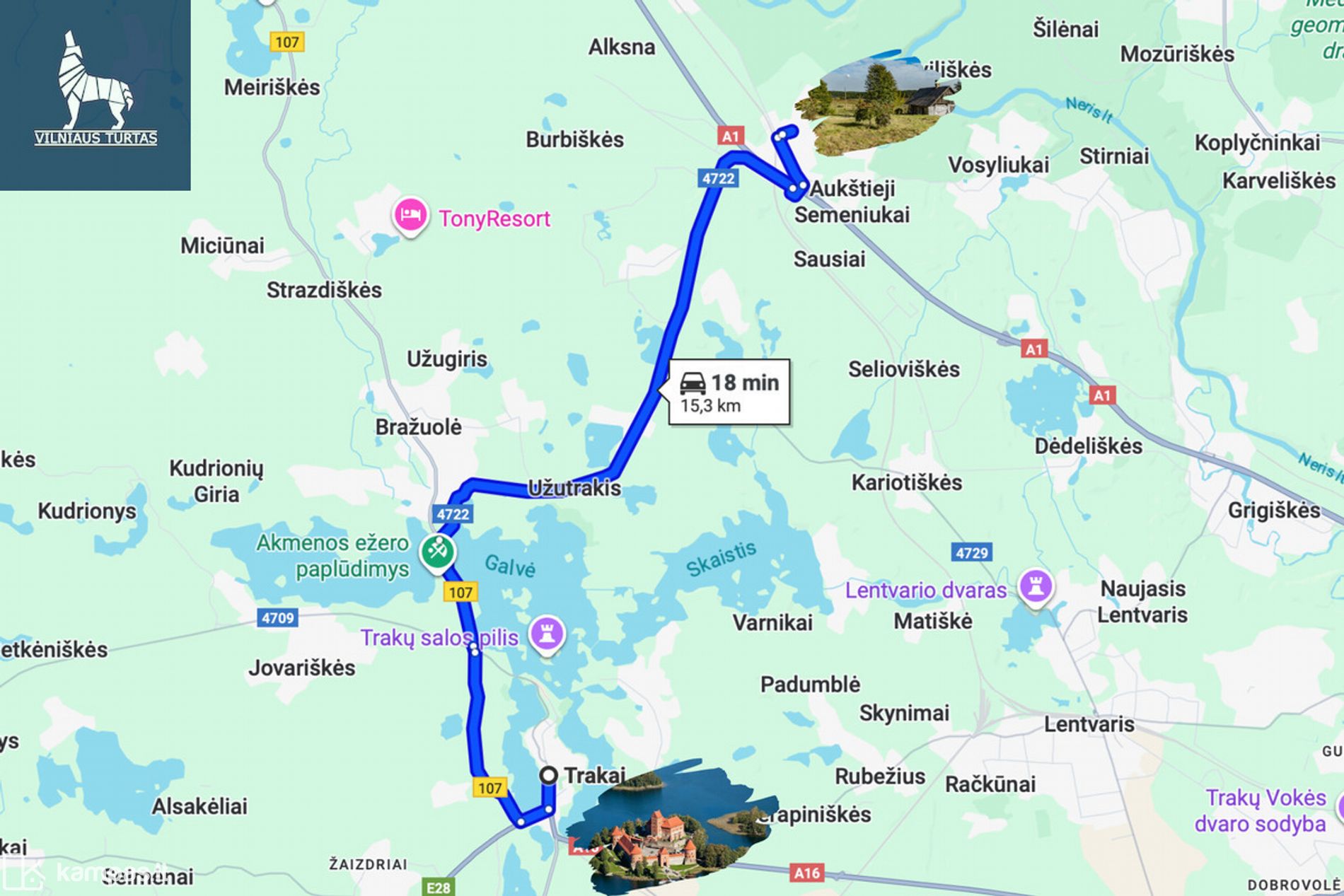 ✓ Patogus susisiekimas – iki Trakų vos keliolika minučių, iki Vilniaus centro – apie 20–28 min.