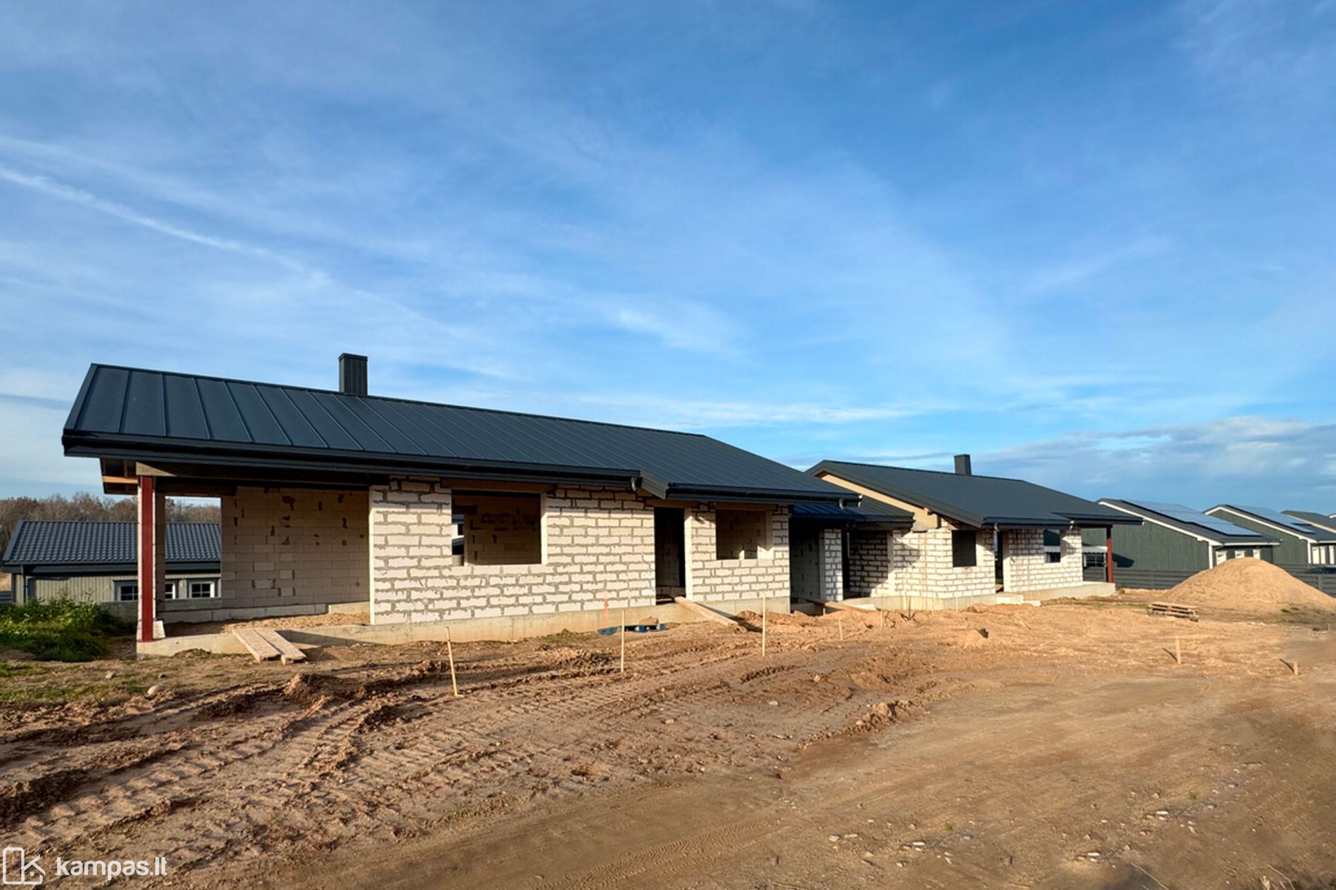 Pergalės gatvėje statomi du modernūs namai – kiekvienas su atskiru įėjimu, garažu ir privačia žemės dalimi.