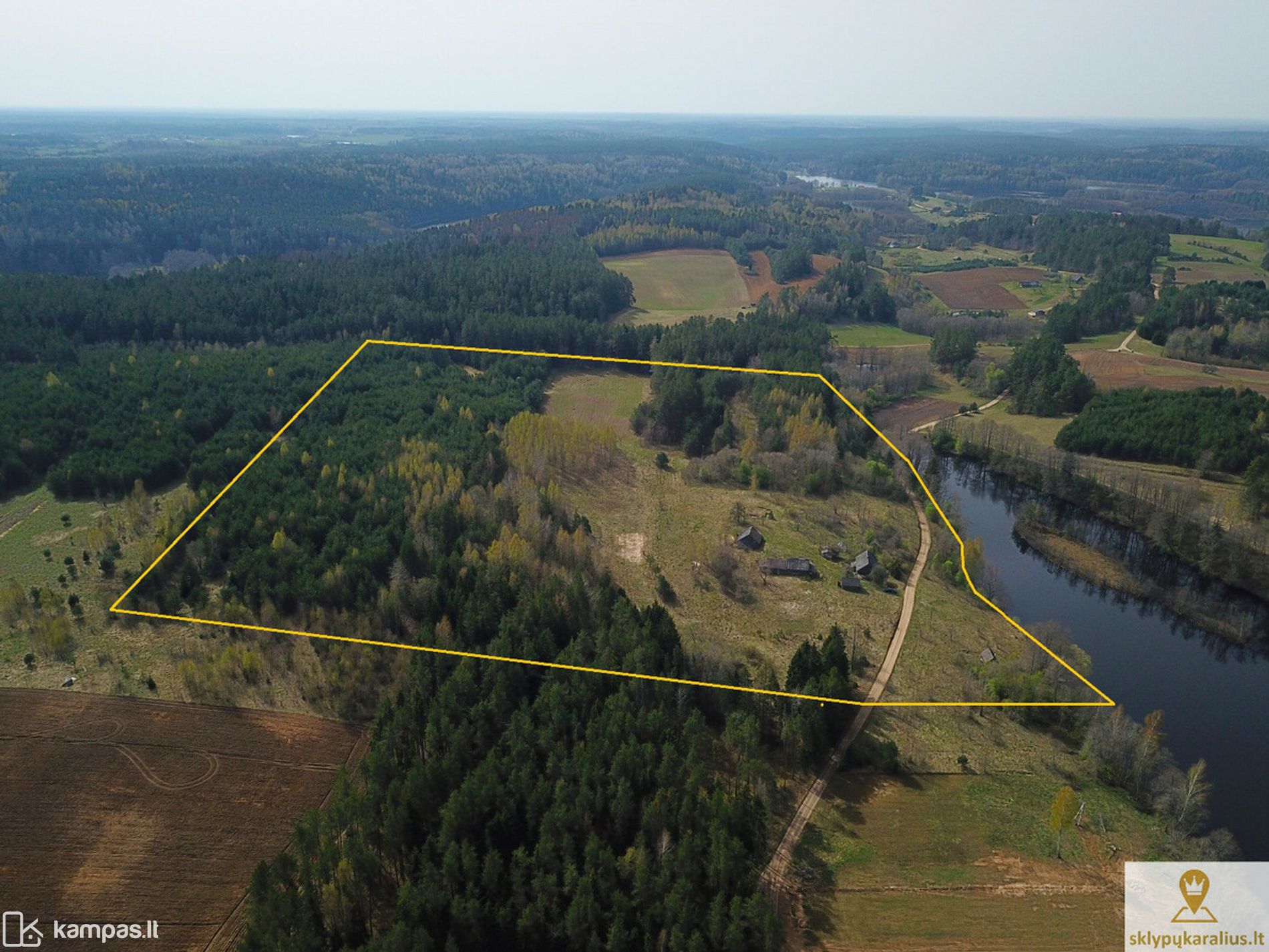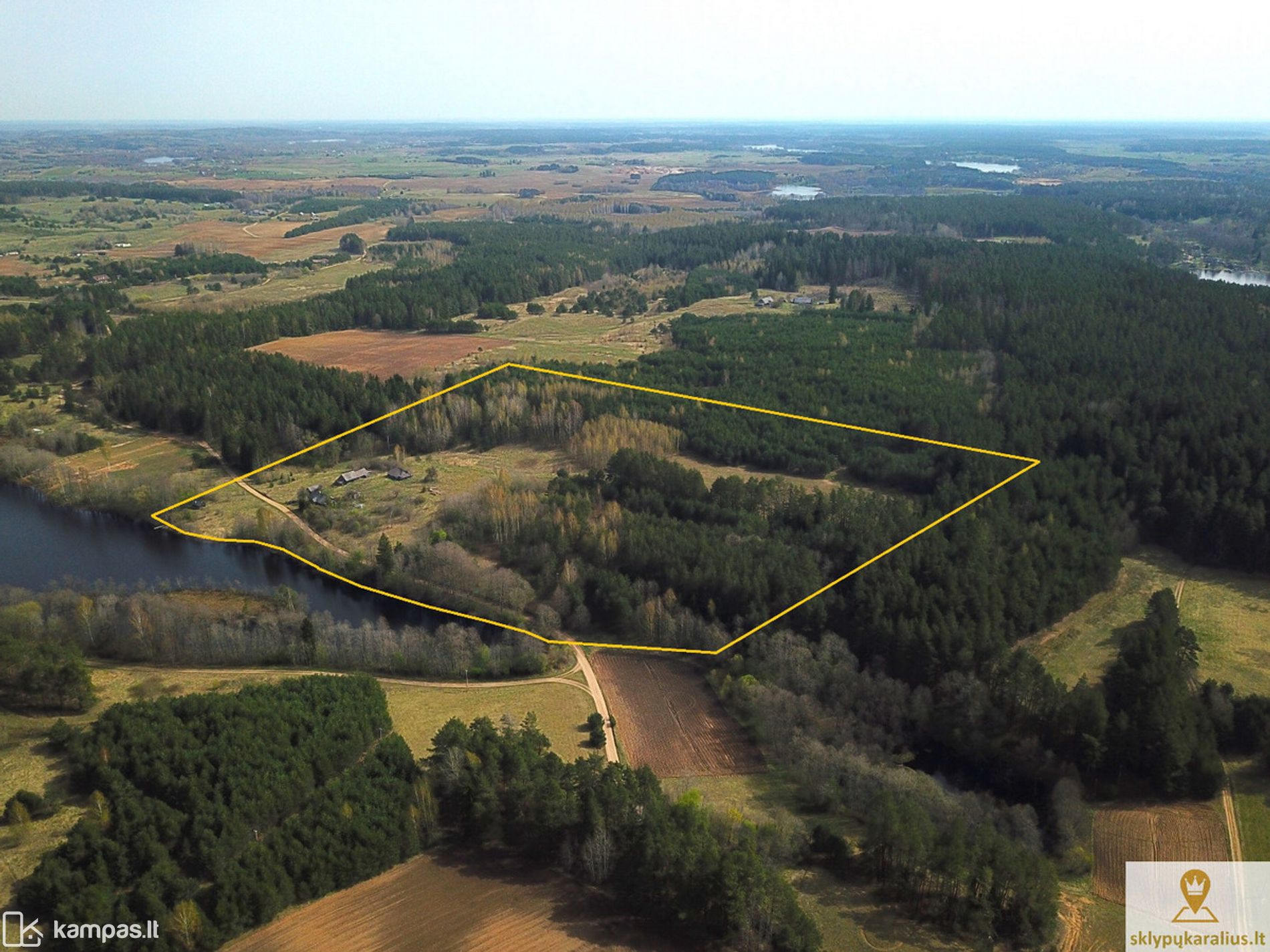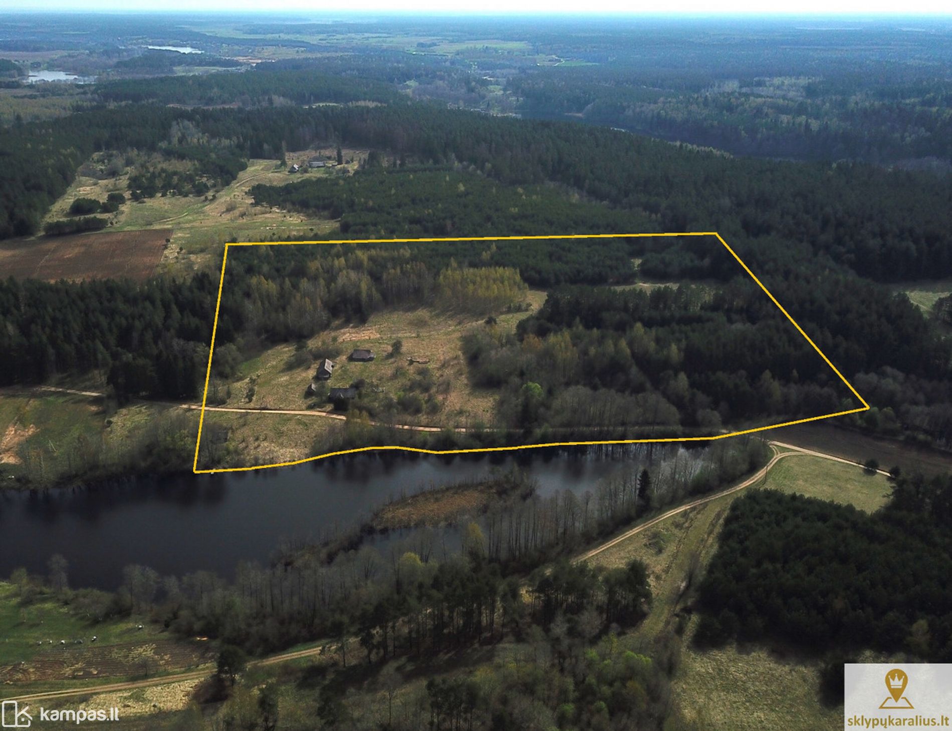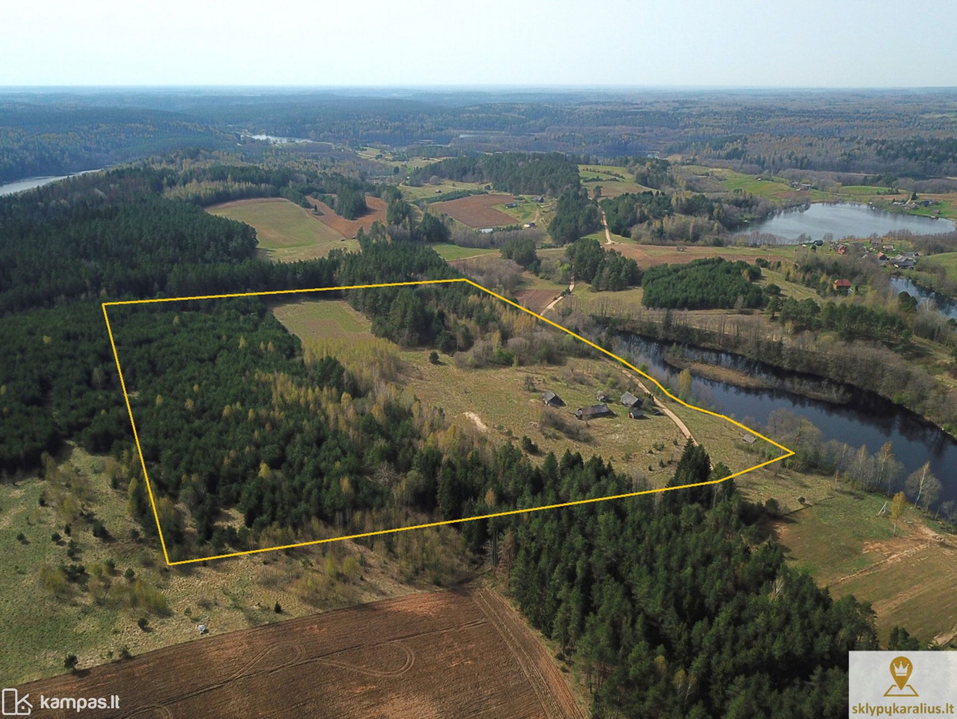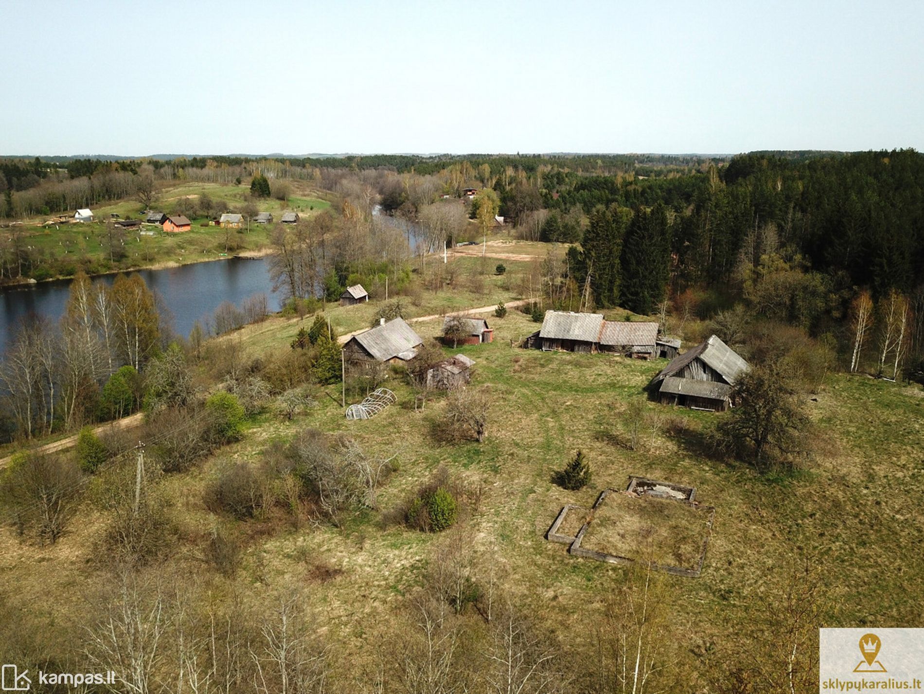 Sodybą sudaro du sklypai: 9, 97 ha sklypas su 6 registruotais statiniais ir 0,5 ha sklypas su pakrante ir pirtimi ant ežero kranto.