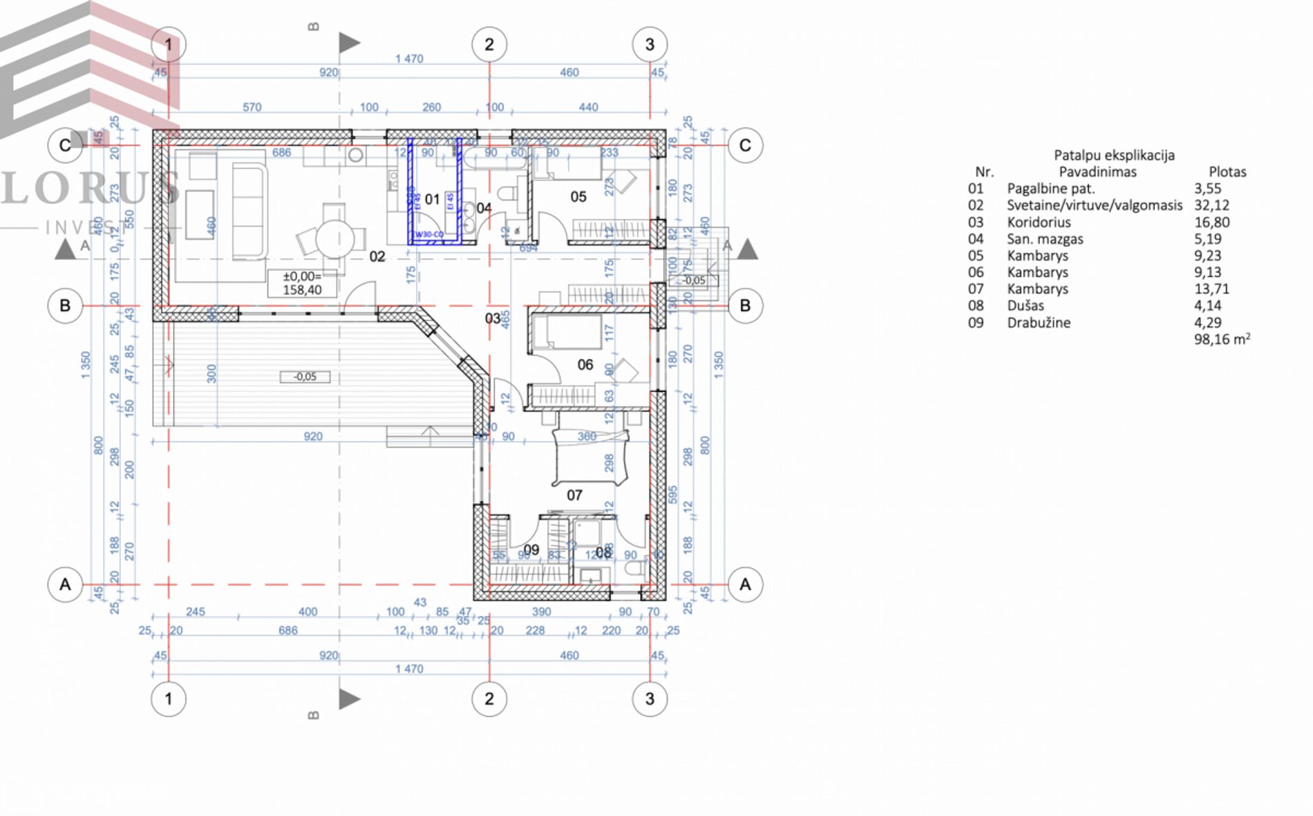 -- Šildymas: oras-vanduo šilumos siurblys, šildoma grindiniu šildymu;