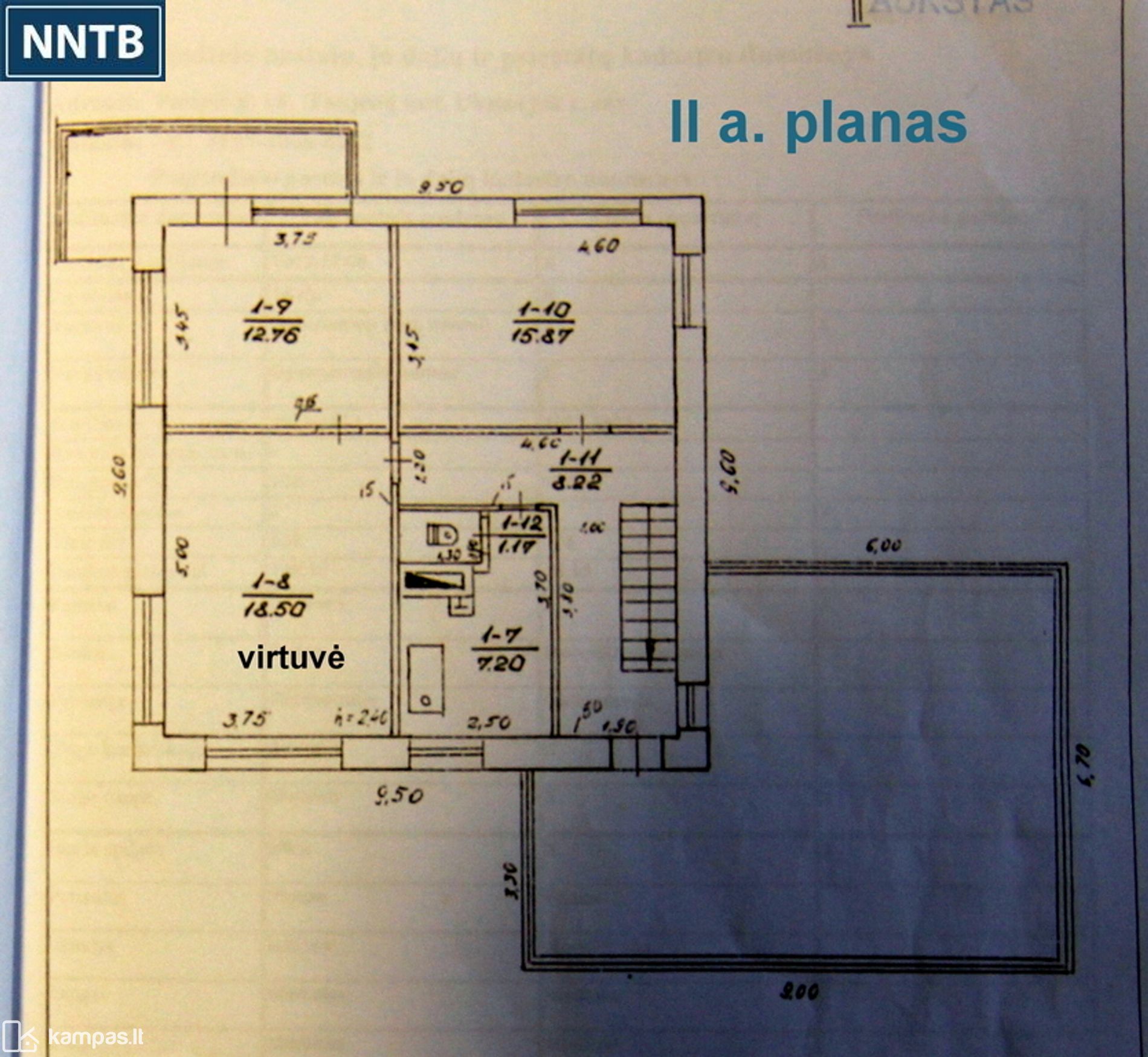 - Namas mūrinis, pastatytas 1971 m., bendras plotas sudaro 194,49 kv.m. Iš jų, rūsio plotas 37 kv.m.
