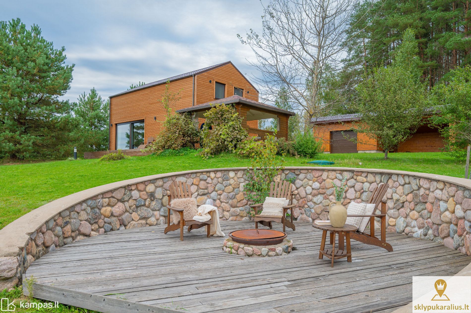 Atraskite romantišką ir ekologišką poilsį sau ir svečiams, name apsutame pušyno, iš kur atsiveria žavinga apylinkių panorama. Tai puiki vieta atsipalaiduoti ir mėgautis gamtos teikiamu ramumu, pasimėgaukite rytinėmis kavos puodelio akimirkomis su vaizdu į ežerą. Tokie rytai gali tapti ir kasdieniška pramoga, nes namas pritaikytas ir nuolatiniam gyvenimui! Įsivaizduoji?