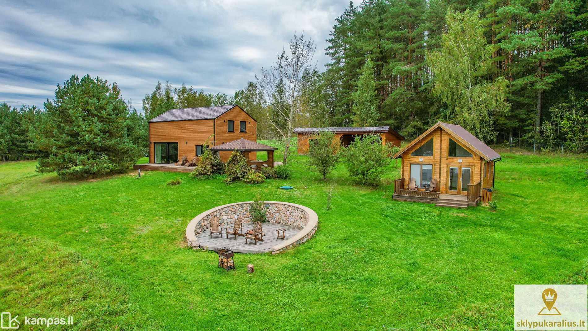 - Kiti pastatai: svečių namelis (34 kv.m.) su terasa, svečių namelis (22 kv.m.) su terasa+priestatas, svečių namelis (~ 16 kv.m.) su terasa;