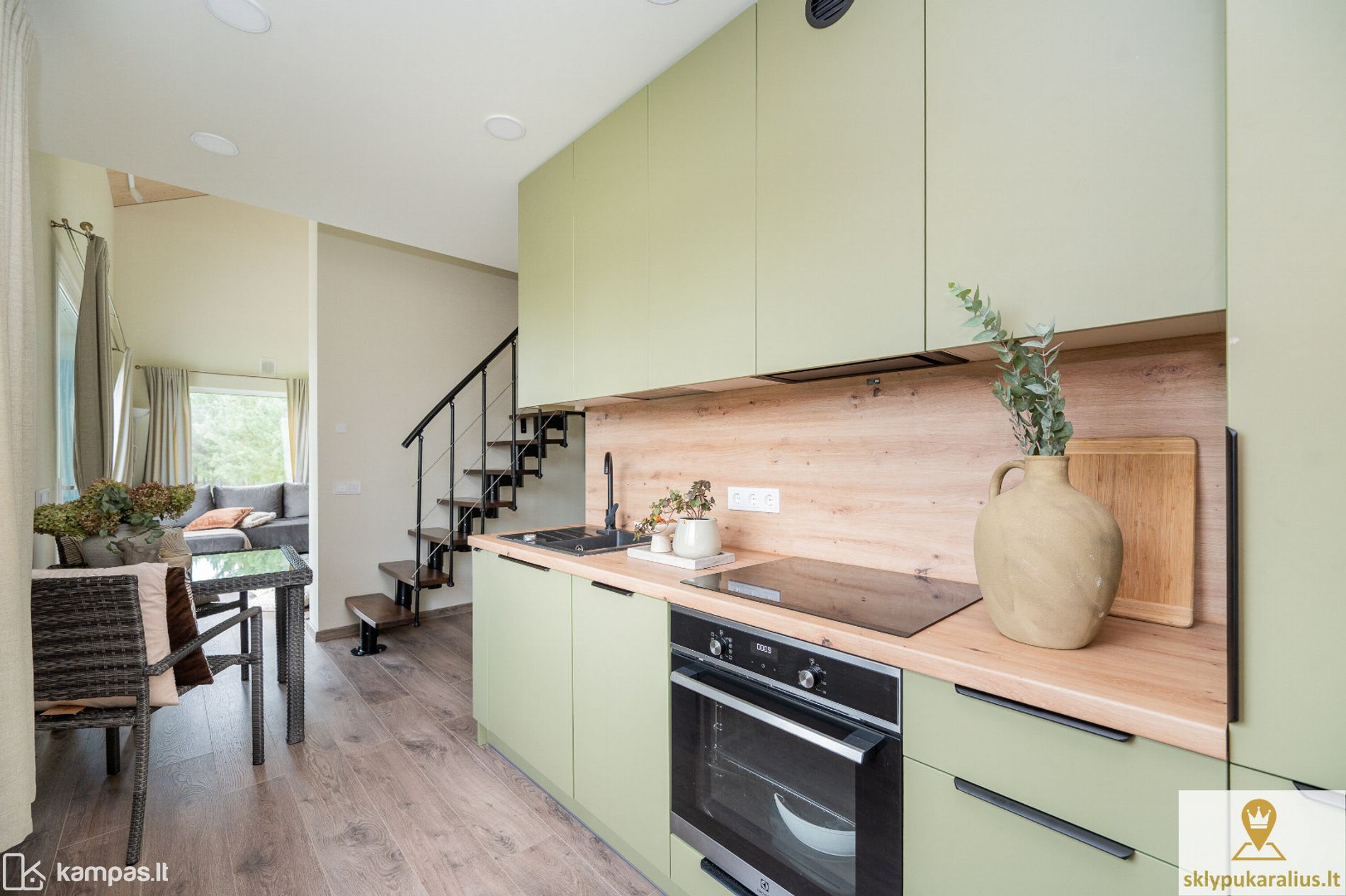 • Pilnavertė virtuvė, kurioje yra kaitlentė, indaplovė, orkaitė, didelis šaldytuvas, šaldiklis