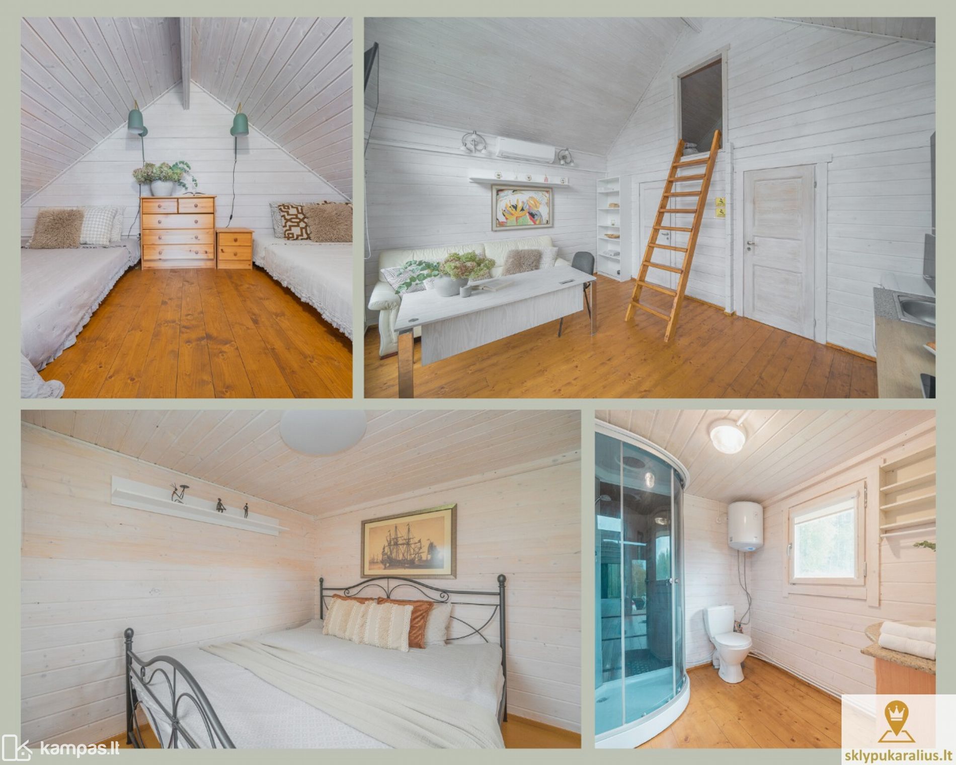 • Svečių namelis 30 m nuo ežero (22 kv.m.) su terasa į ežerą, WC dušu, atskiru miegamuoju, bei priestatu, kuris yra papildomas miegamasis