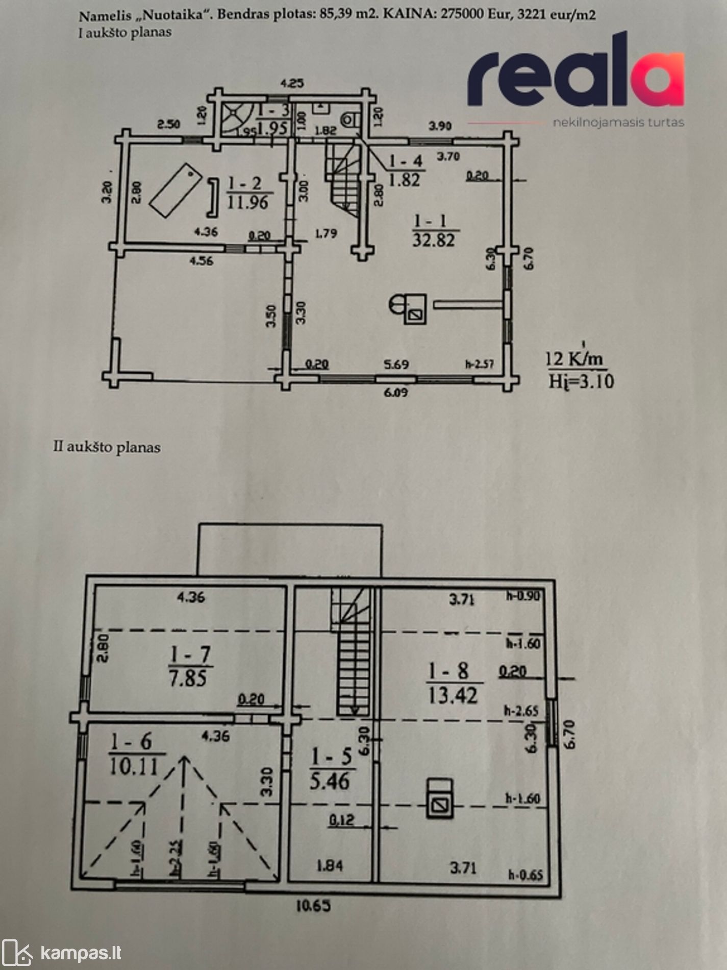Bendras plotas: 85,39 m2. KAINA: 265000 Eur, 3103 eur/m2