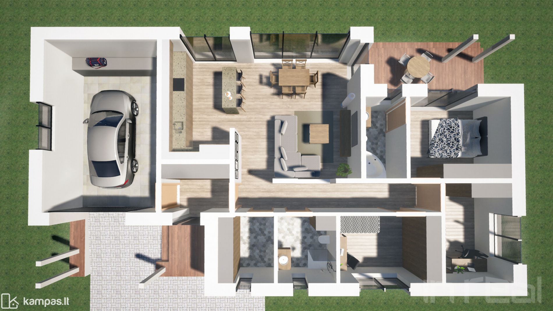 Papildomai bus 6,86 kv.m. dengta įėjimo aikštelė ir 15,47 kv.m. dengta terasa